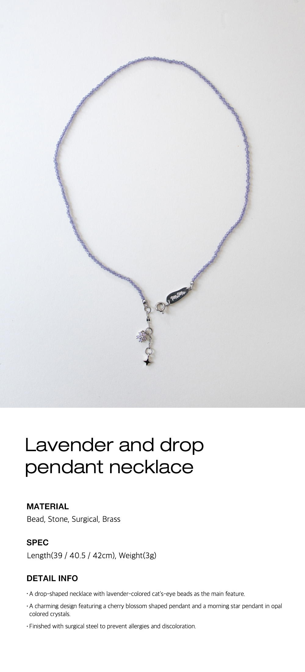 Lavender and drop pendant necklace