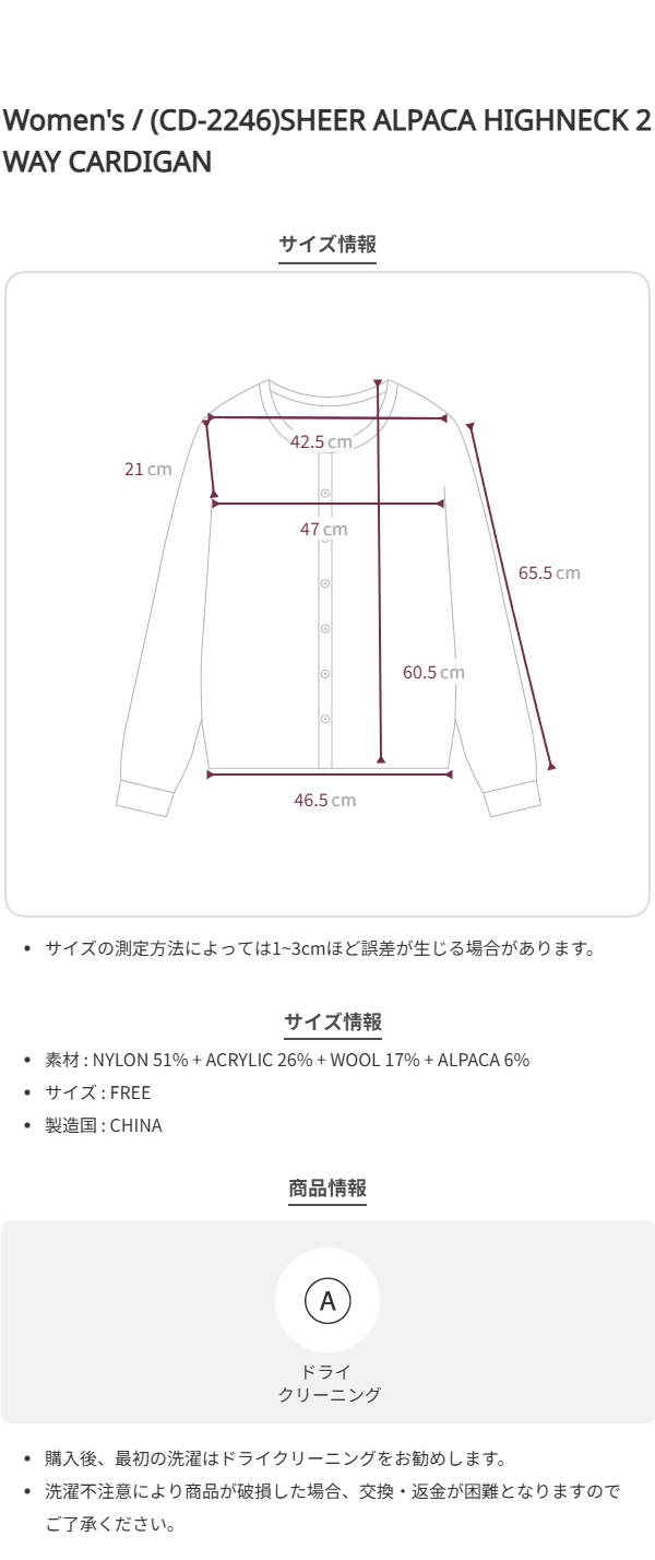 (CD-2246)SHEER ALPACA HIGHNECK 2WAY CARDIGAN