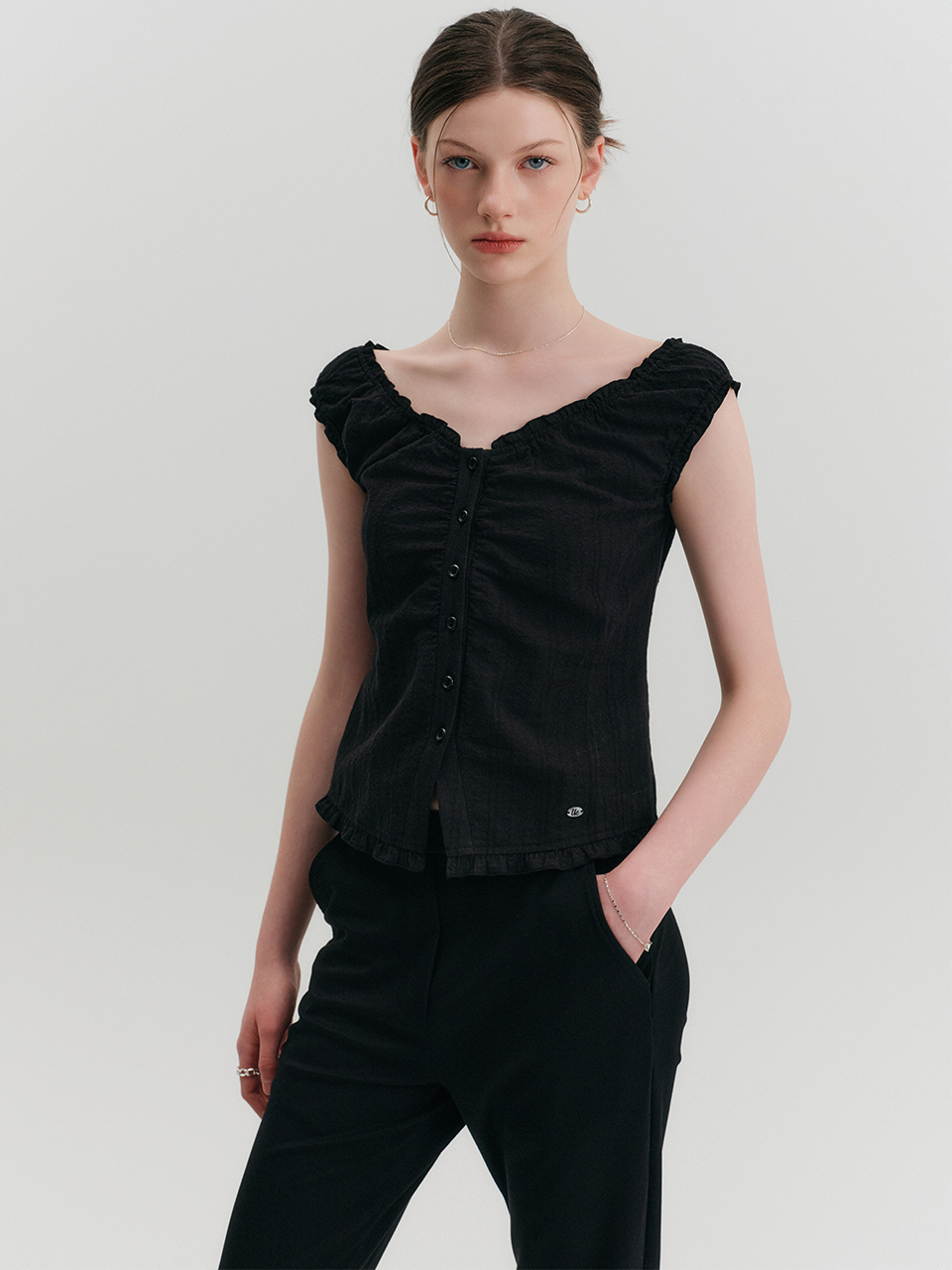 JENIE V-NECK SLEEVELESS BLOUSE_BLACK