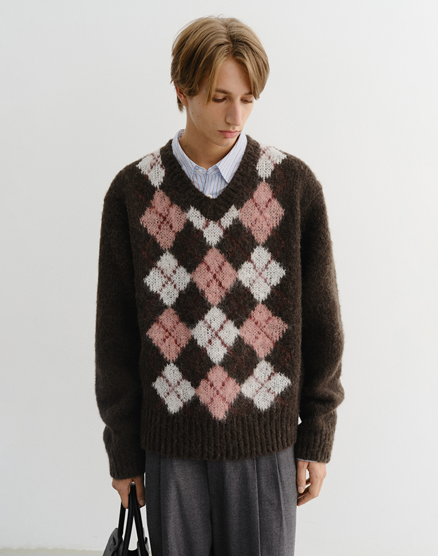 UNISEX BABY ALPACA ARGYLE SWEATER BROWN_M_UDSW5D123W2