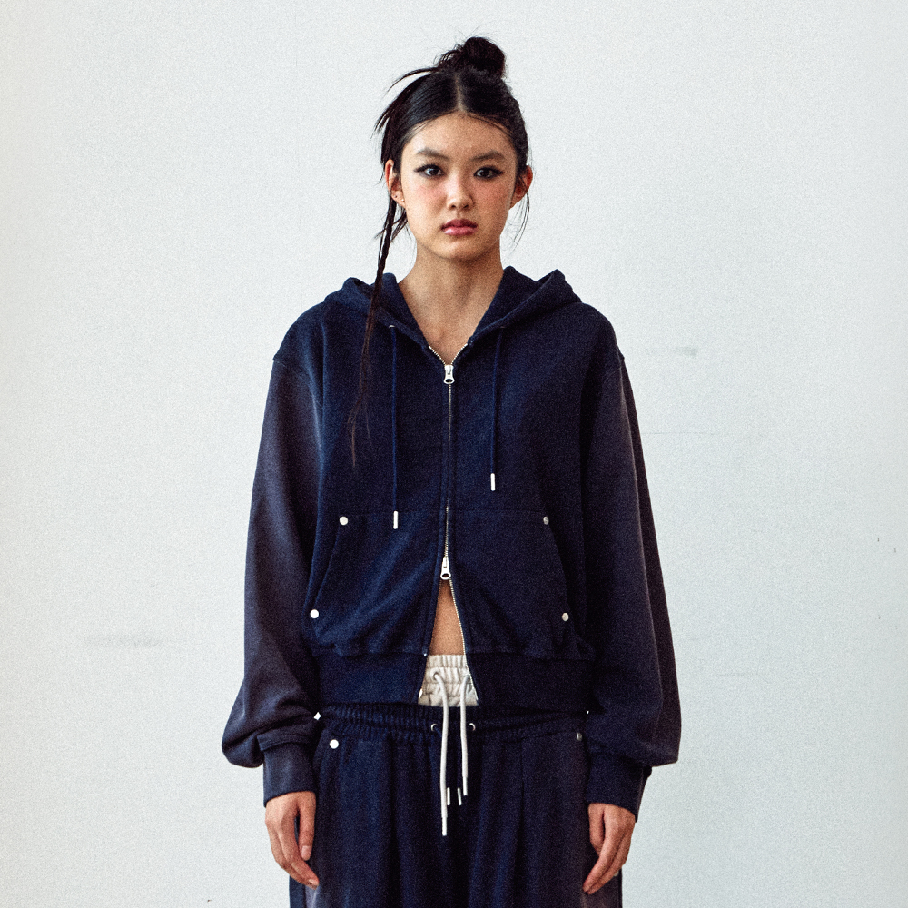 DYED CROP HOODIE ZIP-UP(W) NAVY