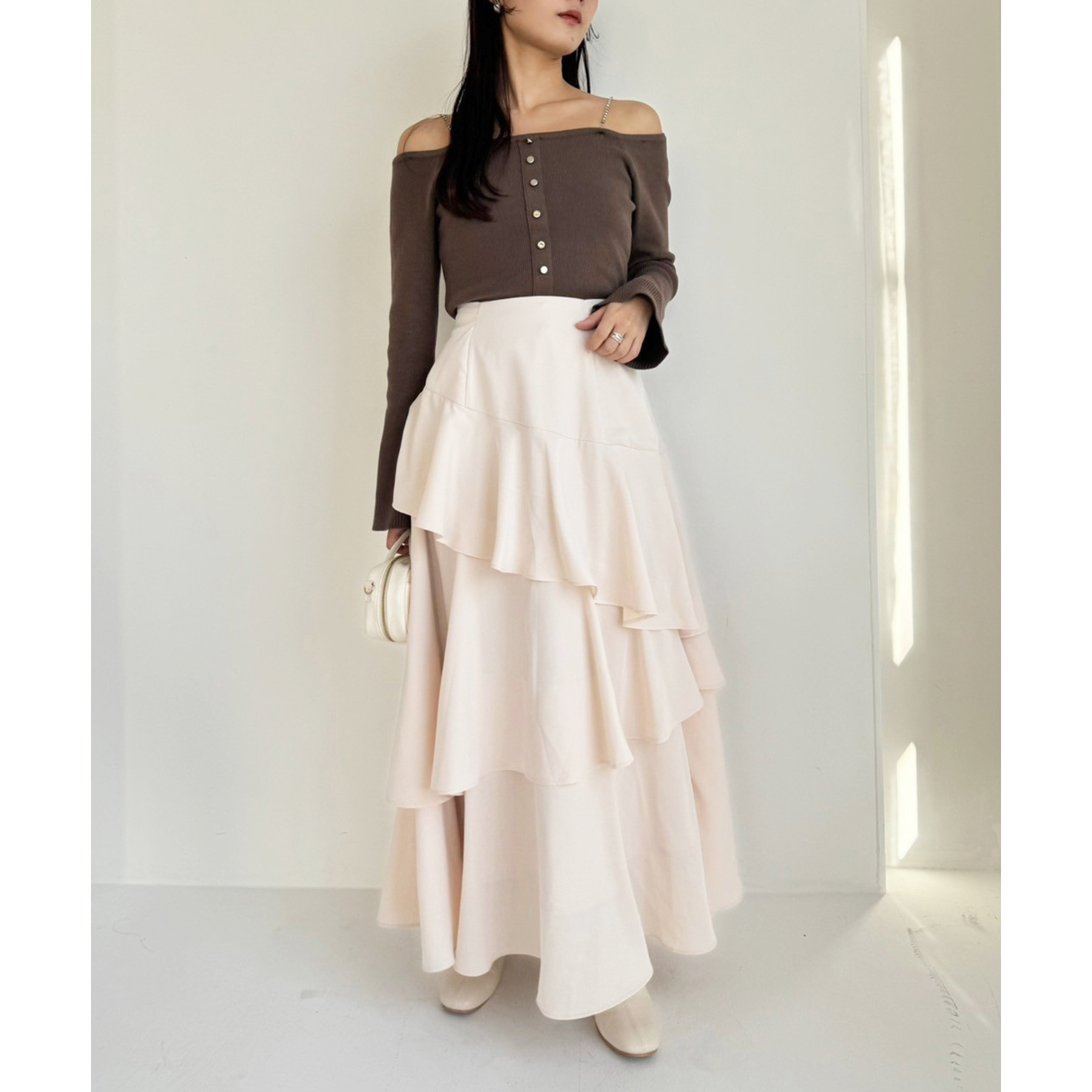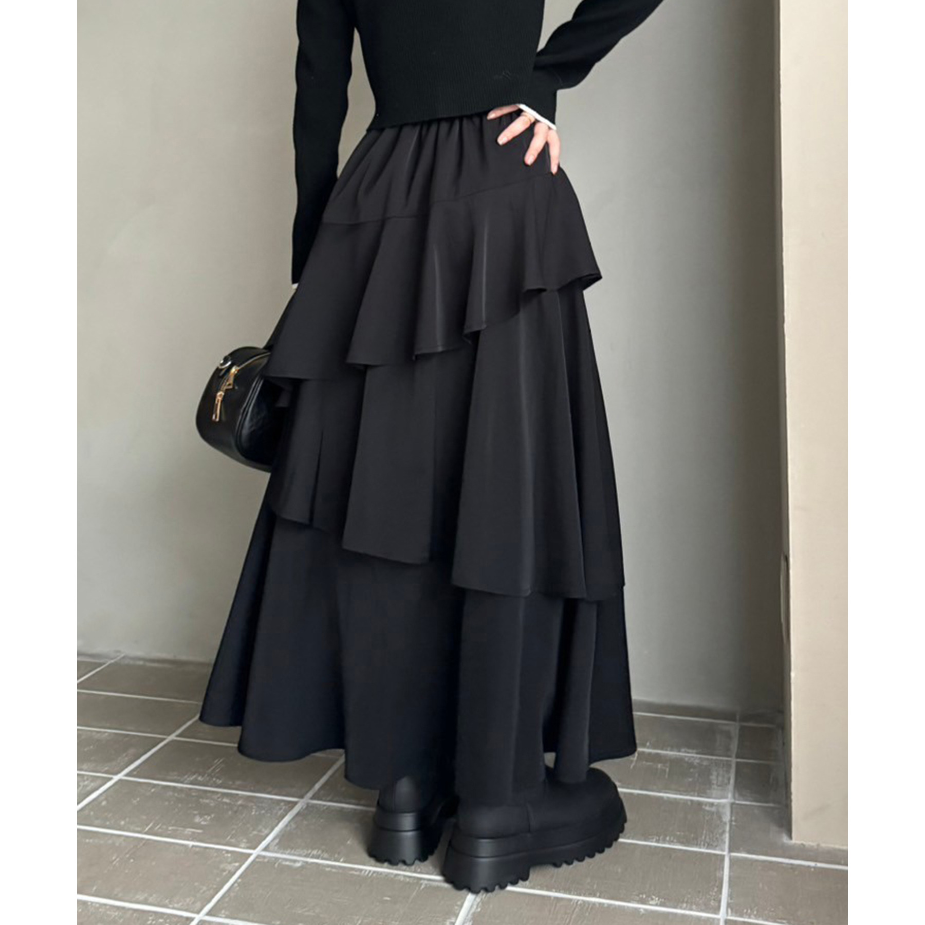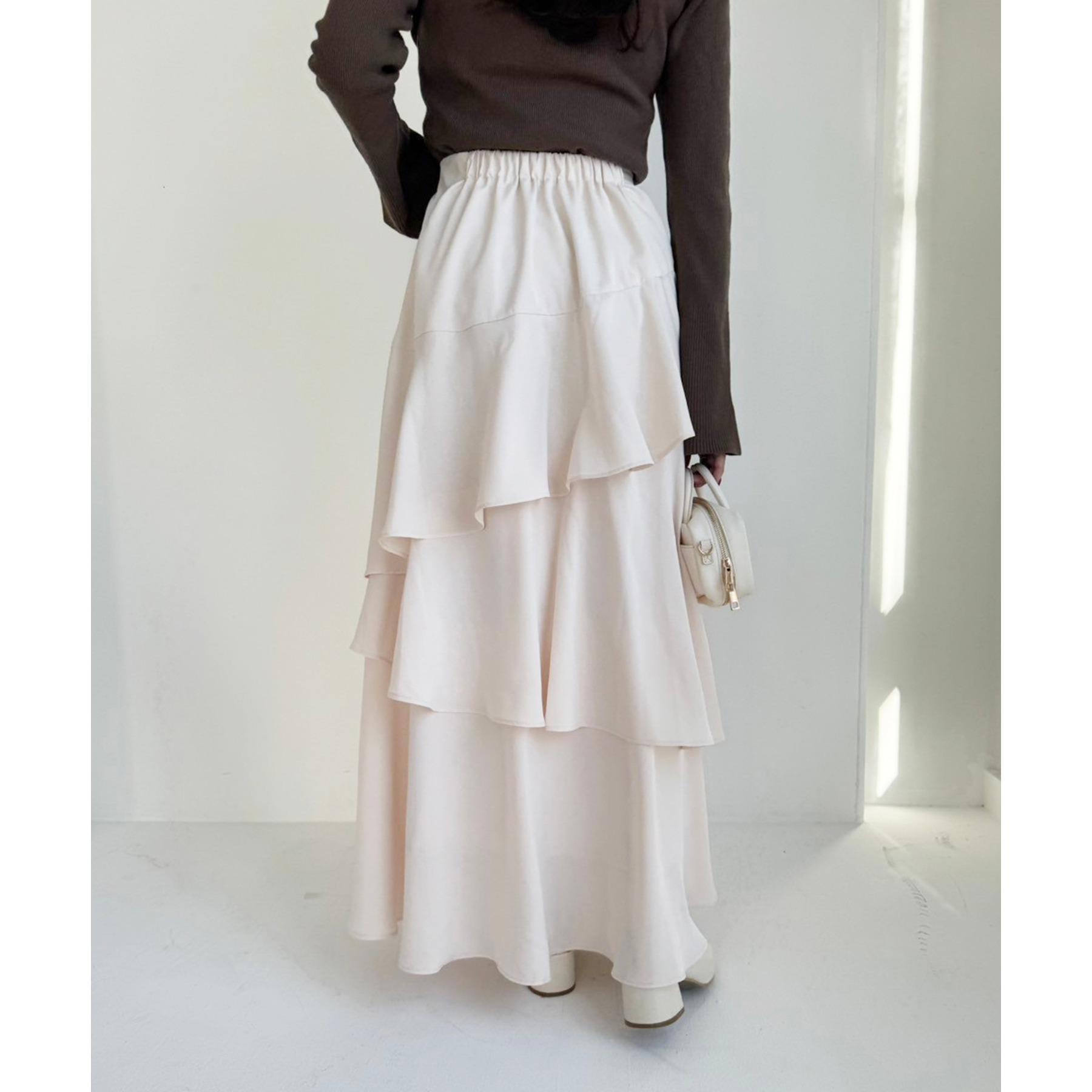 ティアードが目を惹くデザインなので、シンプルめのトップスでも