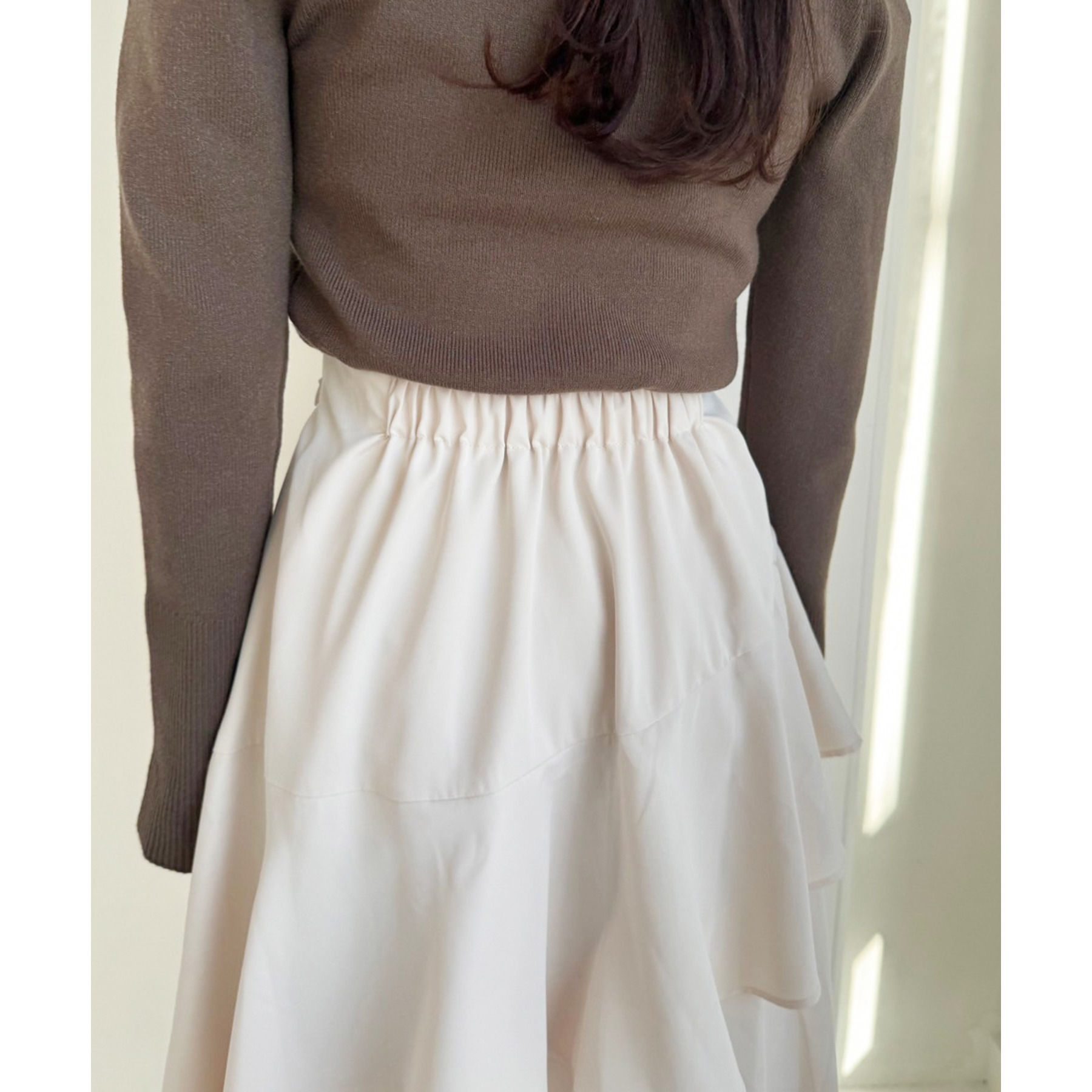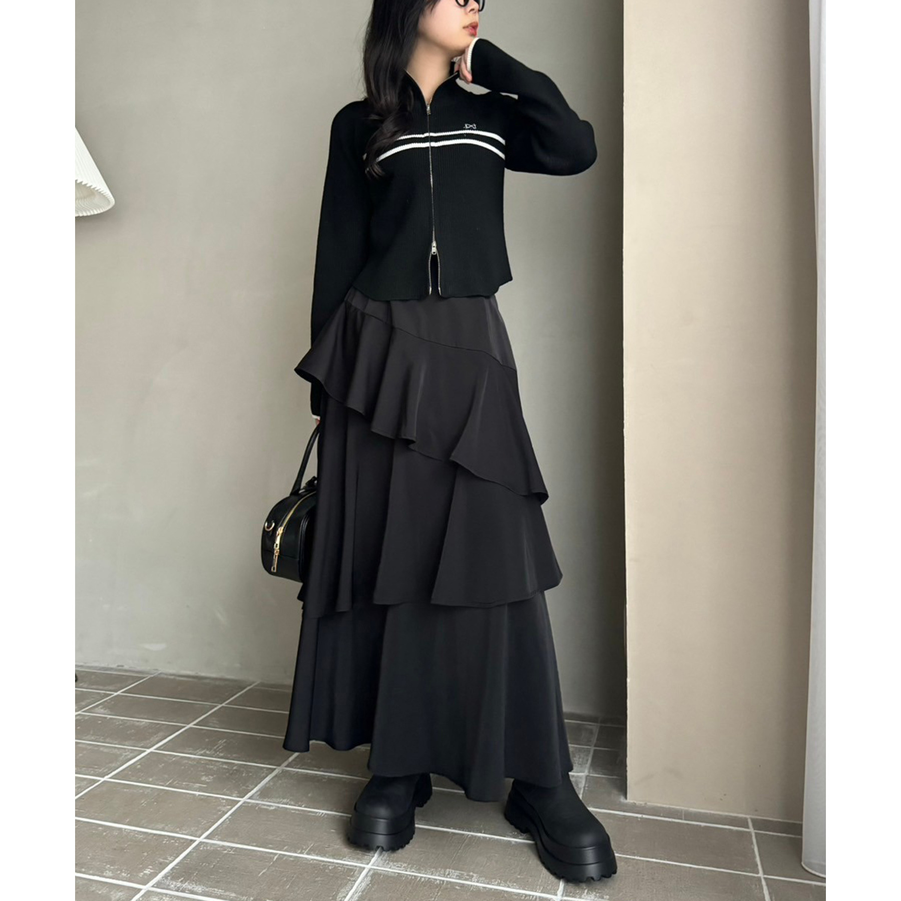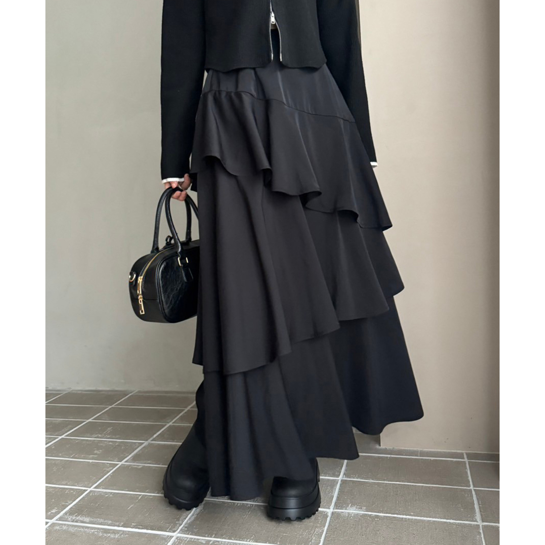 ティアードが目を惹くデザインなので、シンプルめのトップスでも