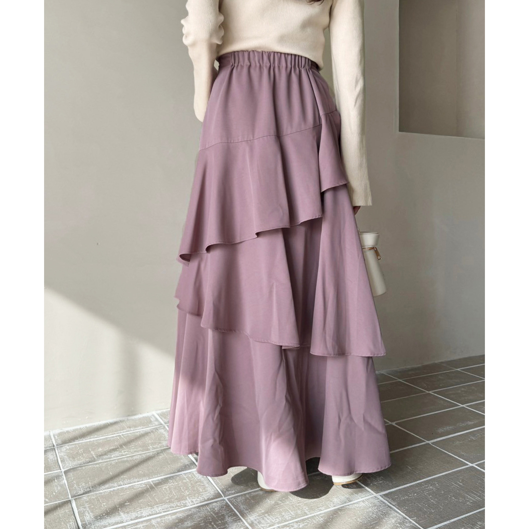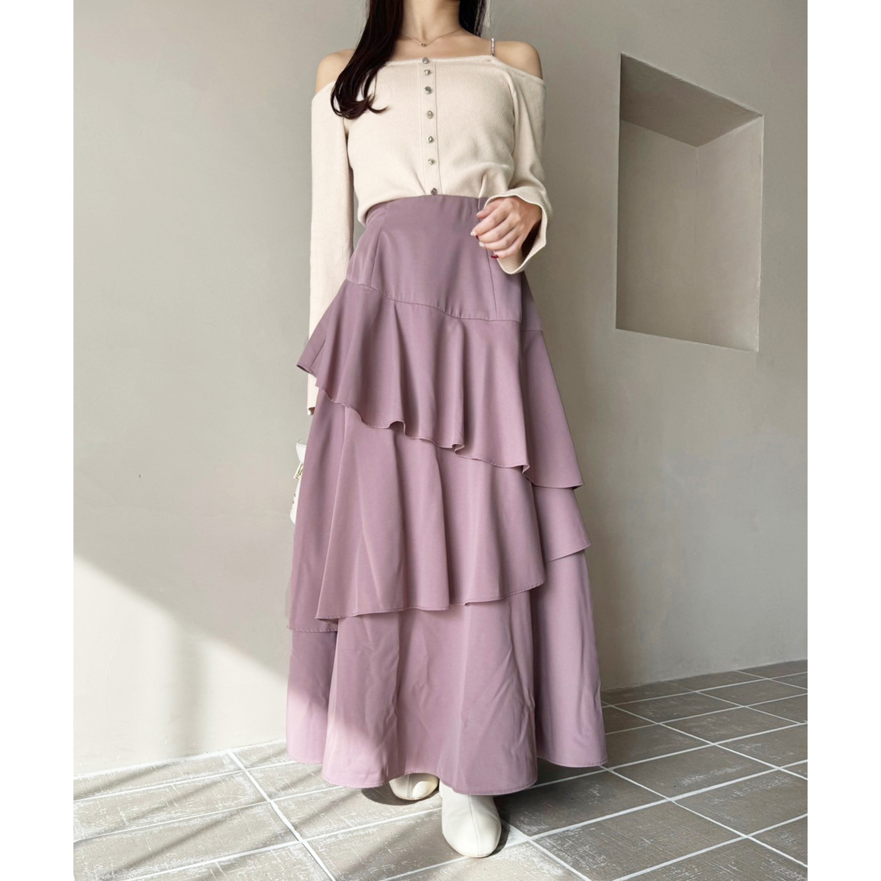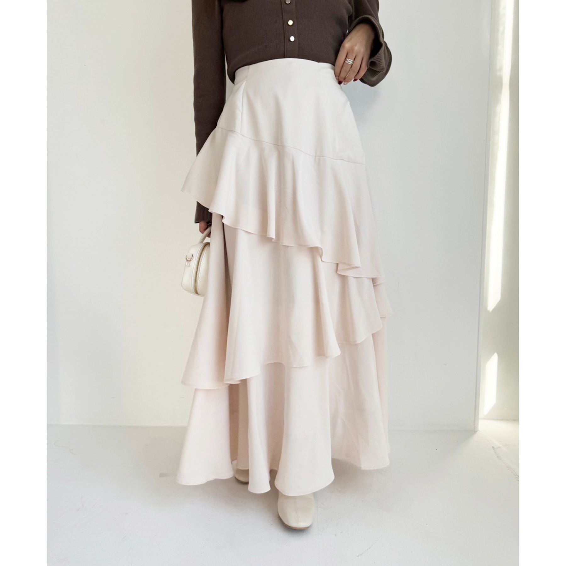動きに合わせて揺れる、たっぷりと重ねたフリルが女性らしいティアードスカート