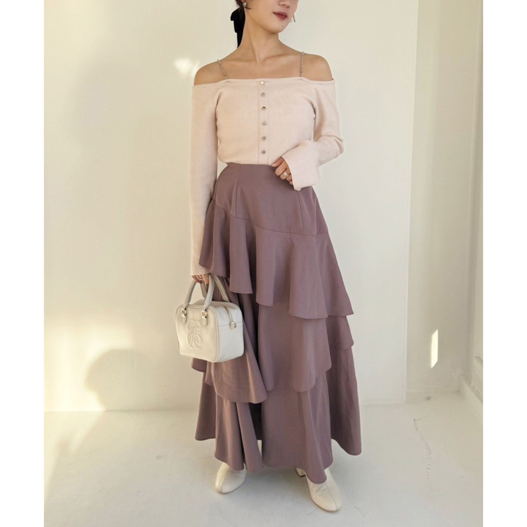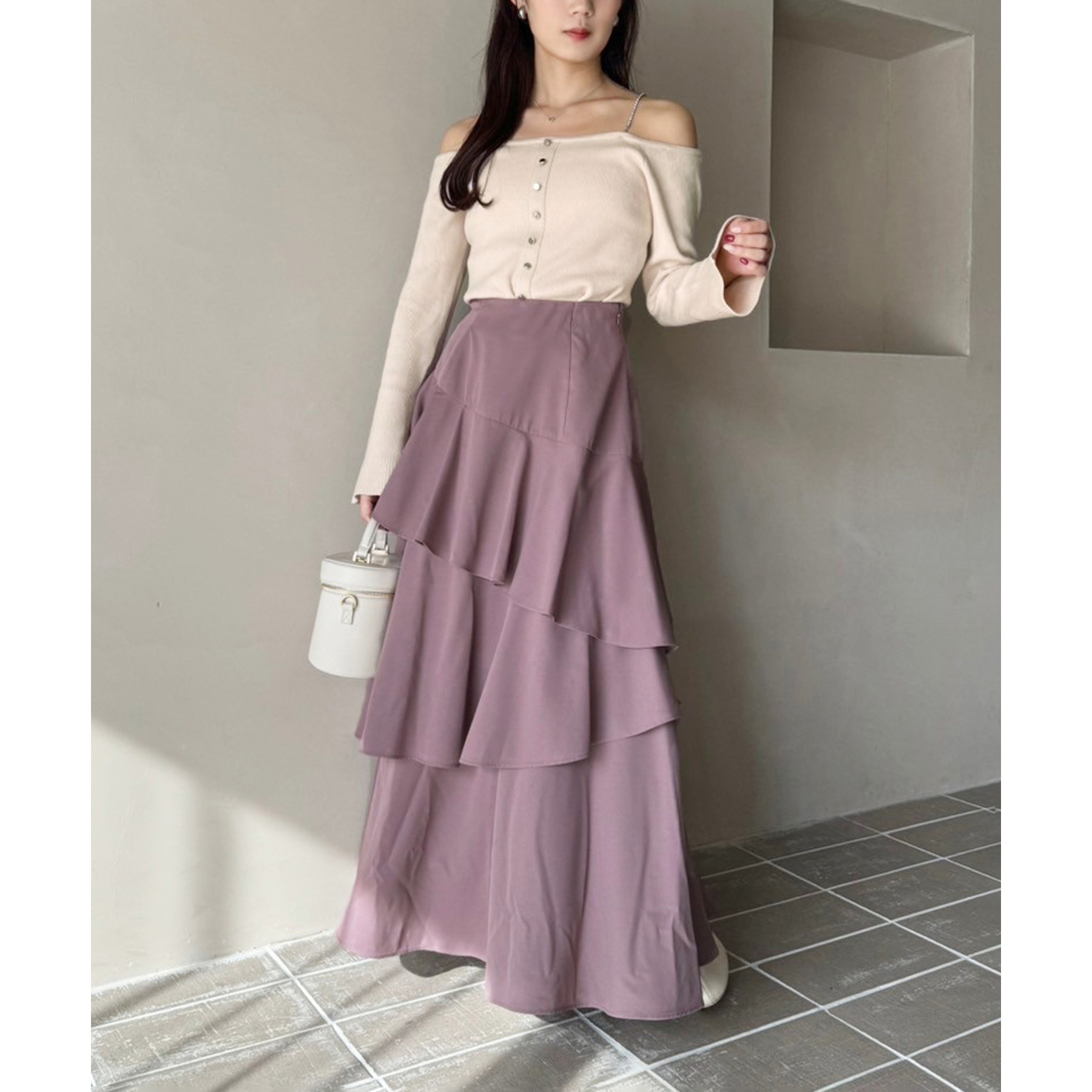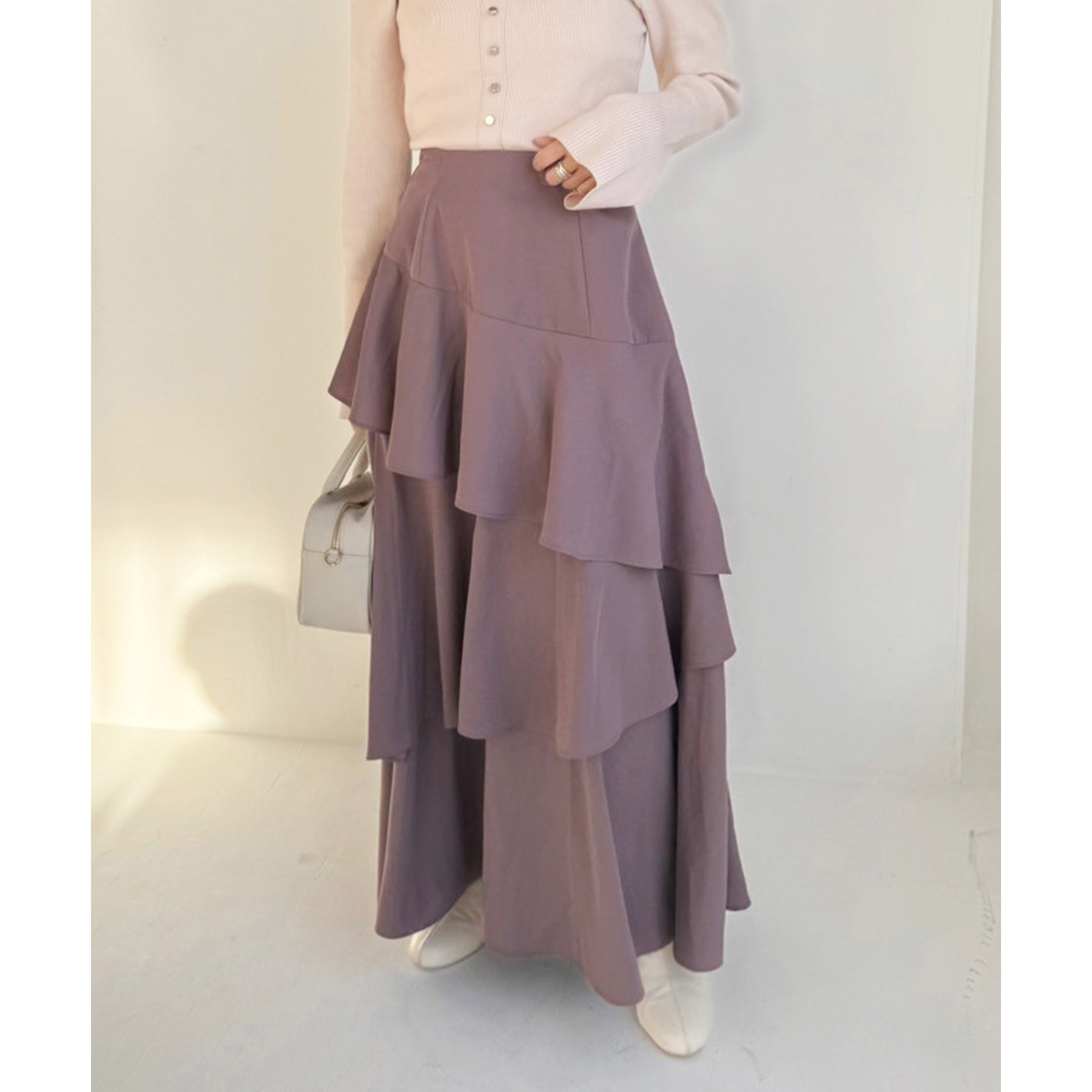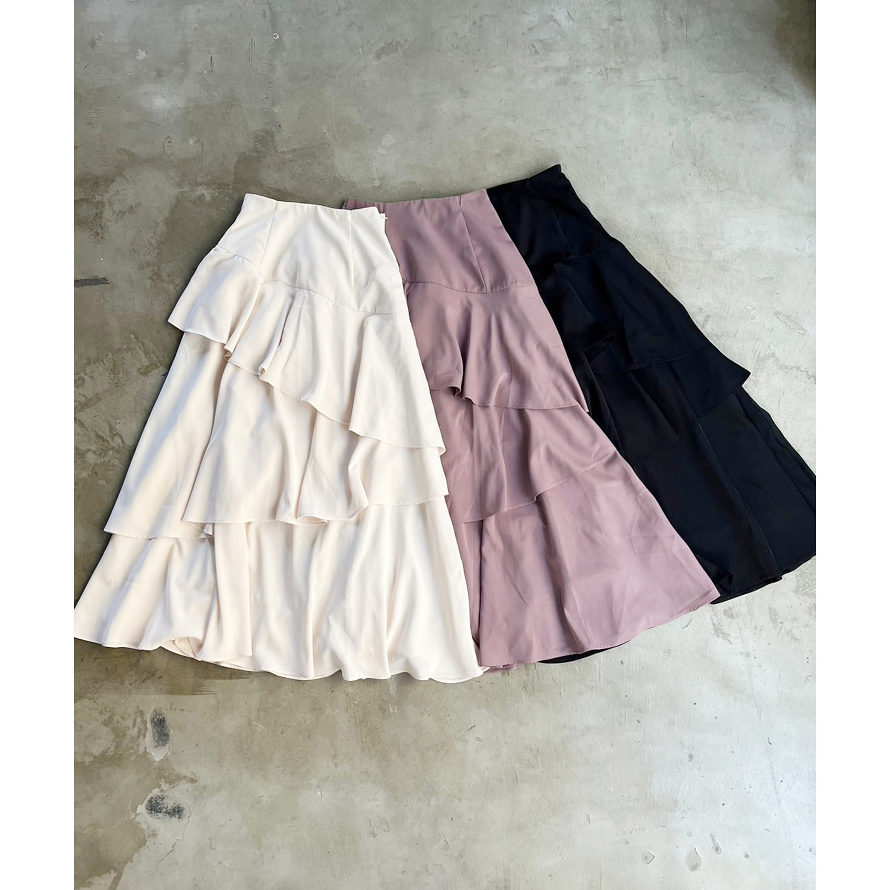 動きに合わせて揺れる、たっぷりと重ねたフリルが女性らしいティアードスカート