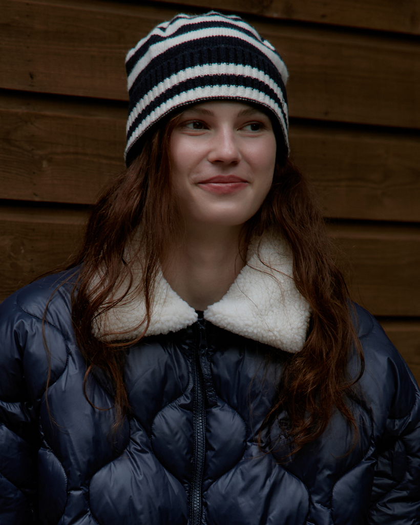 Stripe Wool Beanie_Navy