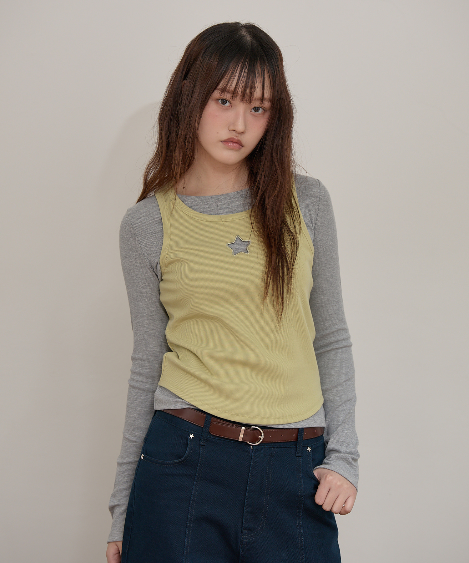 Star Cut Out Top SET Layered T-shirt GREY