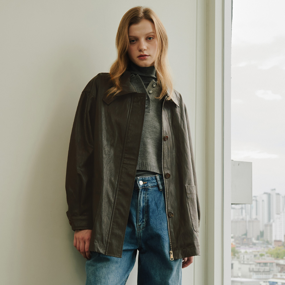 Synthetic Leather Half Jacket [Brown]