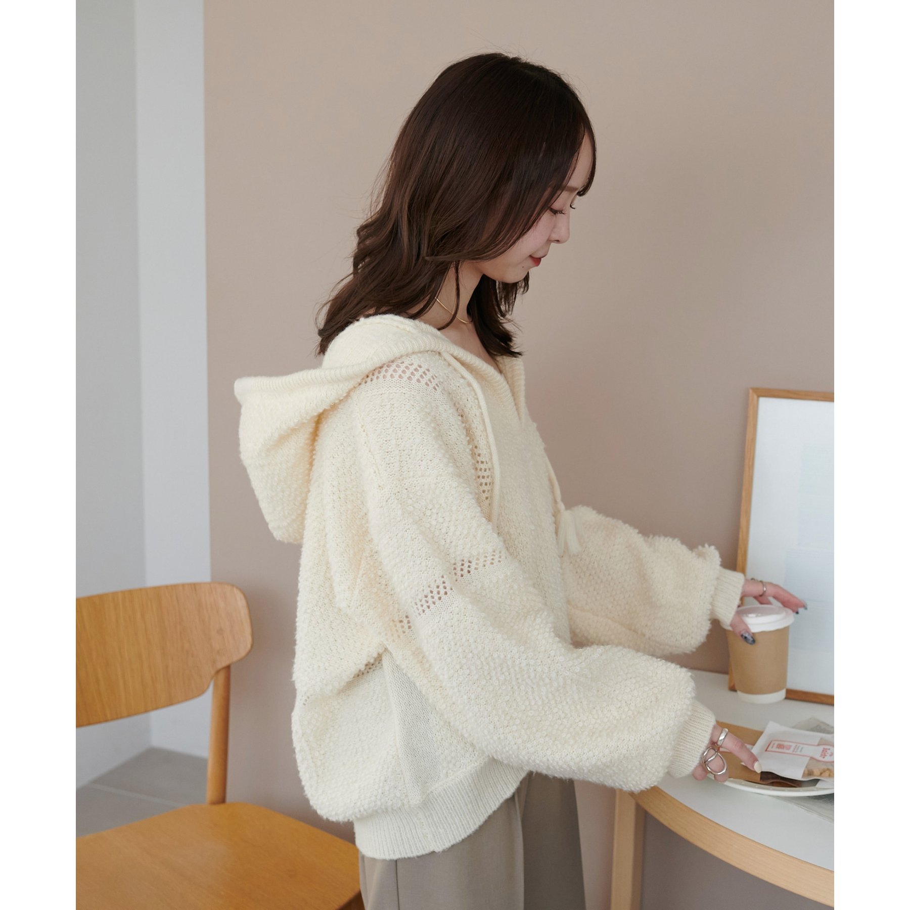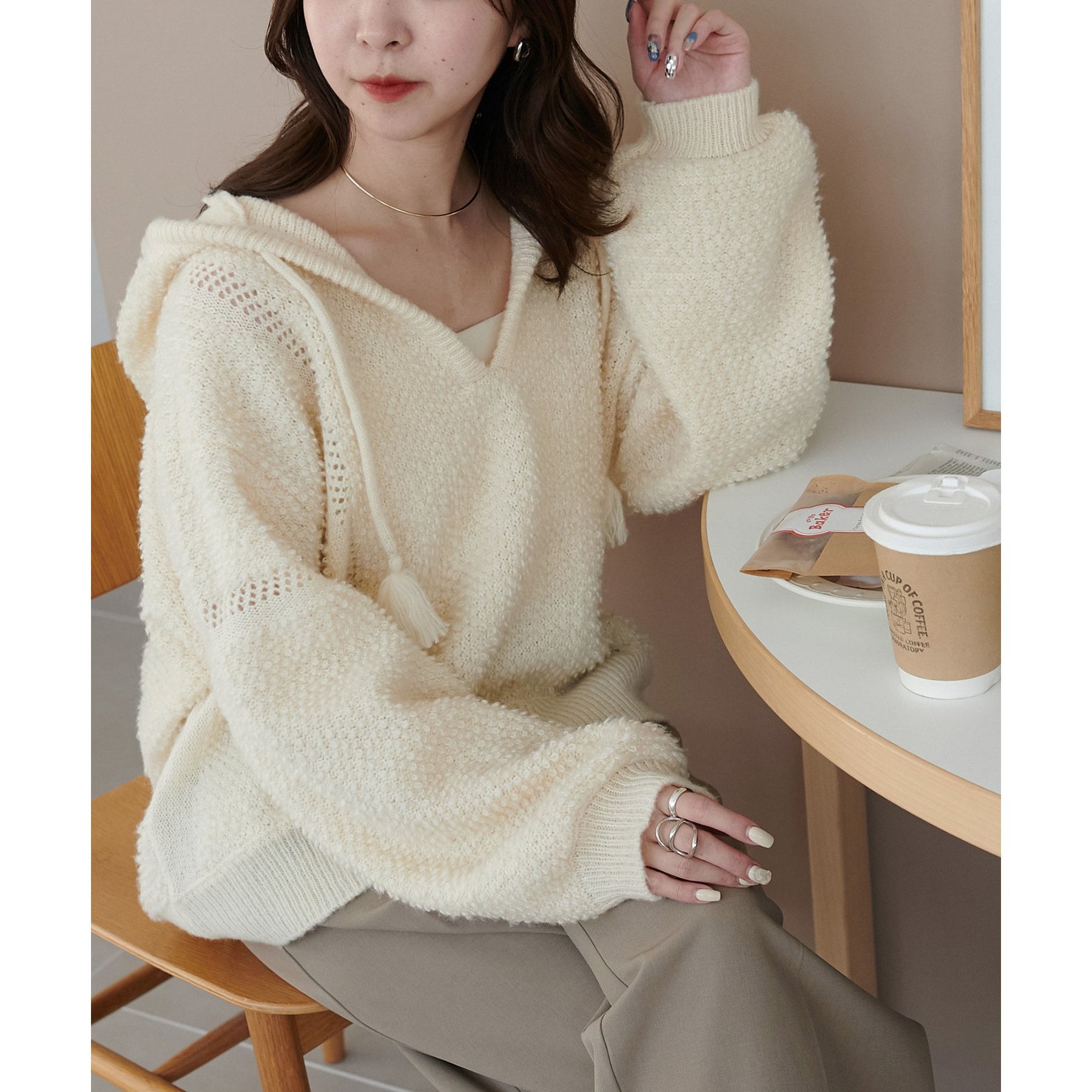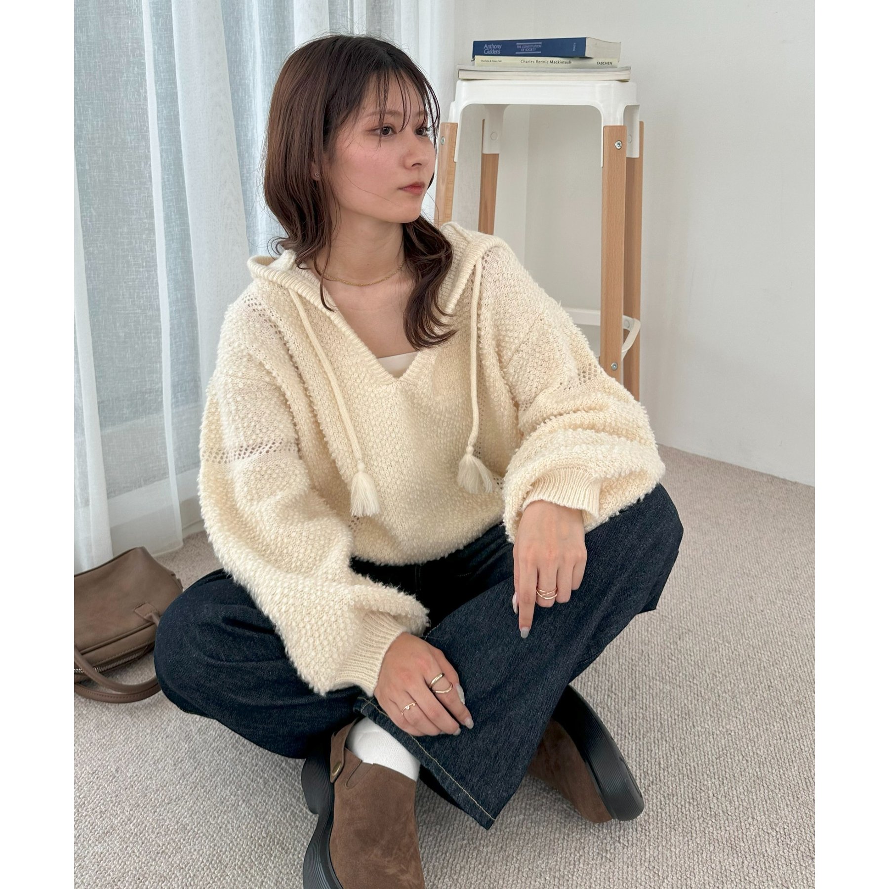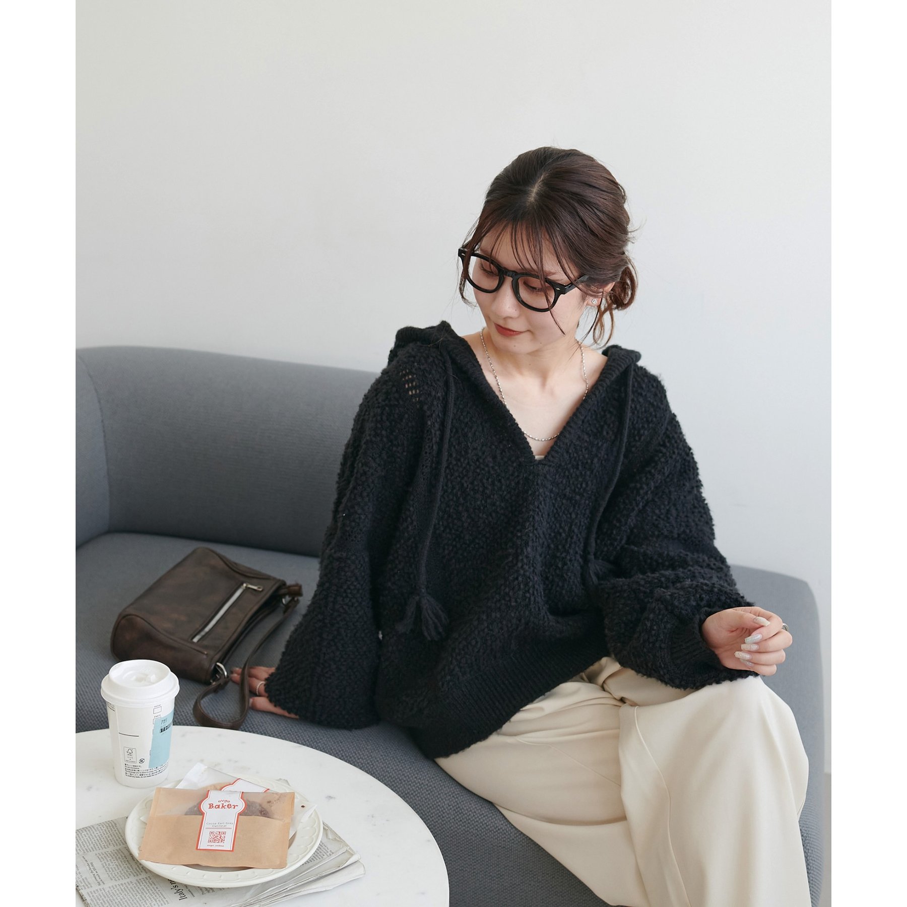 ふんわり柔らか、ぬくもり感じるループヤーンフードプルオーバー