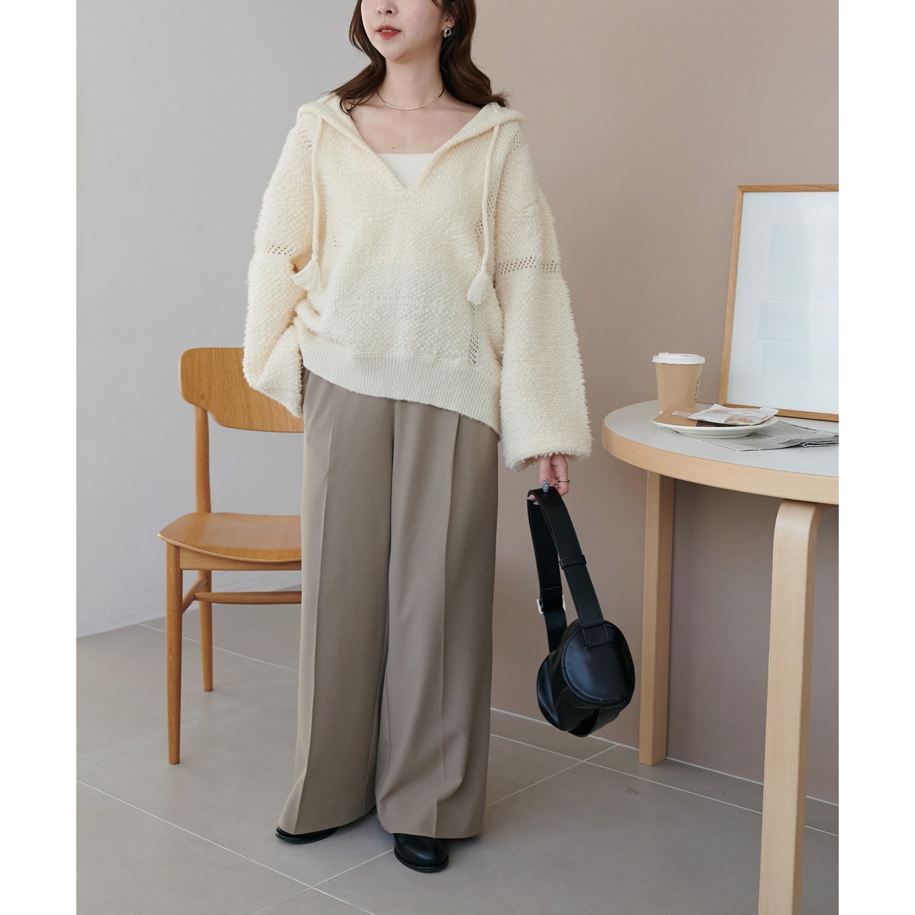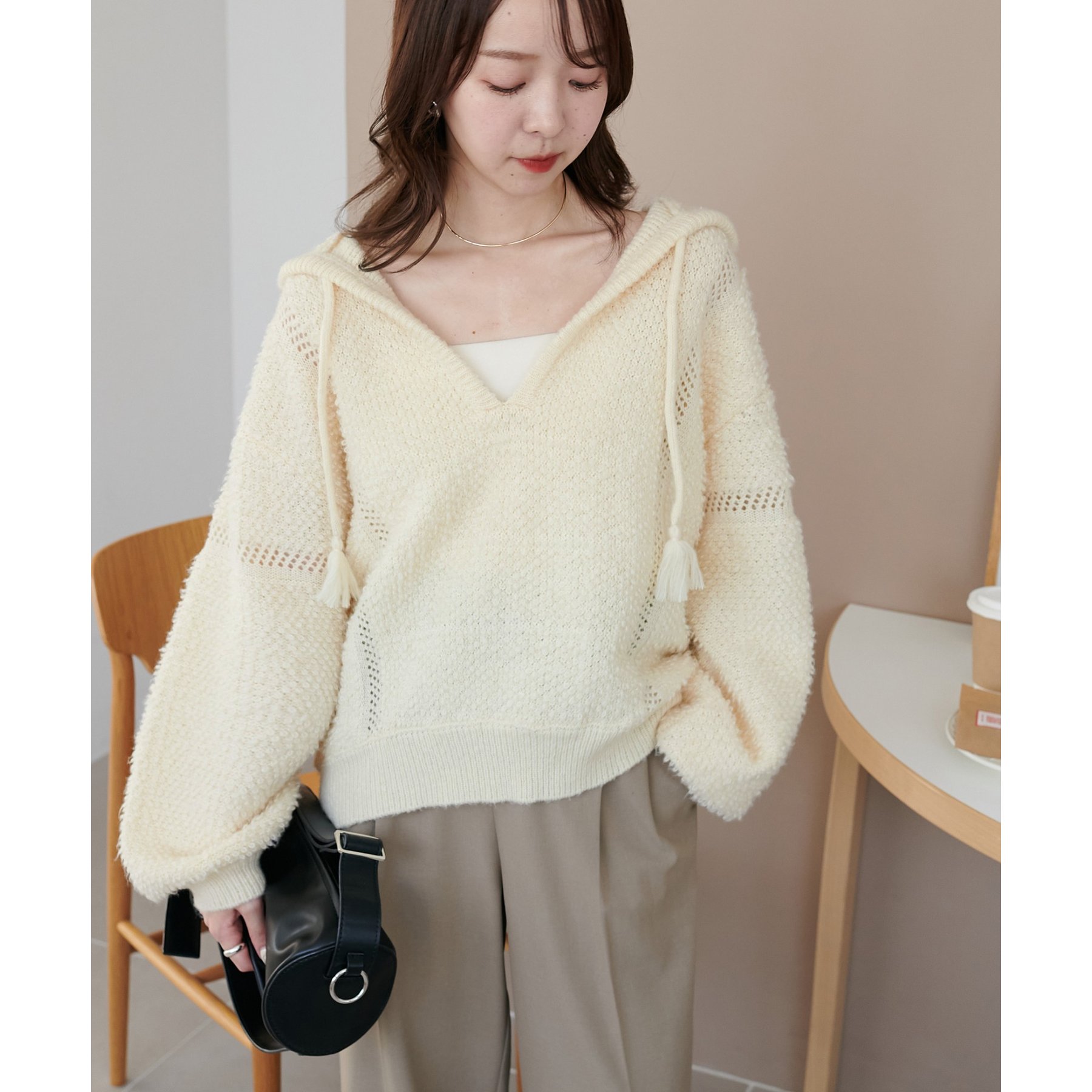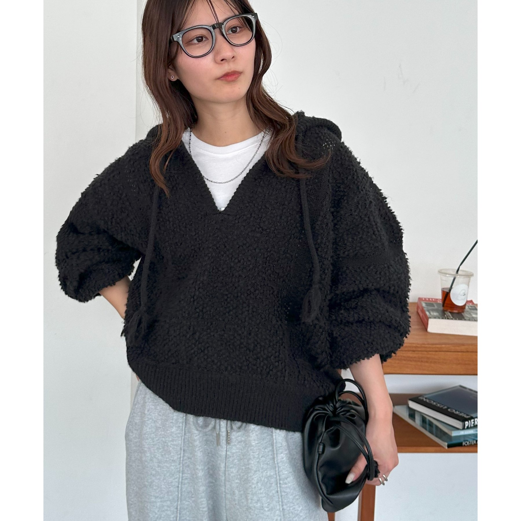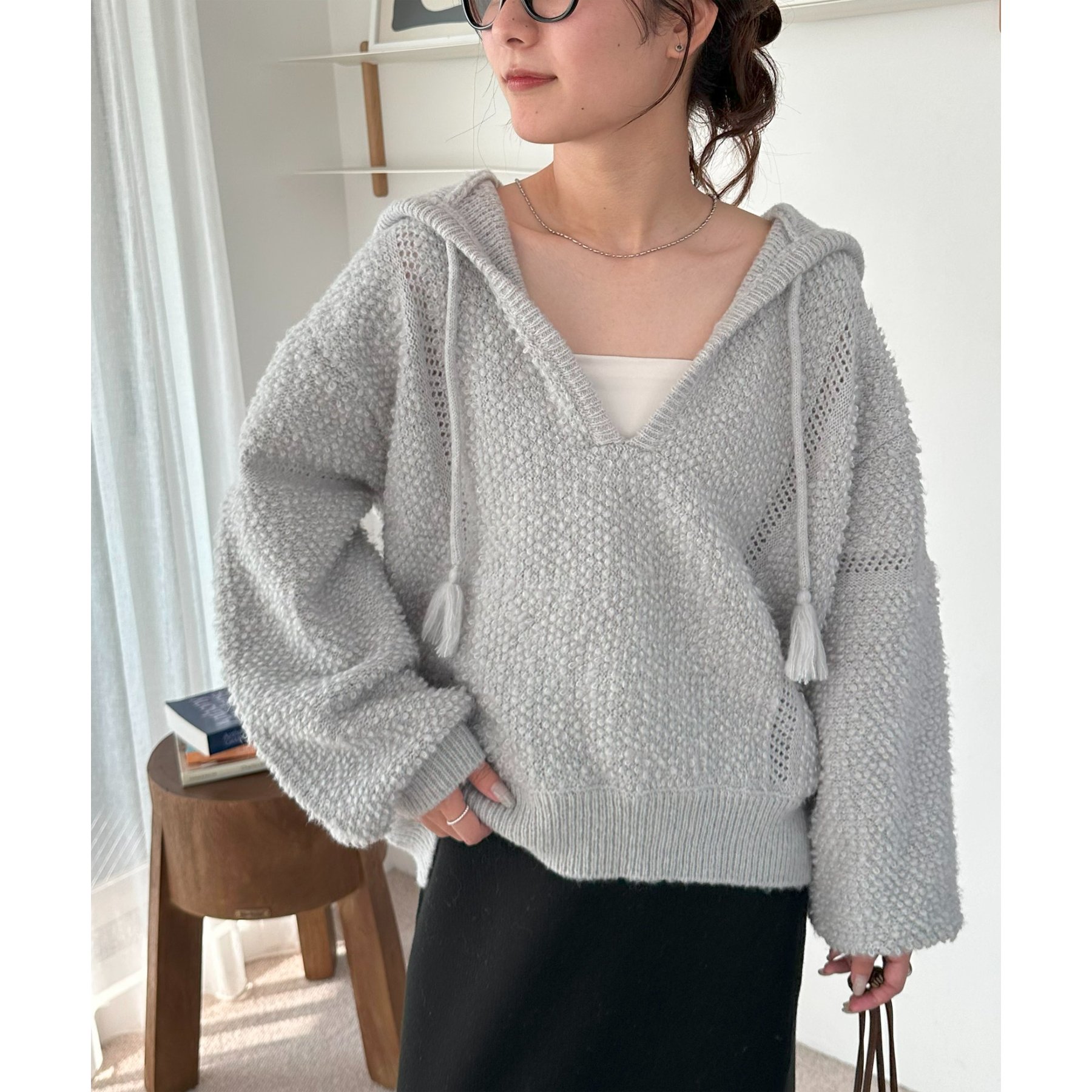 ふんわり柔らか、ぬくもり感じるループヤーンフードプルオーバー