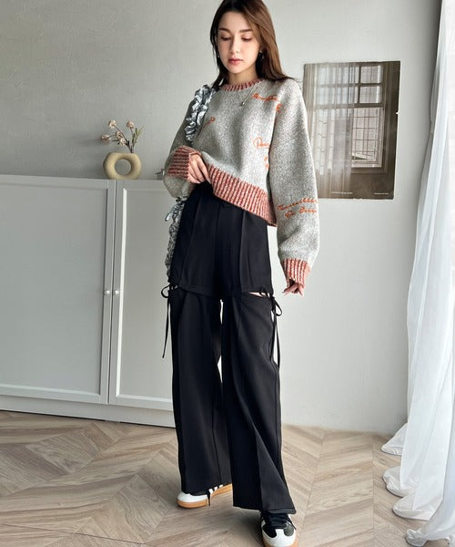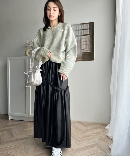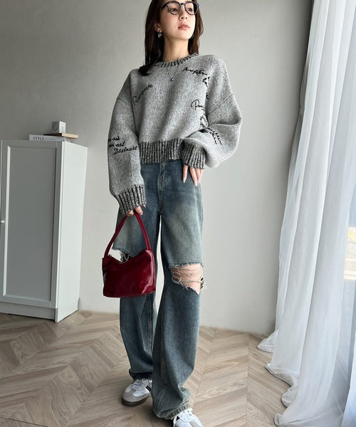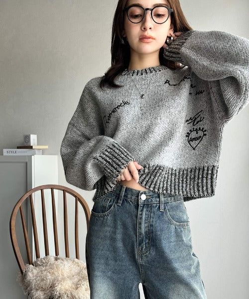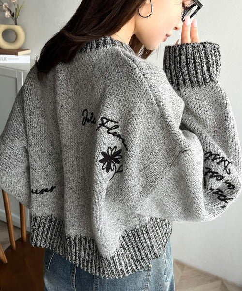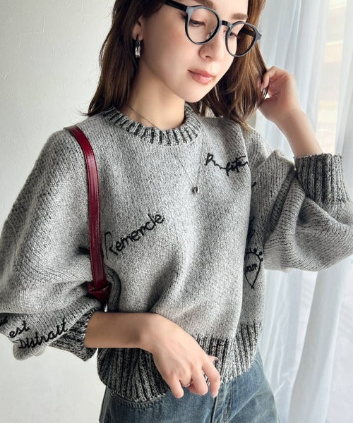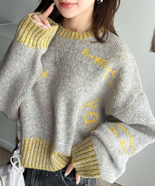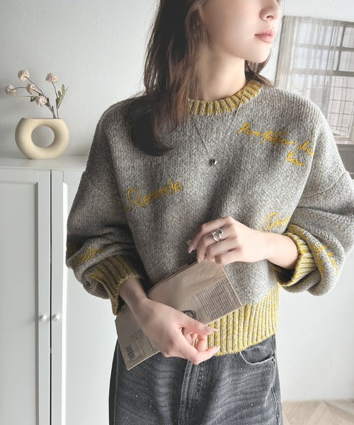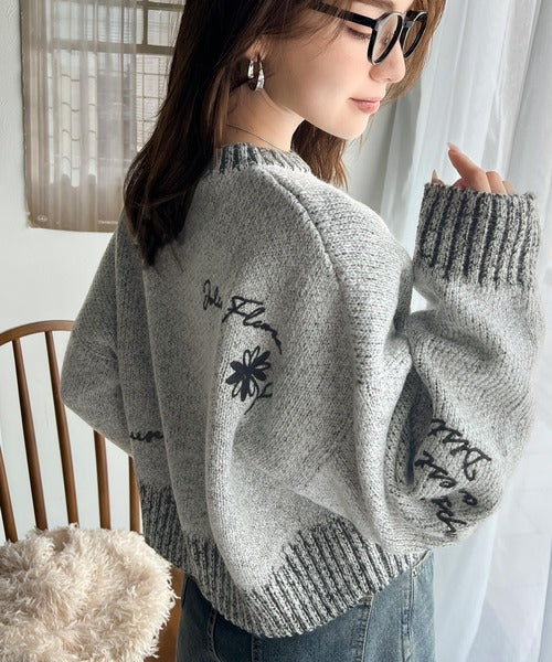 【mily bilet】大人の個性派ニット。ランダム刺繍クロップドニットプルオーバー mi1029088