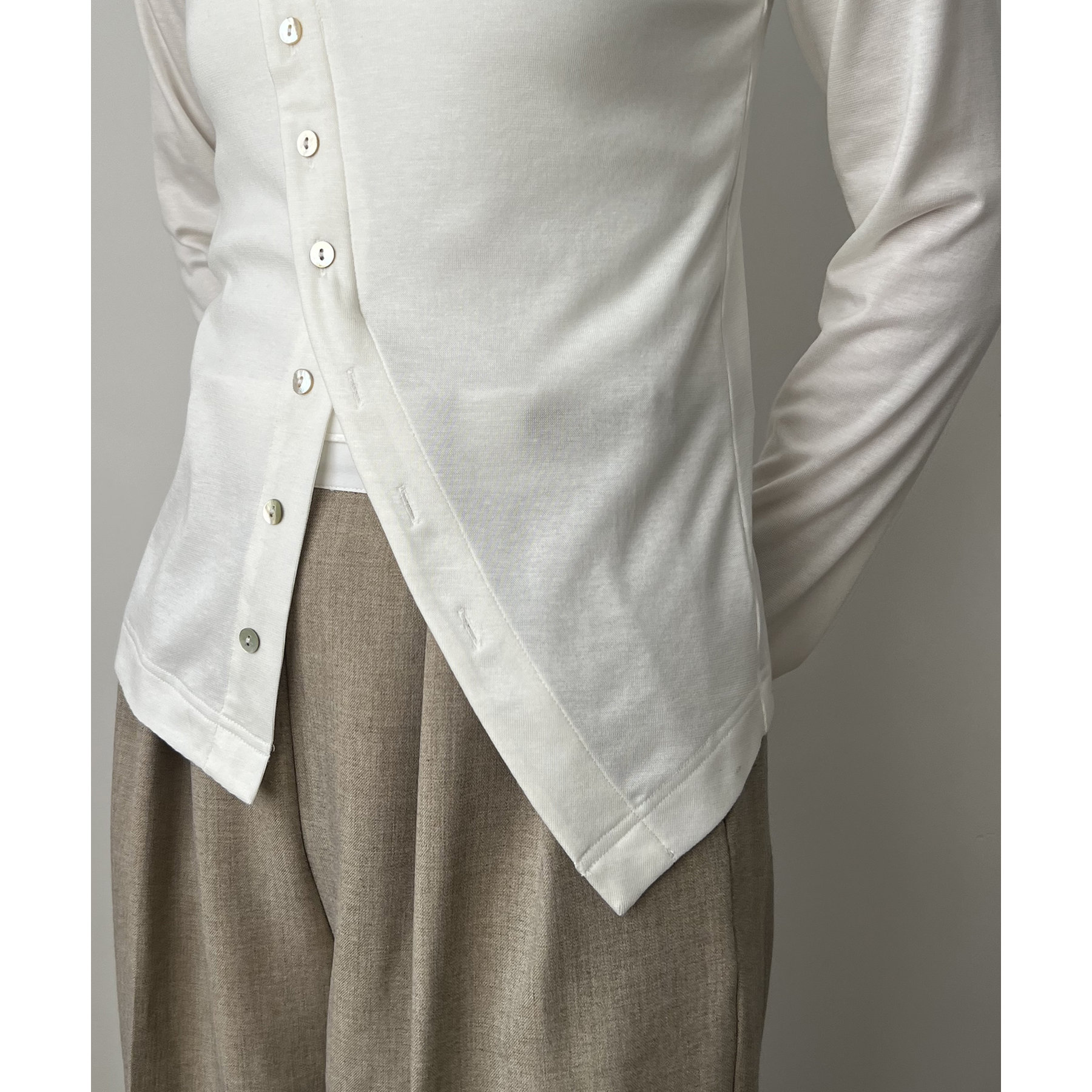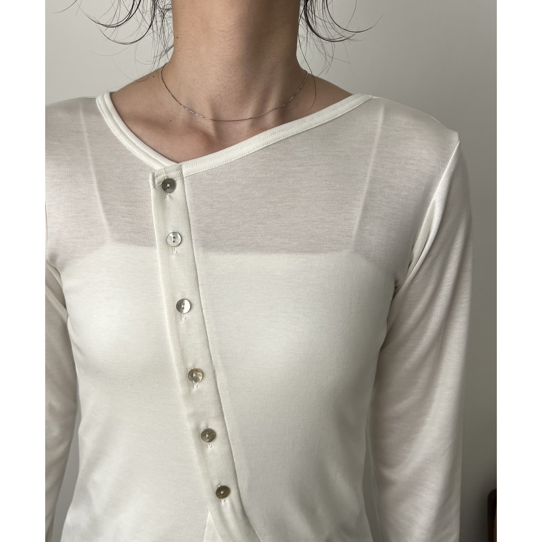アシメボタンカーデ風ロンT