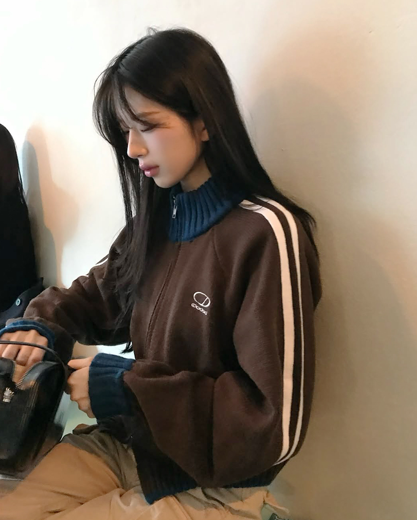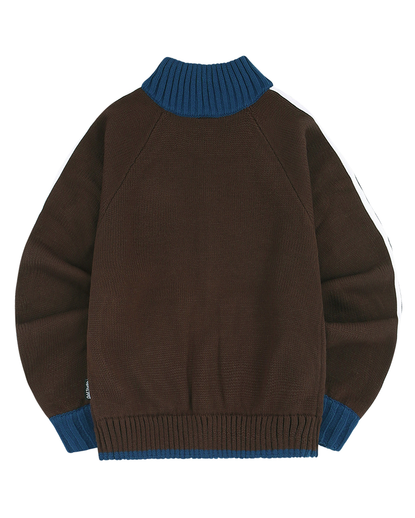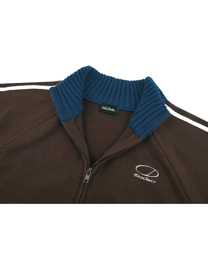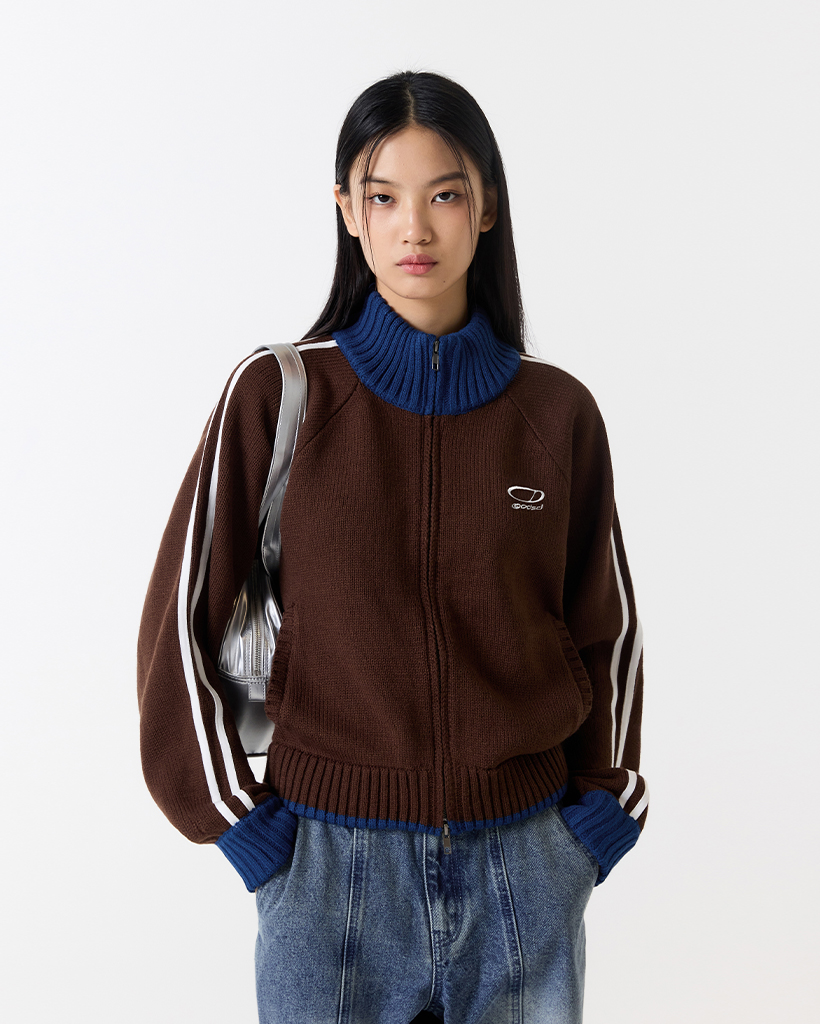 Sporty Track Semi Crop Knit Zip-Up - BROWN