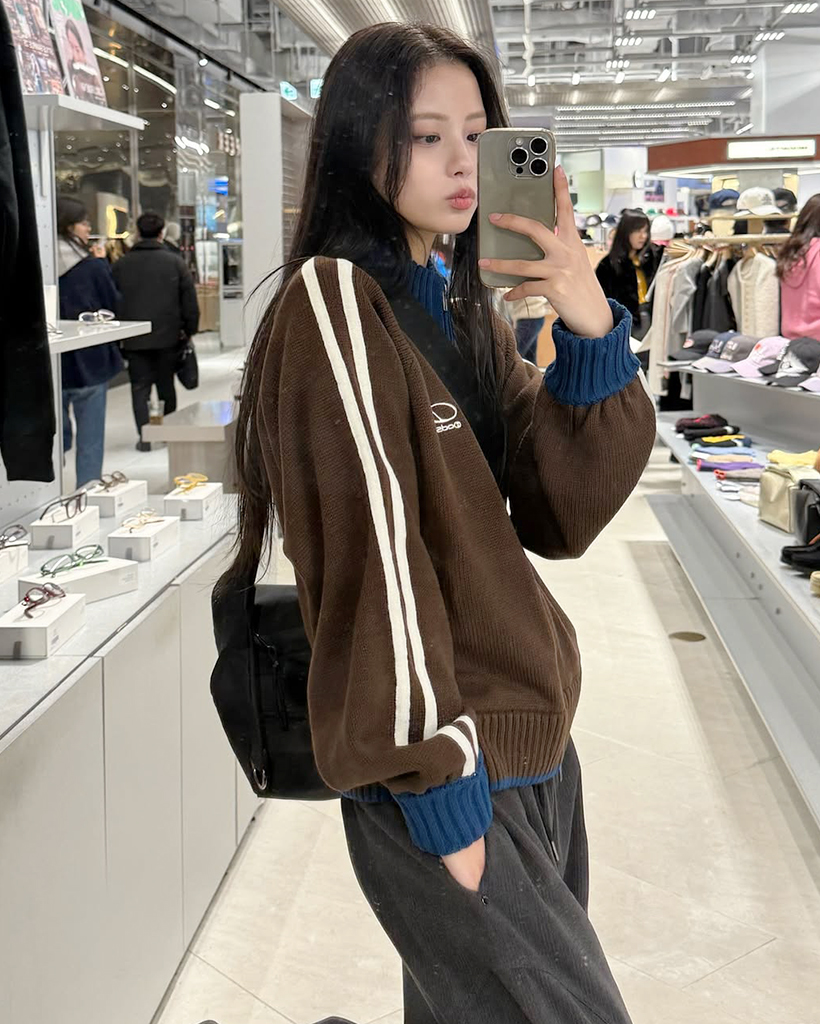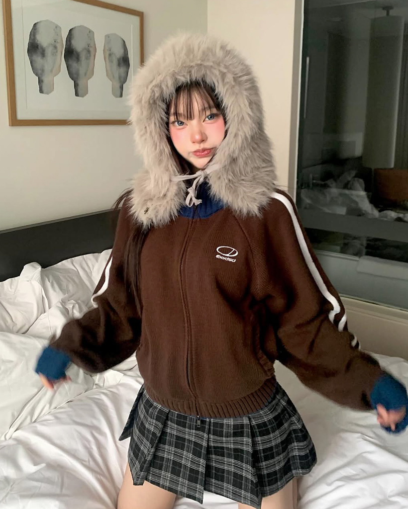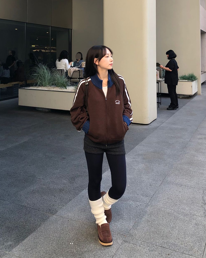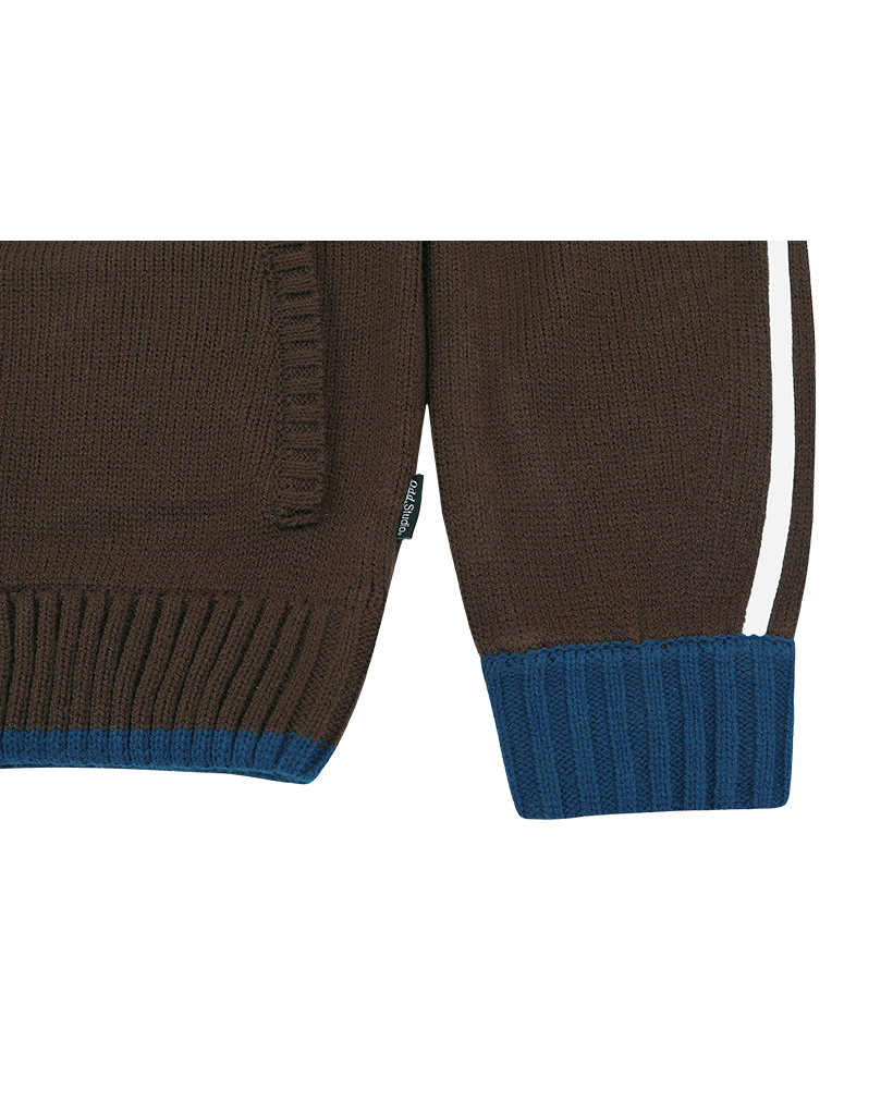 Sporty Track Semi Crop Knit Zip-Up - BROWN