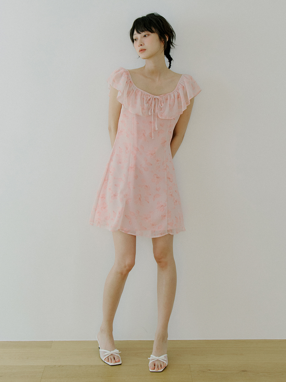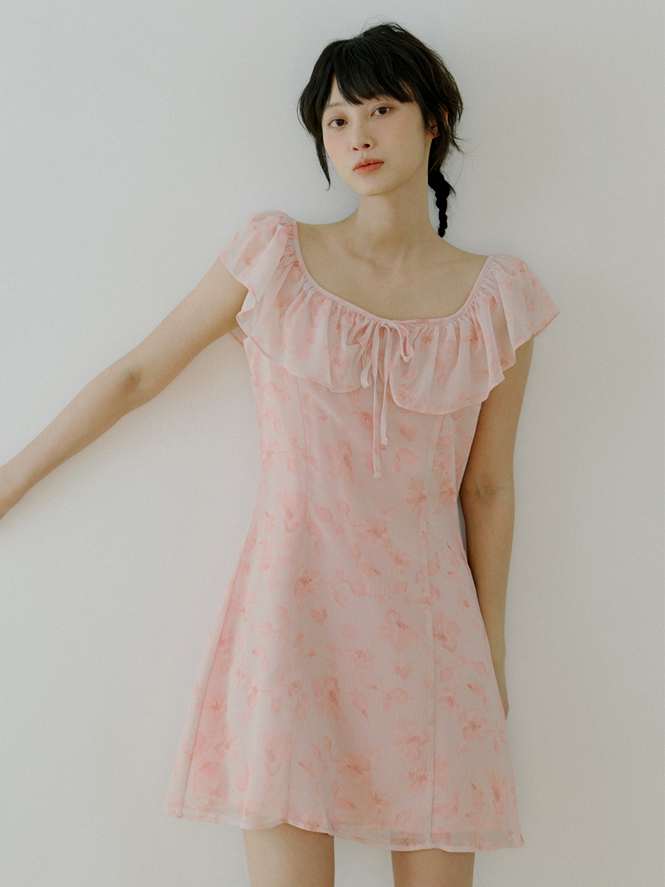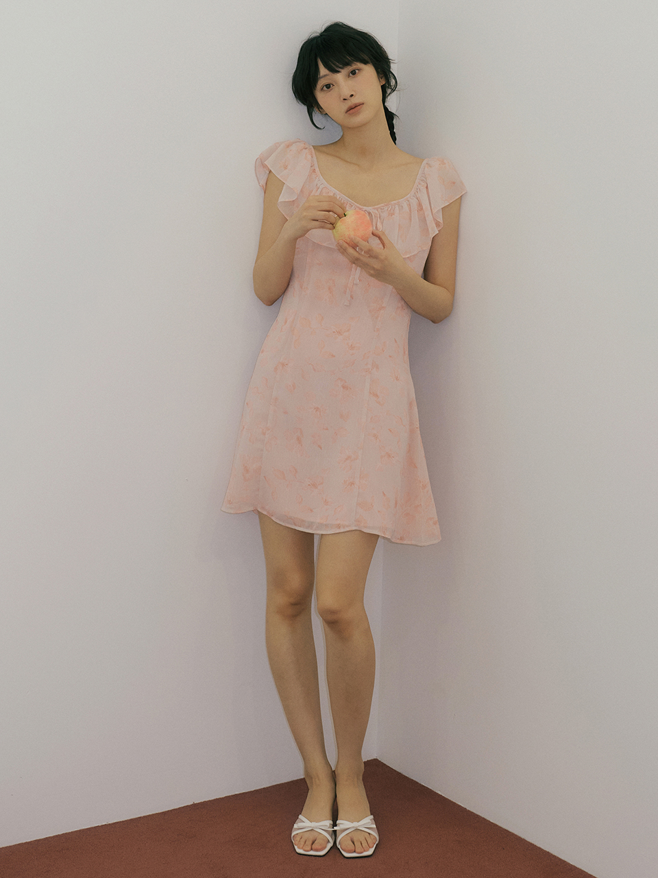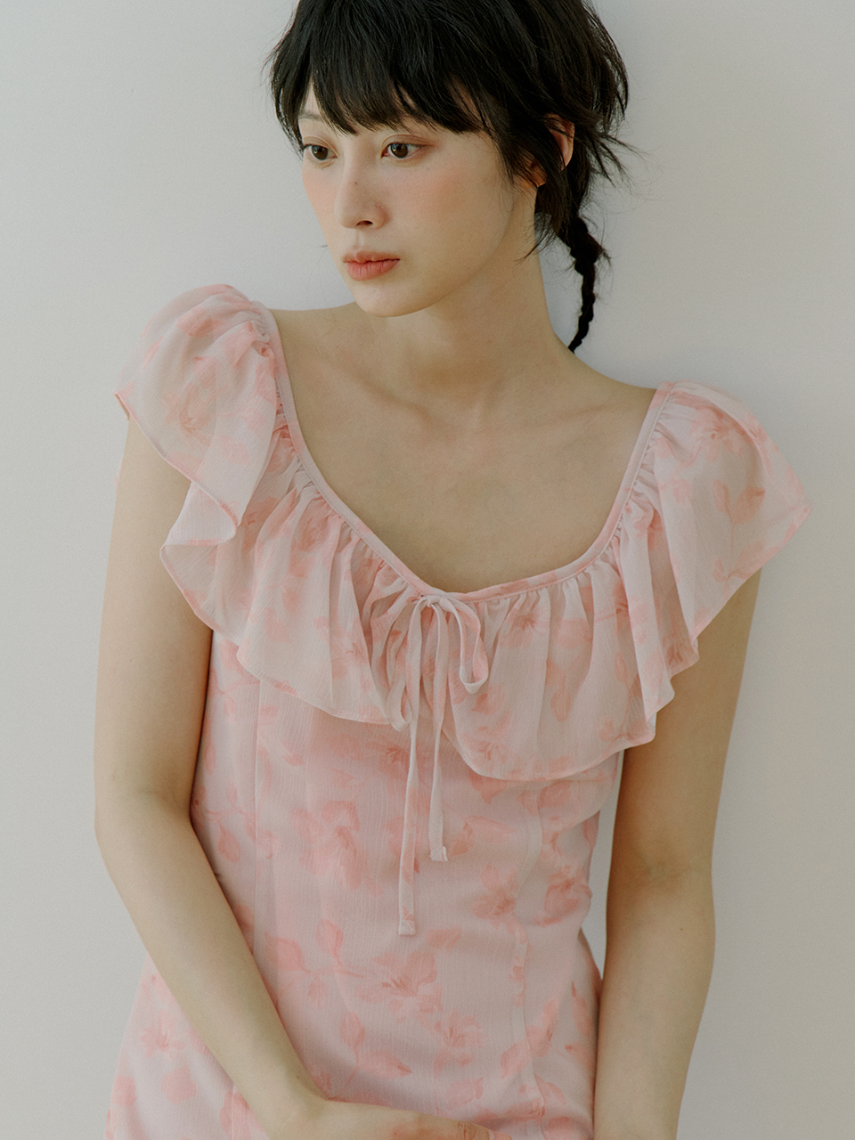 WOI FLOWER PATTERN FRILL OPS PEACH PINK