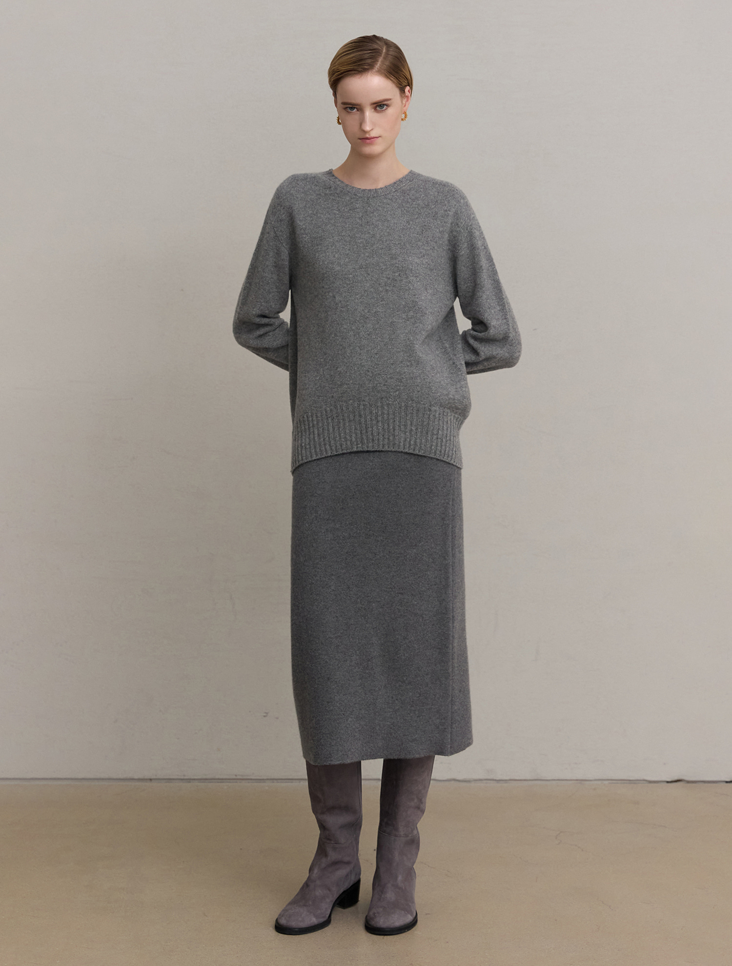 [Cashmere 100%] Wholegarments Round pullover - Grey