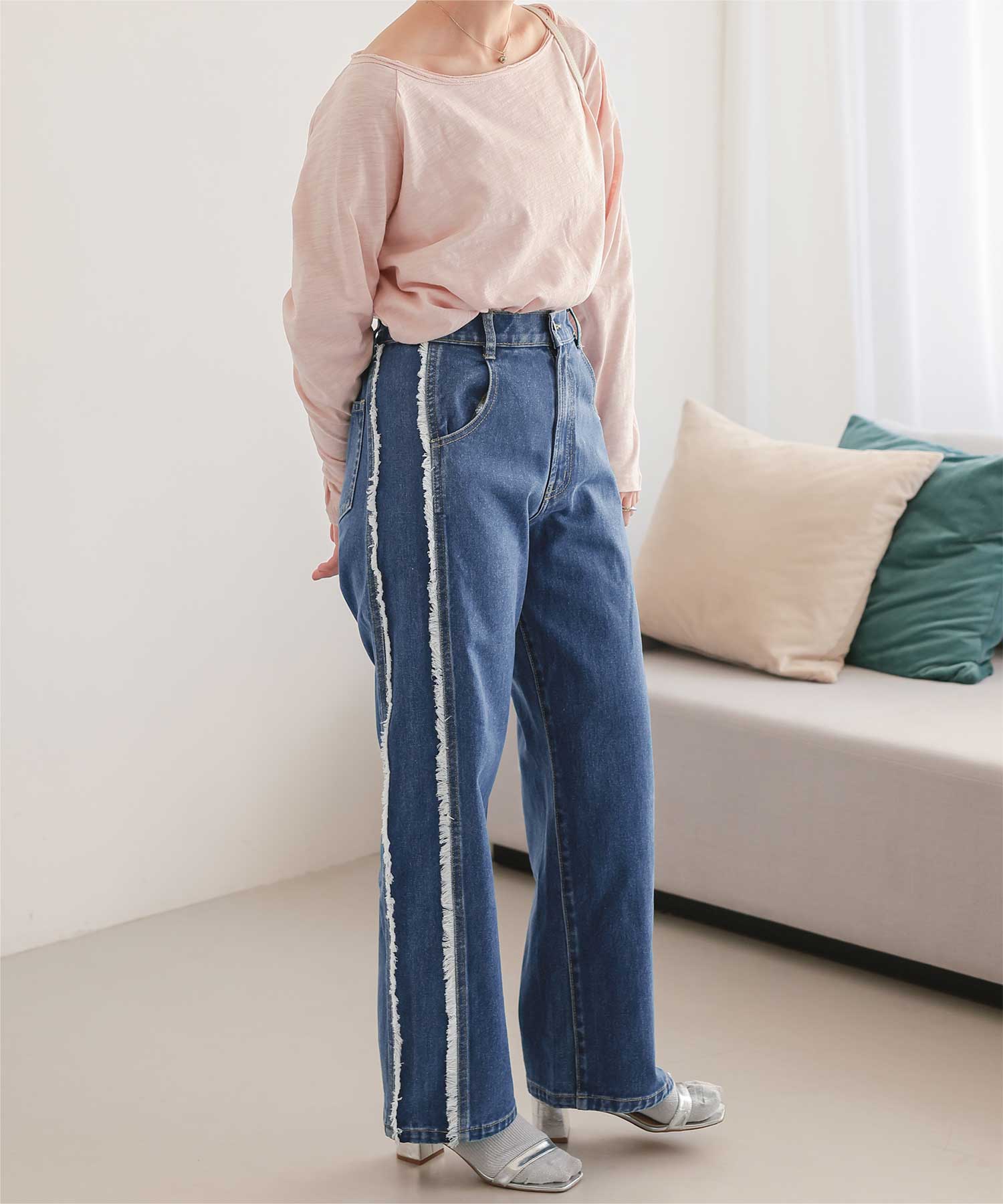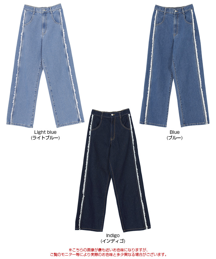 サイドフリンジワイドデニムパンツ
