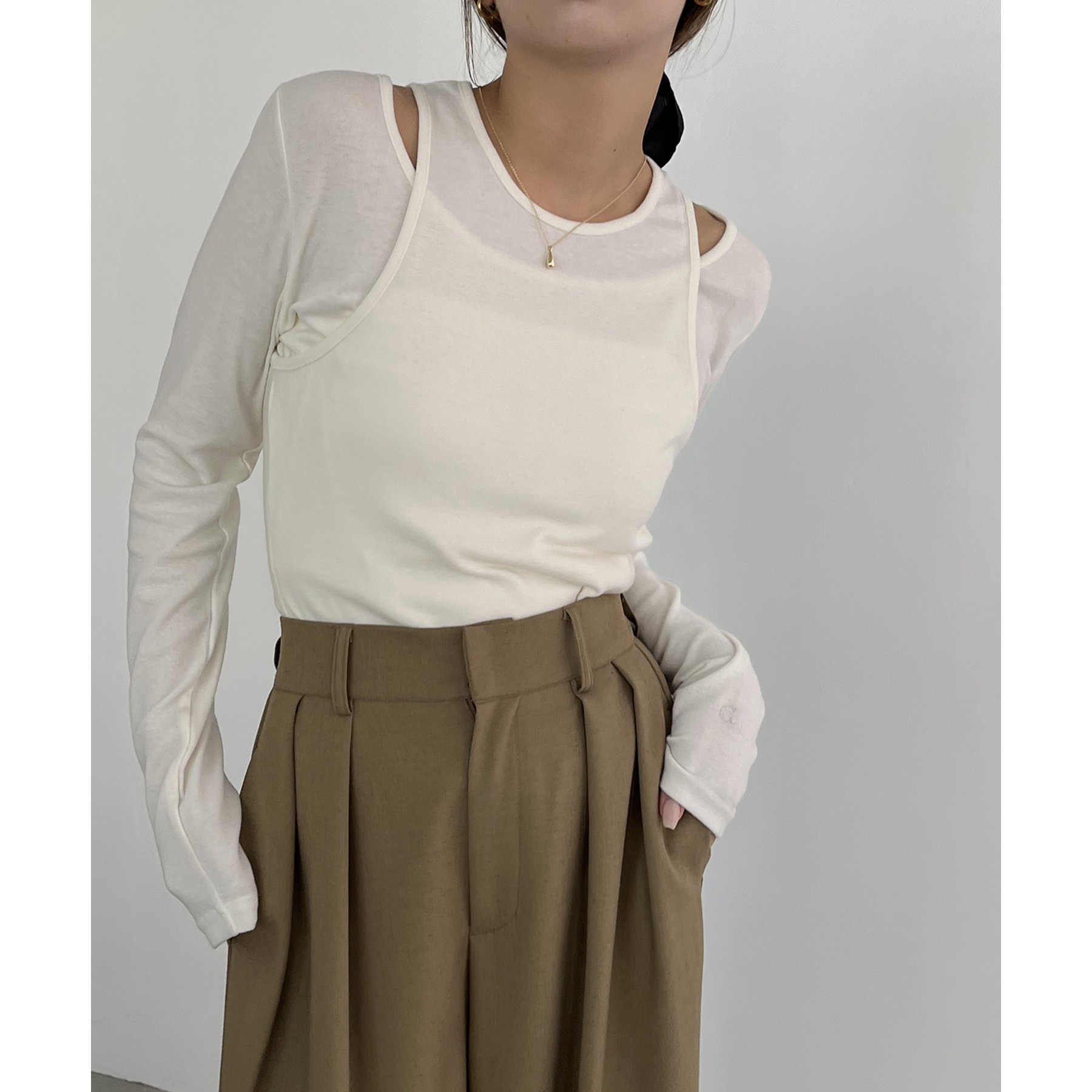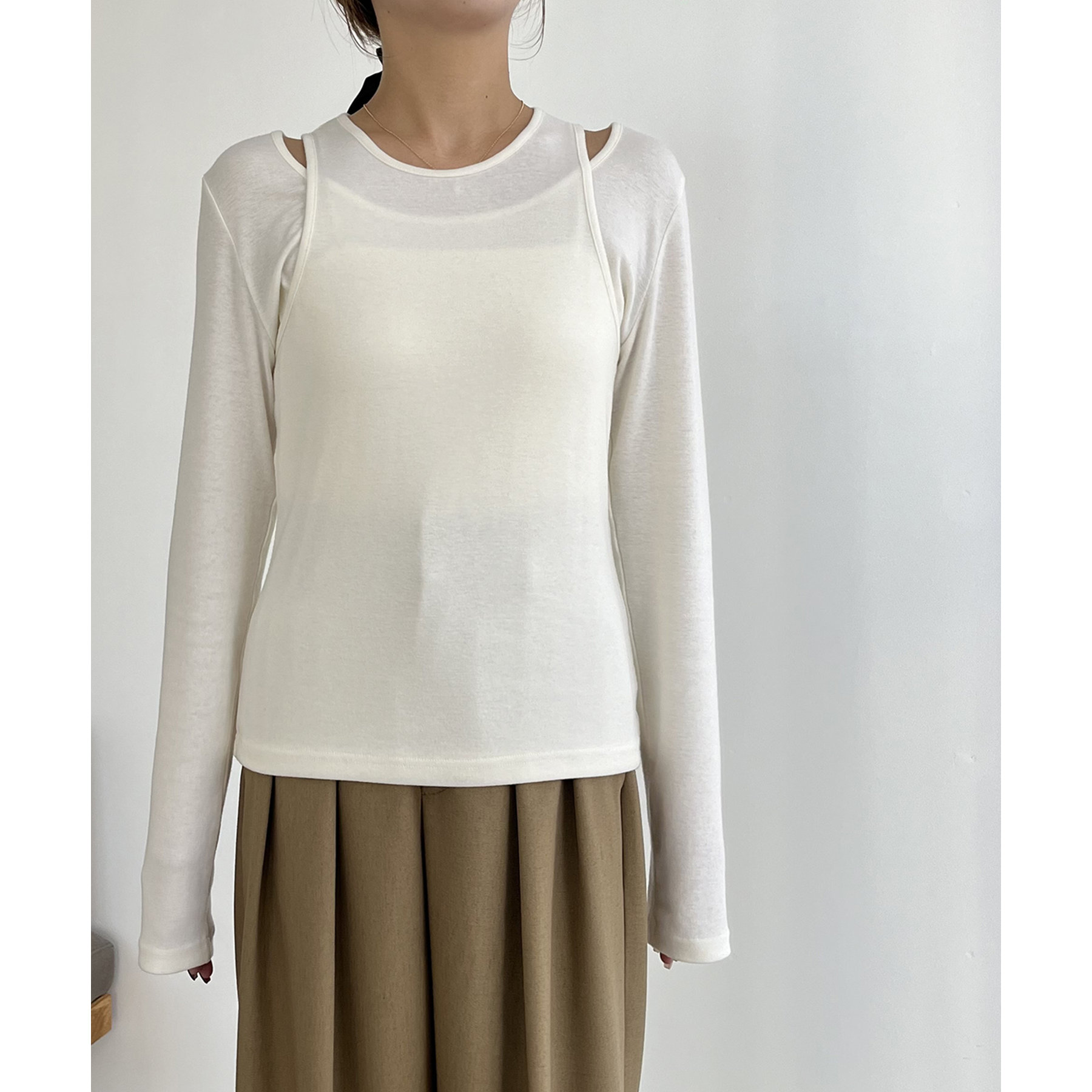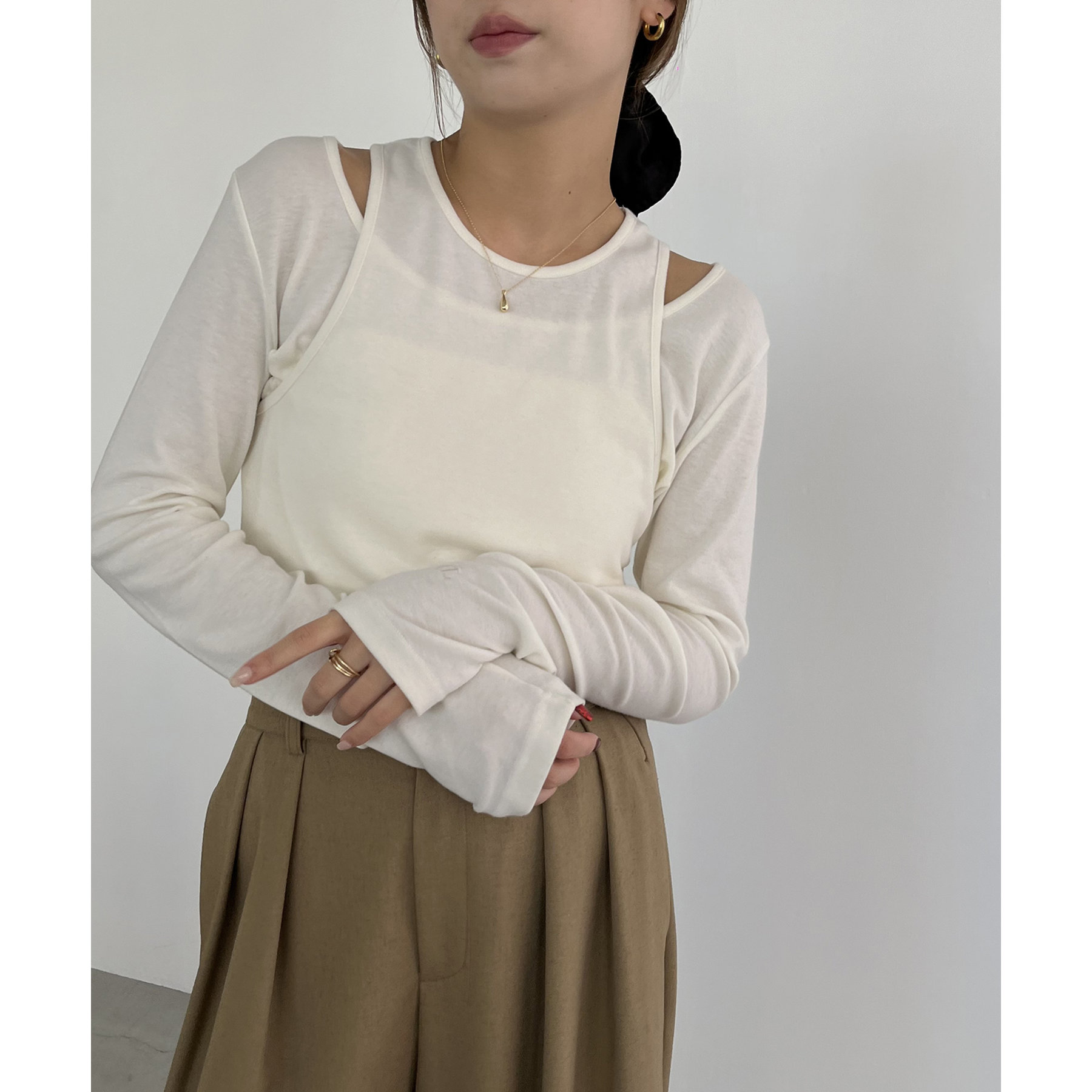 タンクトップとロンTのセットで今っぽいレイヤードスタイルに