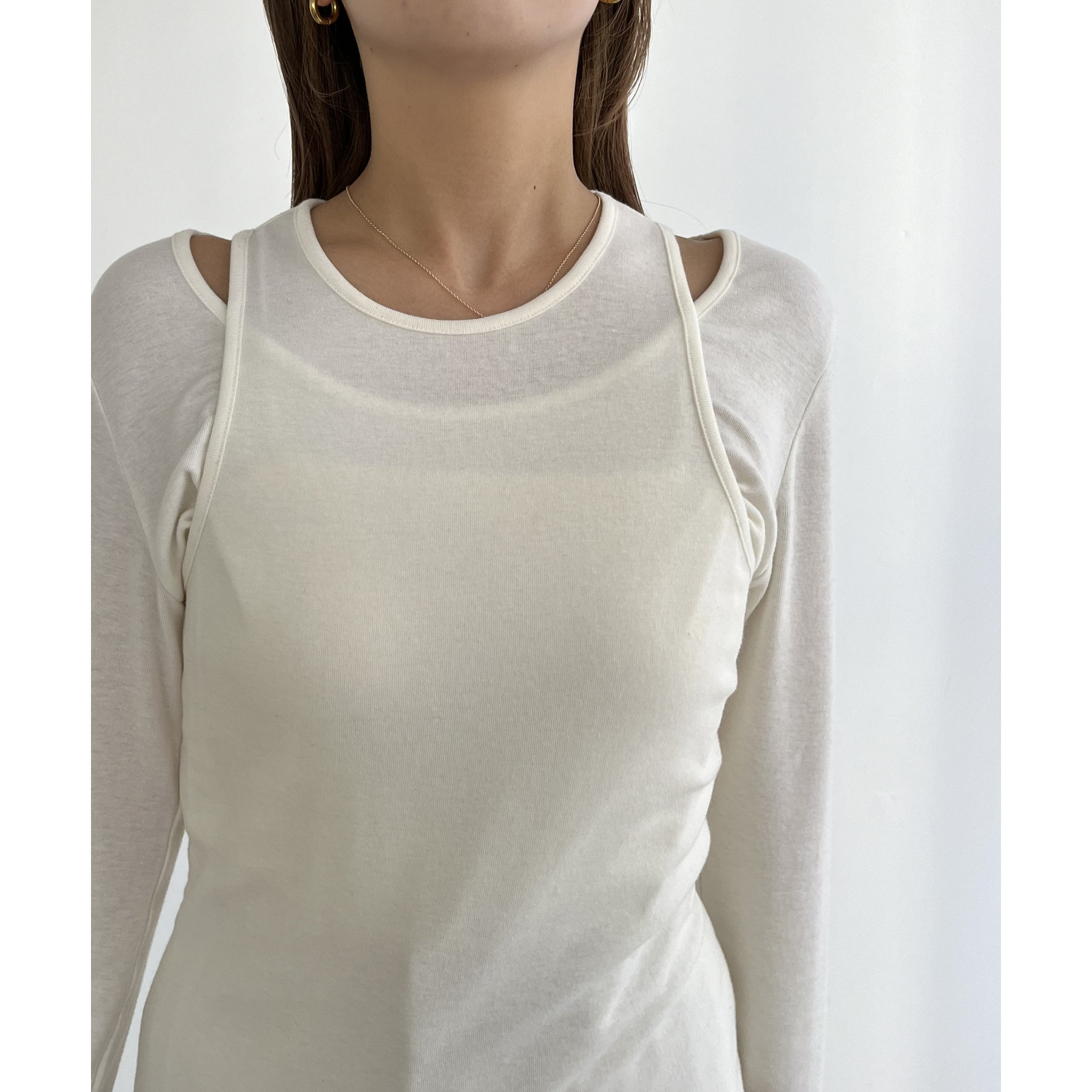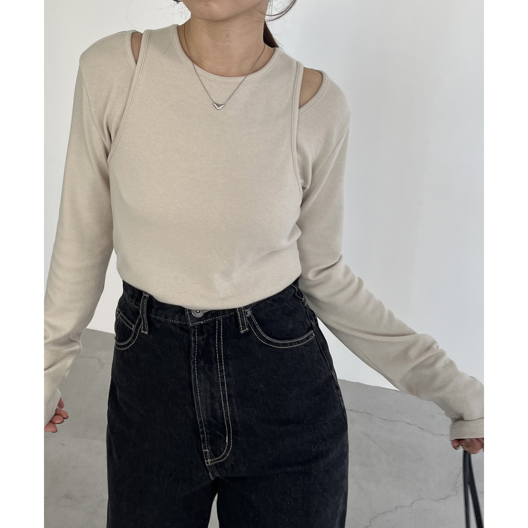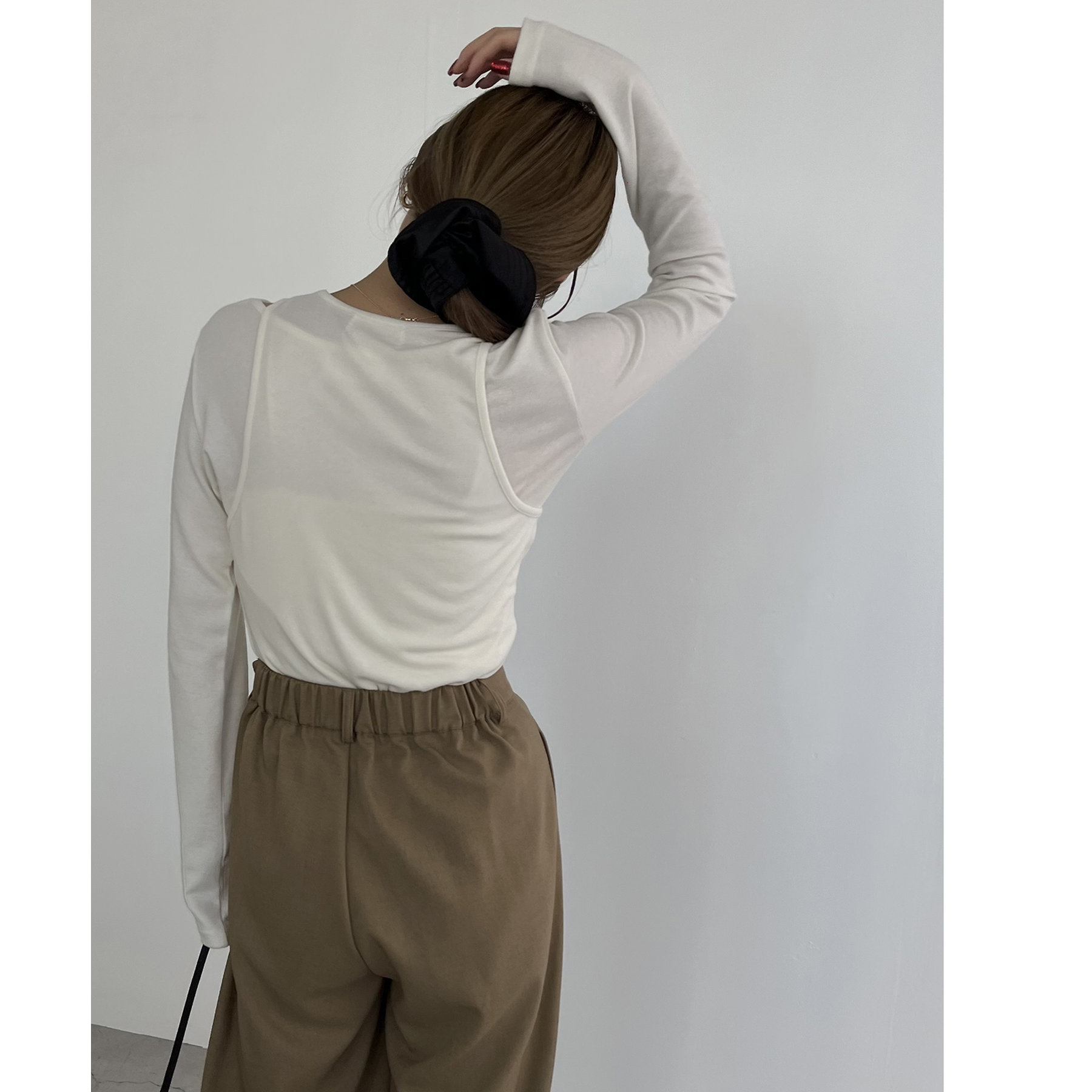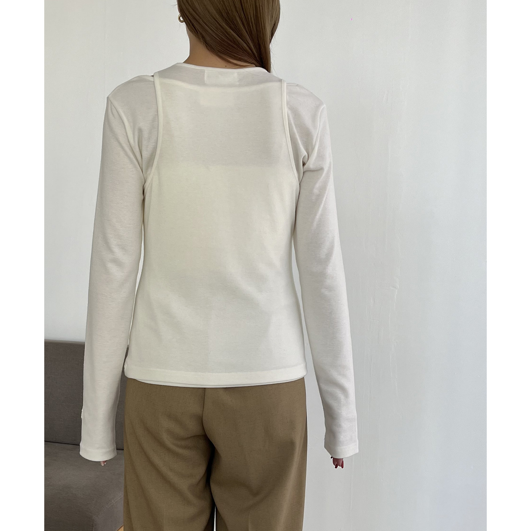 タンクトップとロンTのセットで今っぽいレイヤードスタイルに