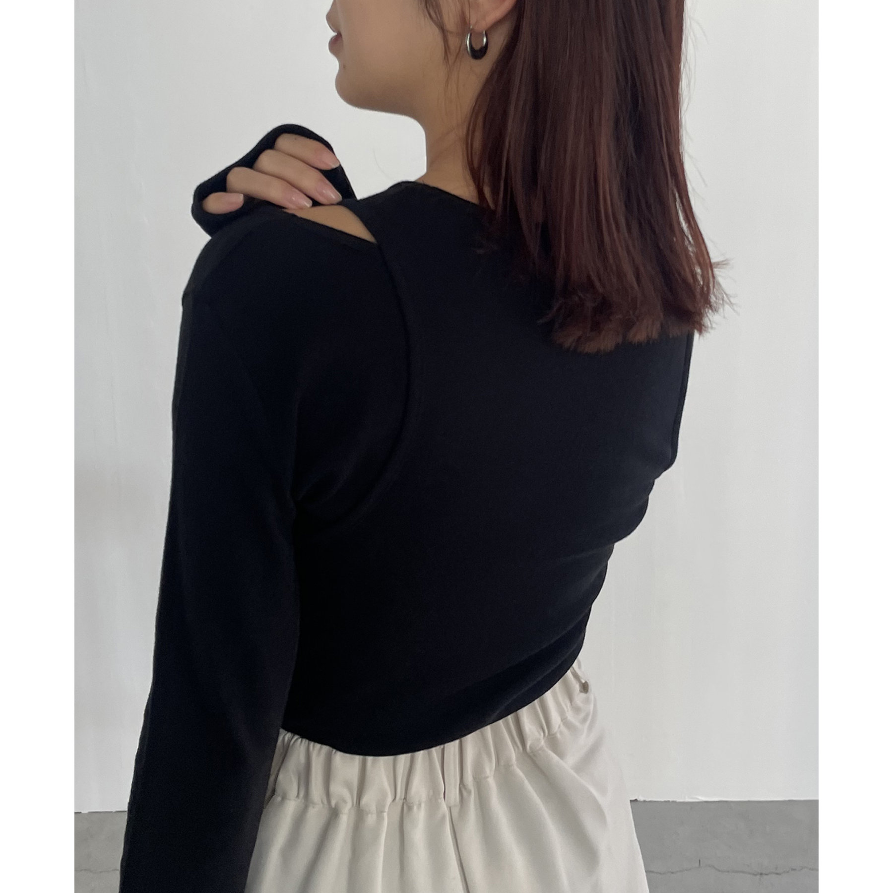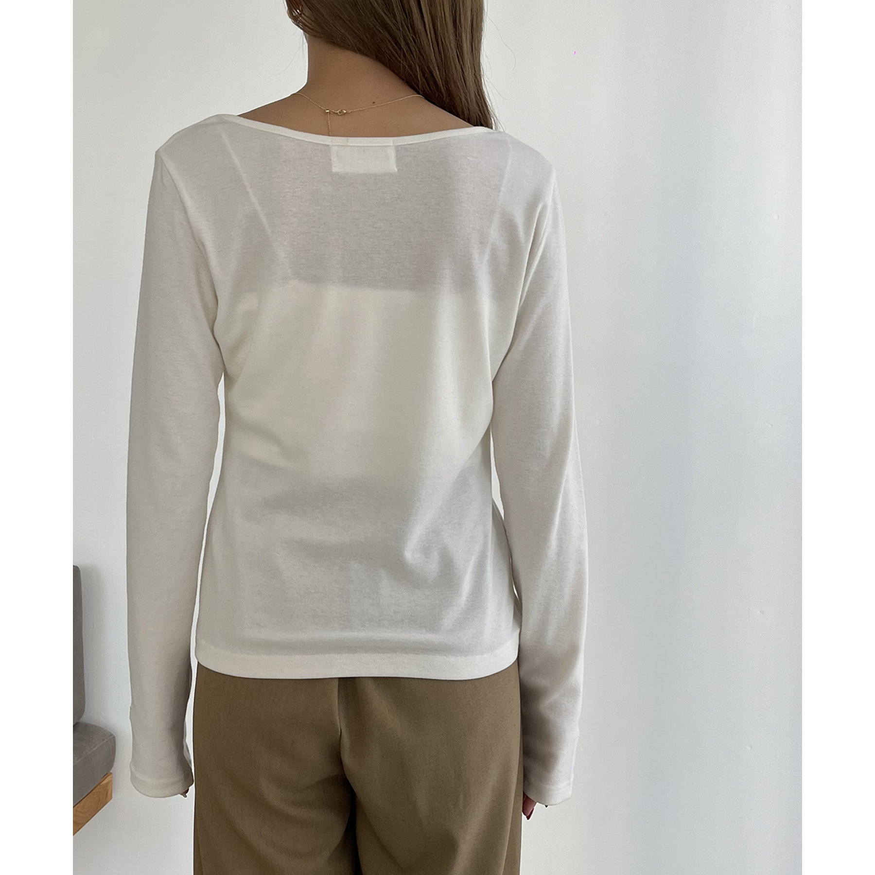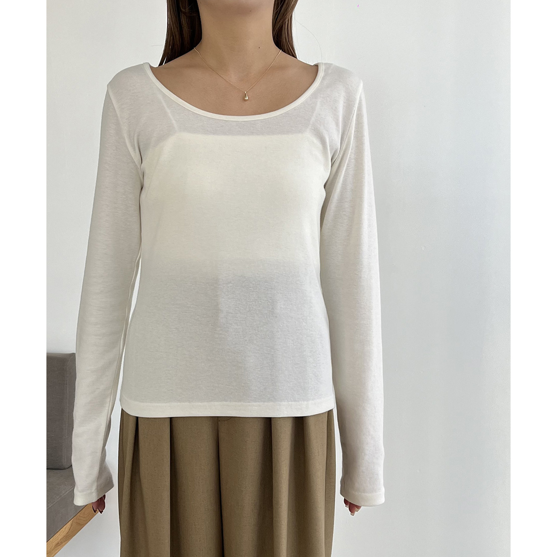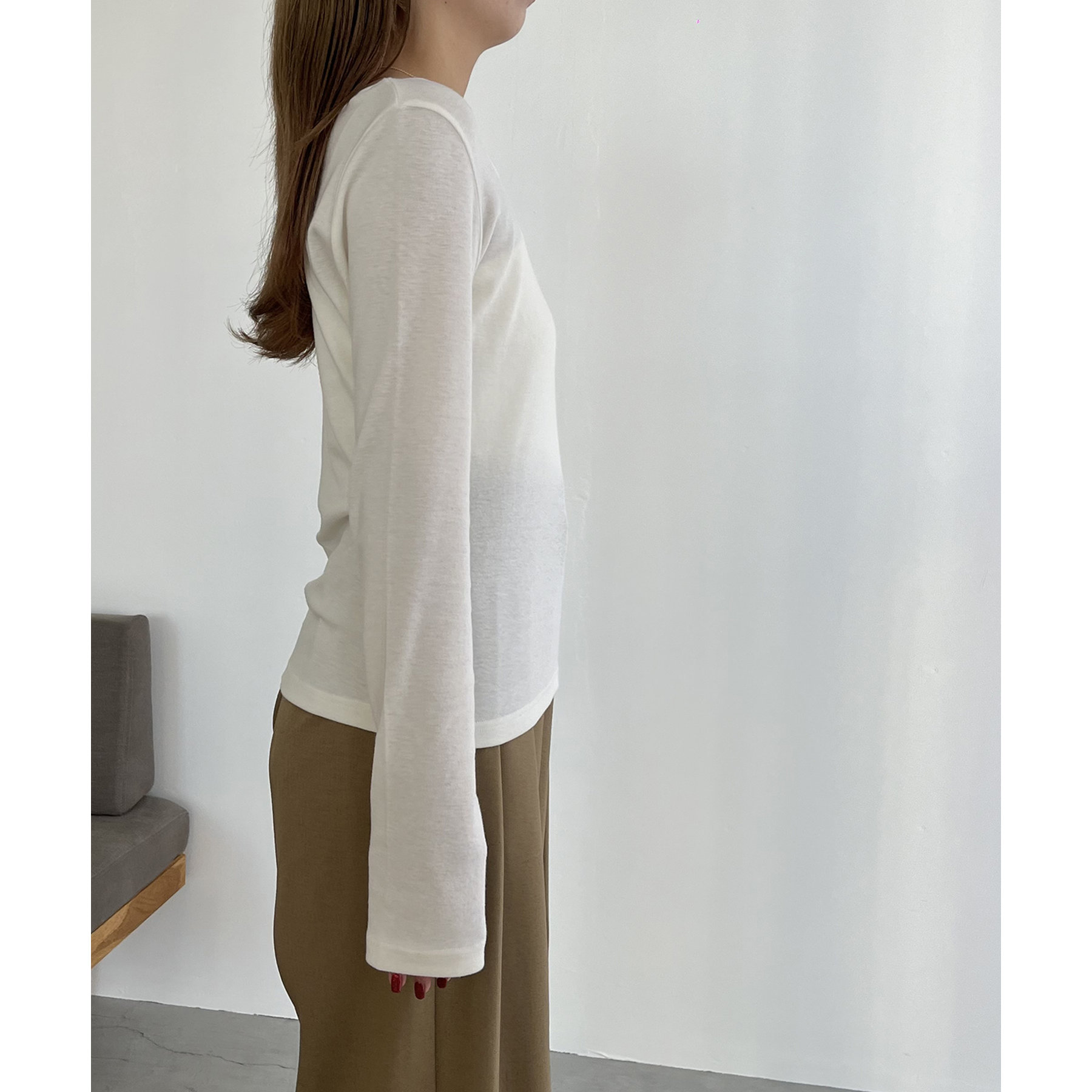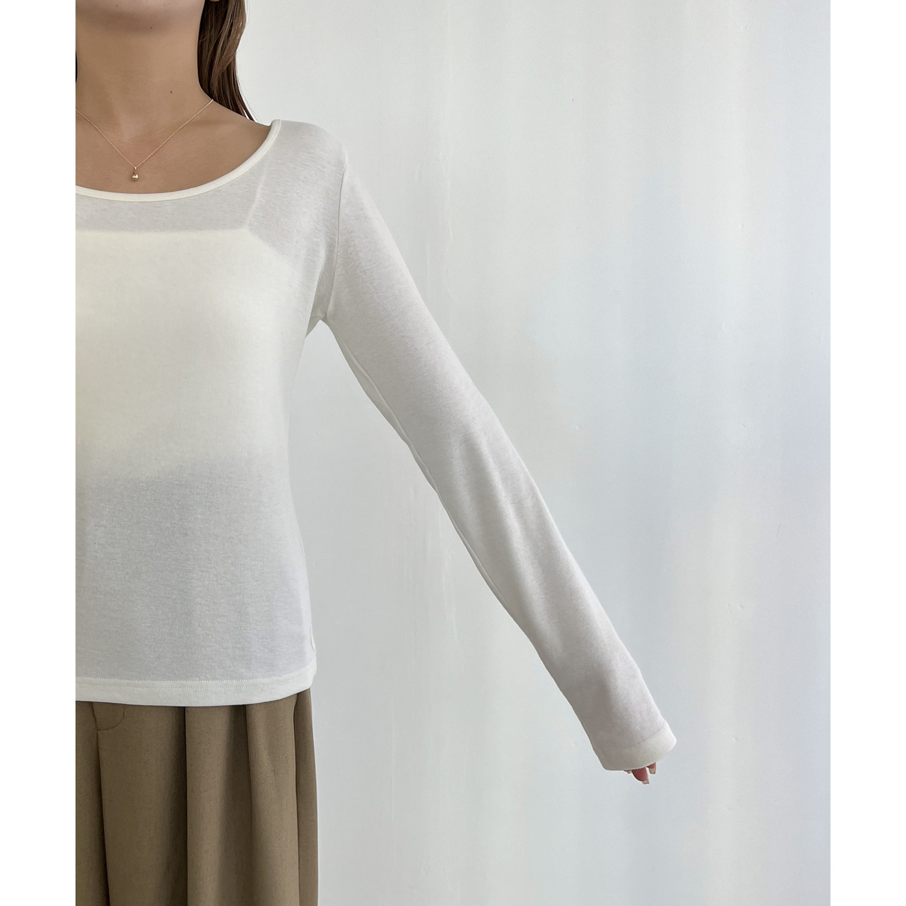 ・ロンTはデコルテが広めに開いた女性らしいシルエット