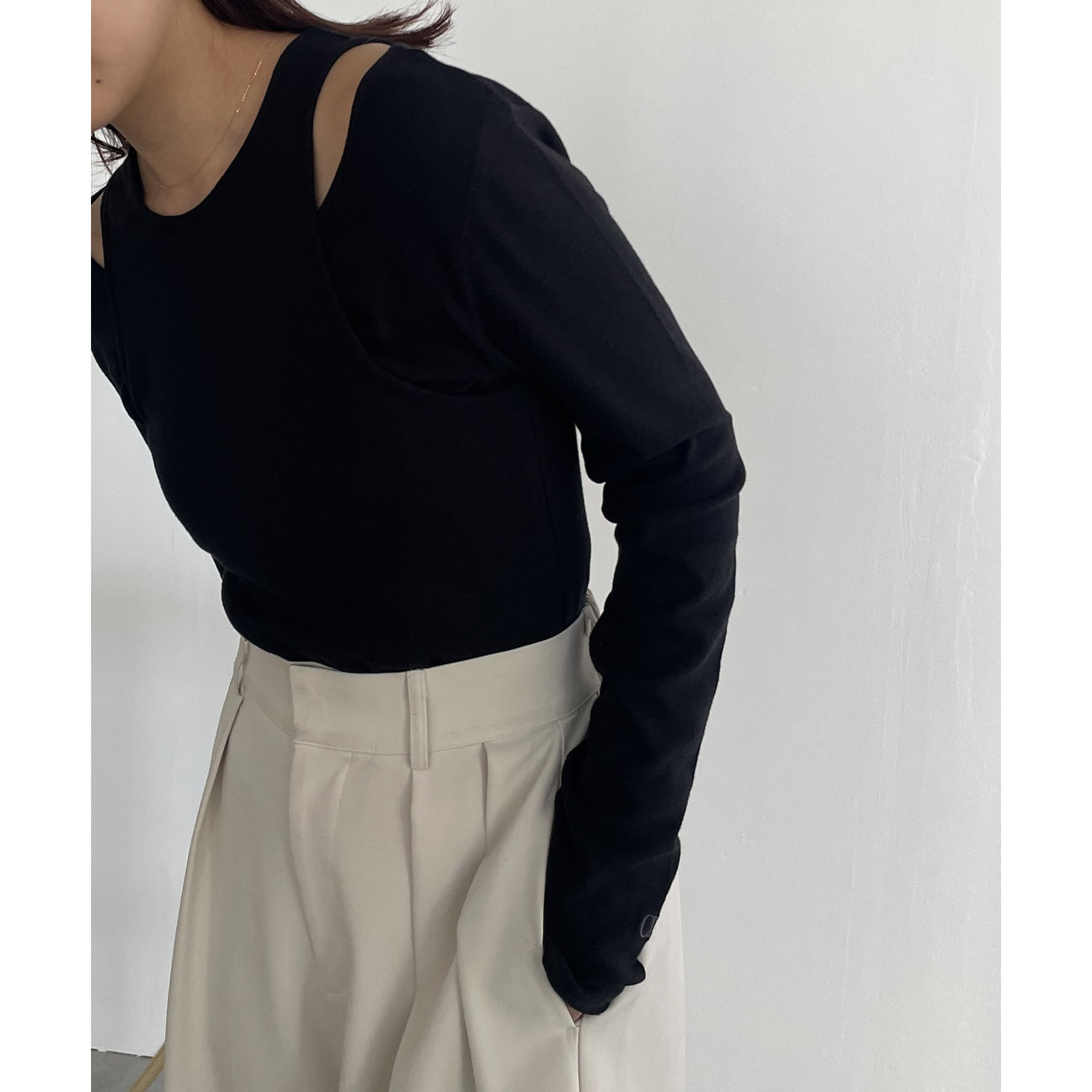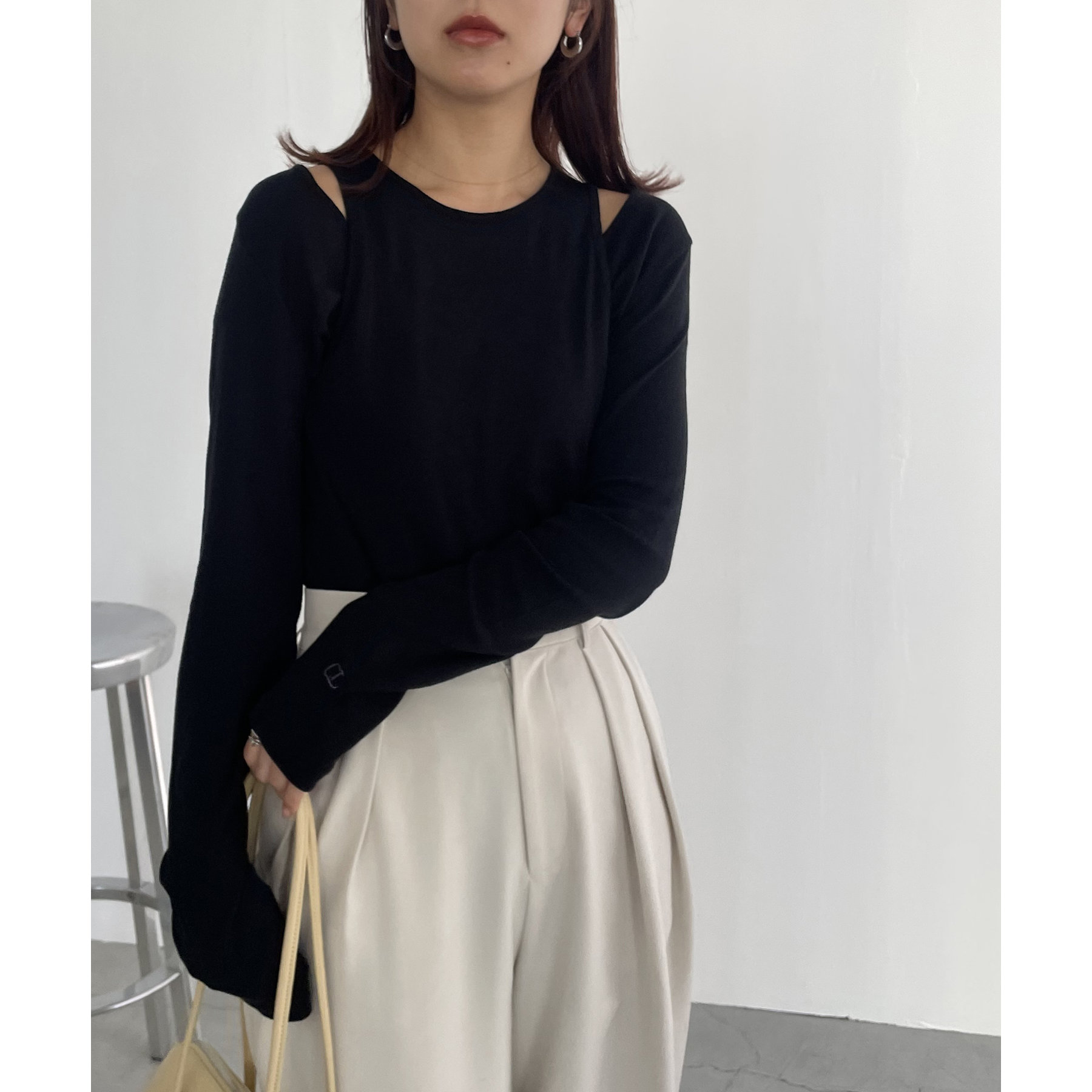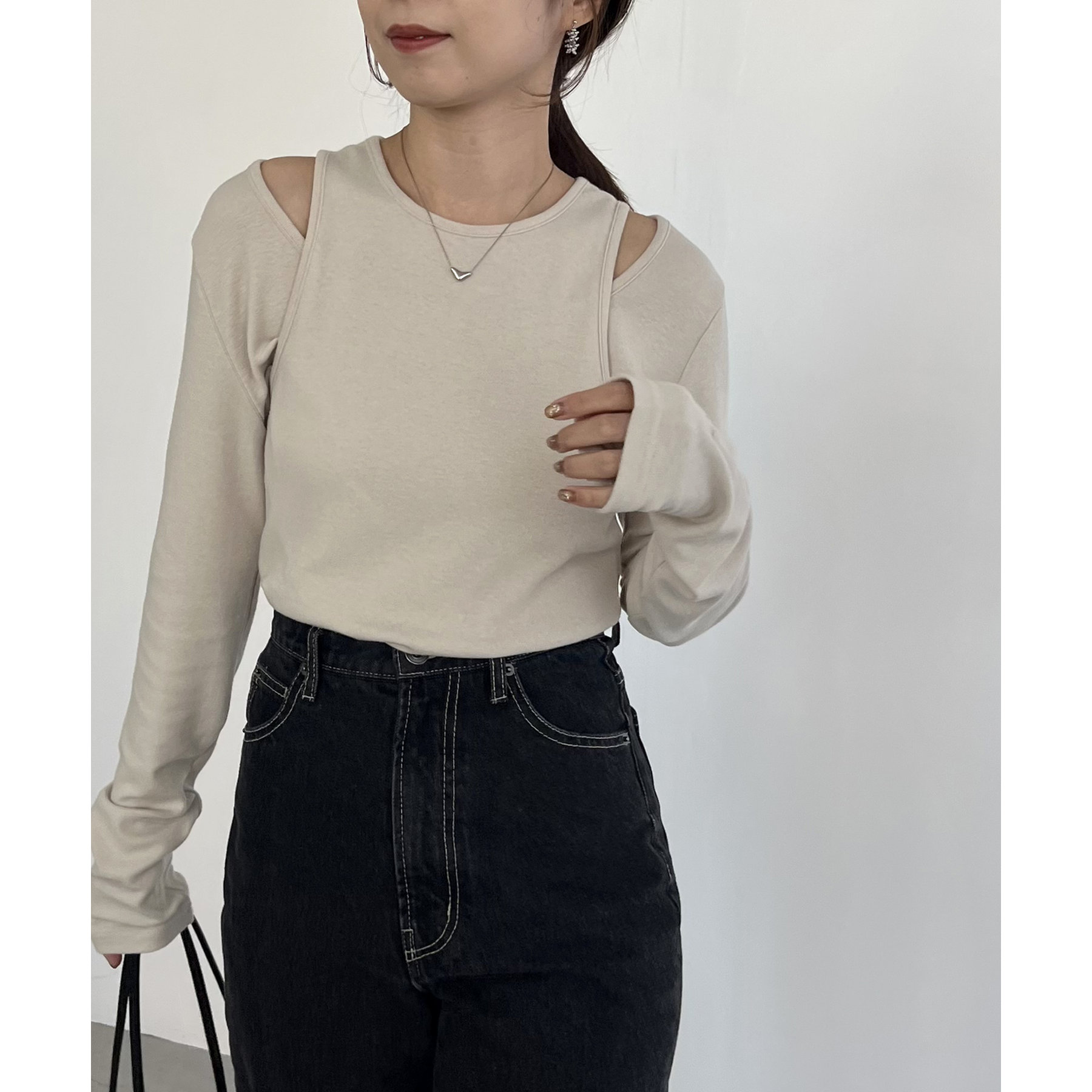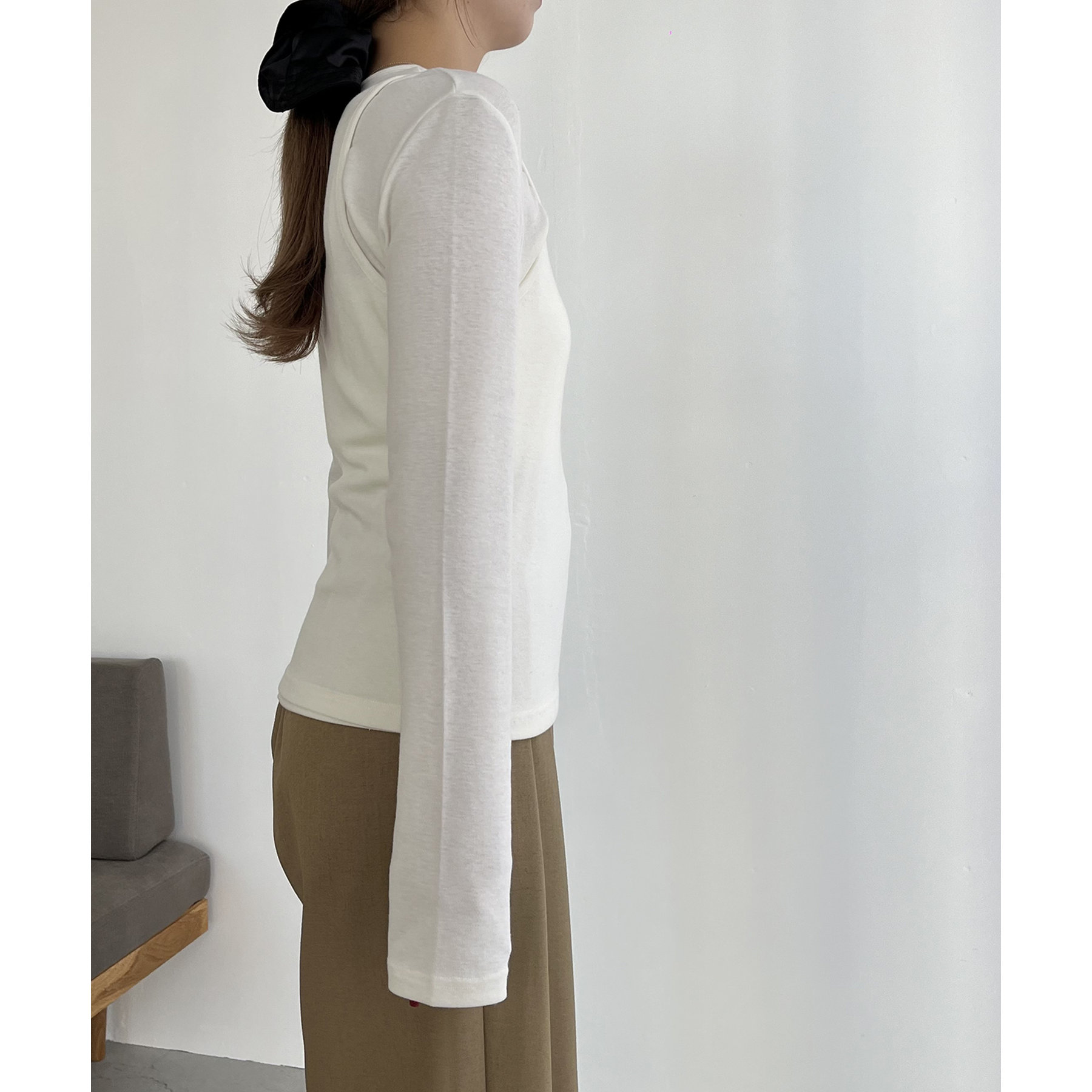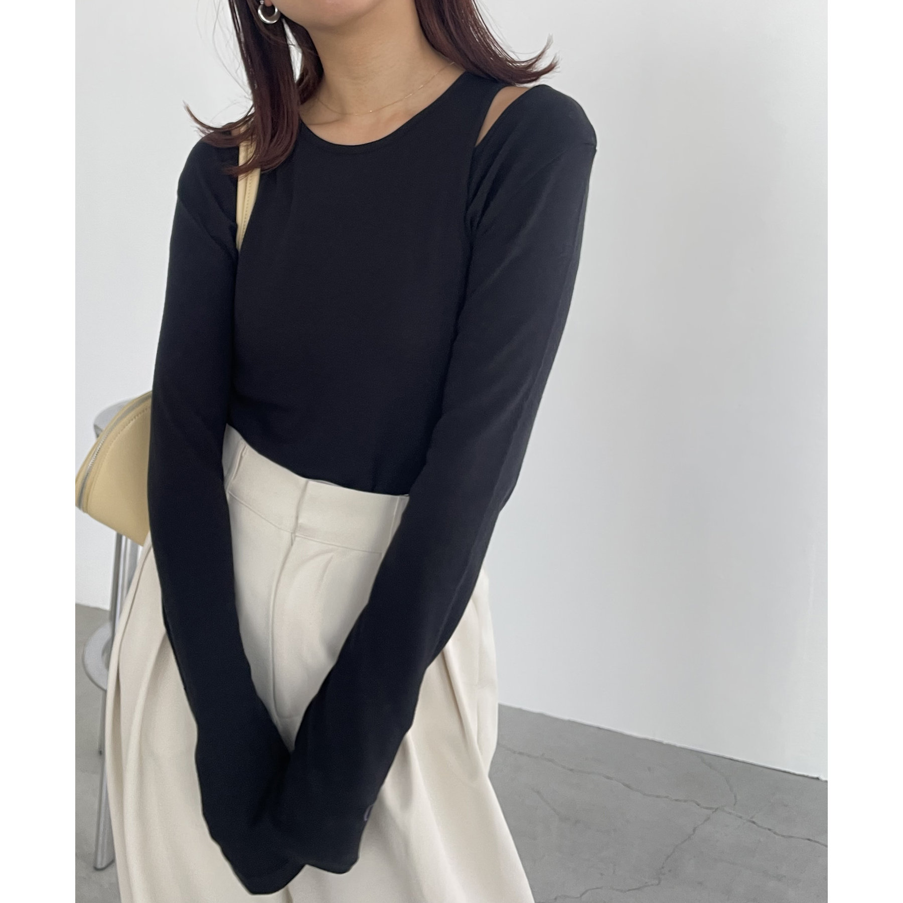 ・ロンTはデコルテが広めに開いた女性らしいシルエット