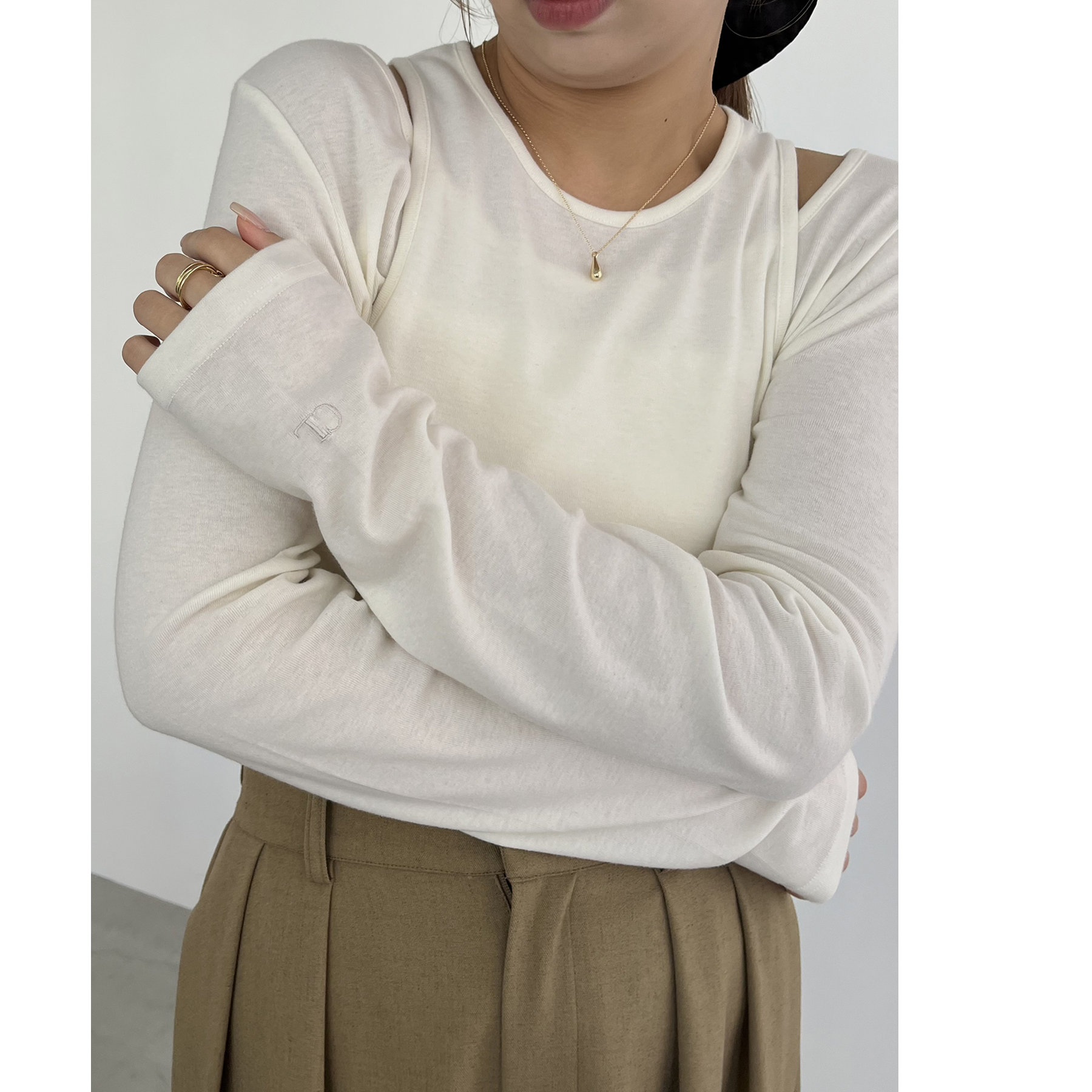 ・袖口のCL刺繍がさりげないポイントに