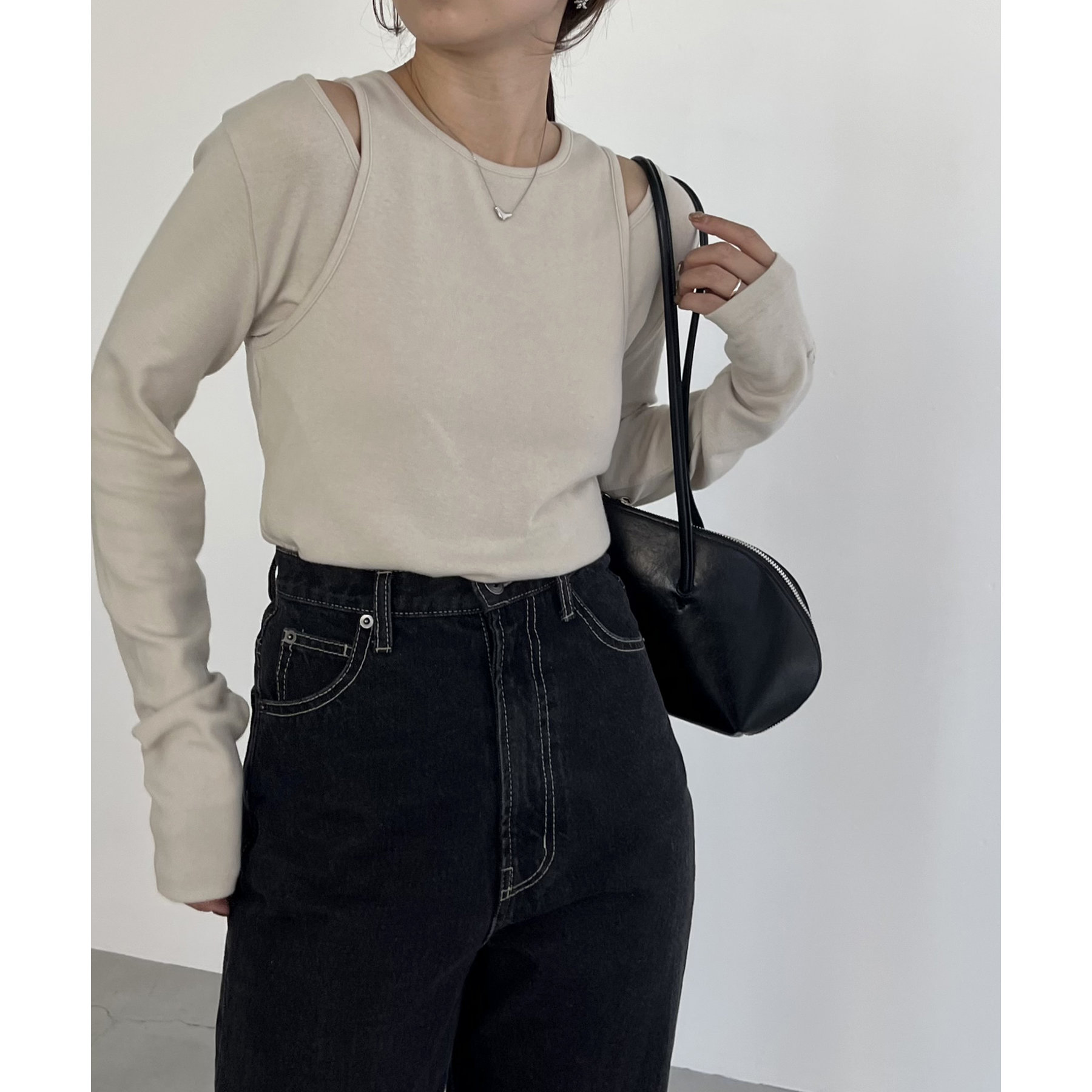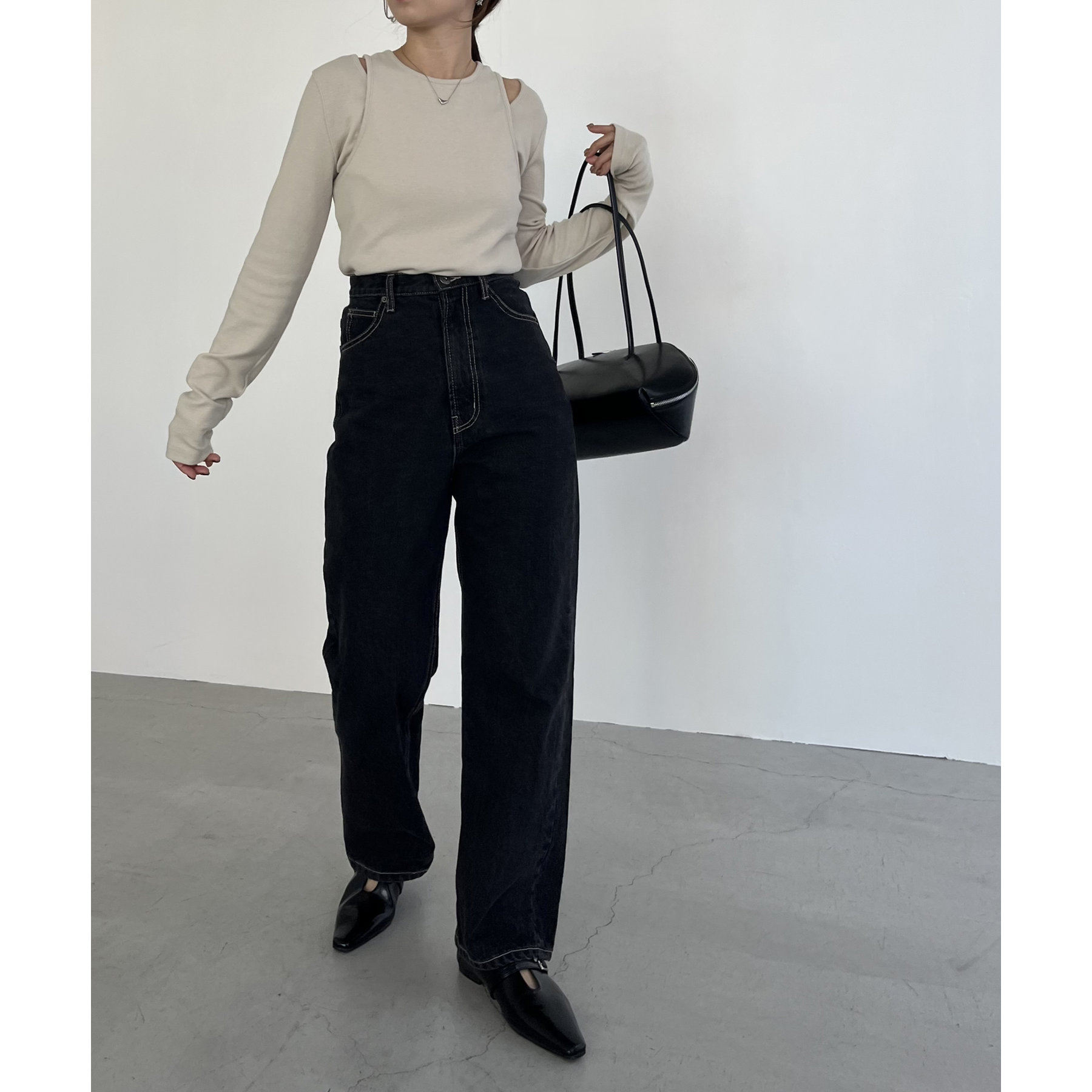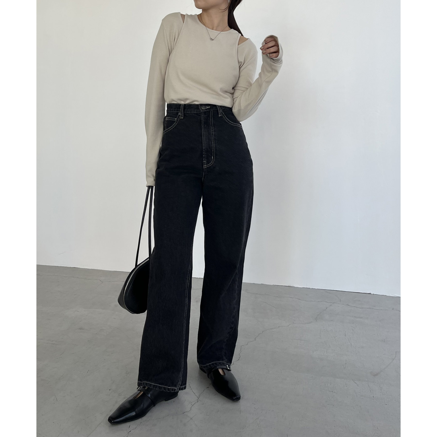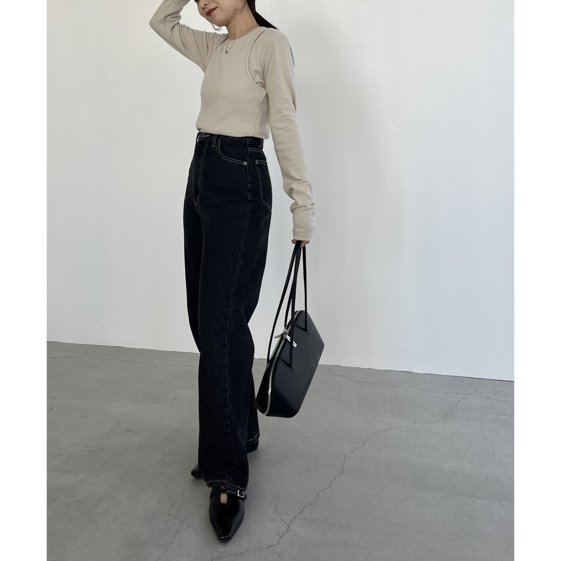 【ベージュ着用アイテム】13ozハイウエストストレートデニム