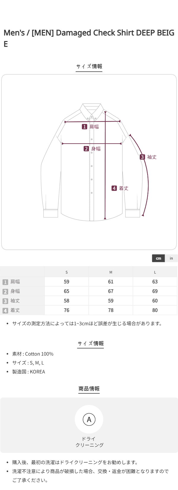 このブランドの商品はお客様の都合による交換および返品はお受けいたしかねます。 十分にご注意の上、ご注文をお願い致します。