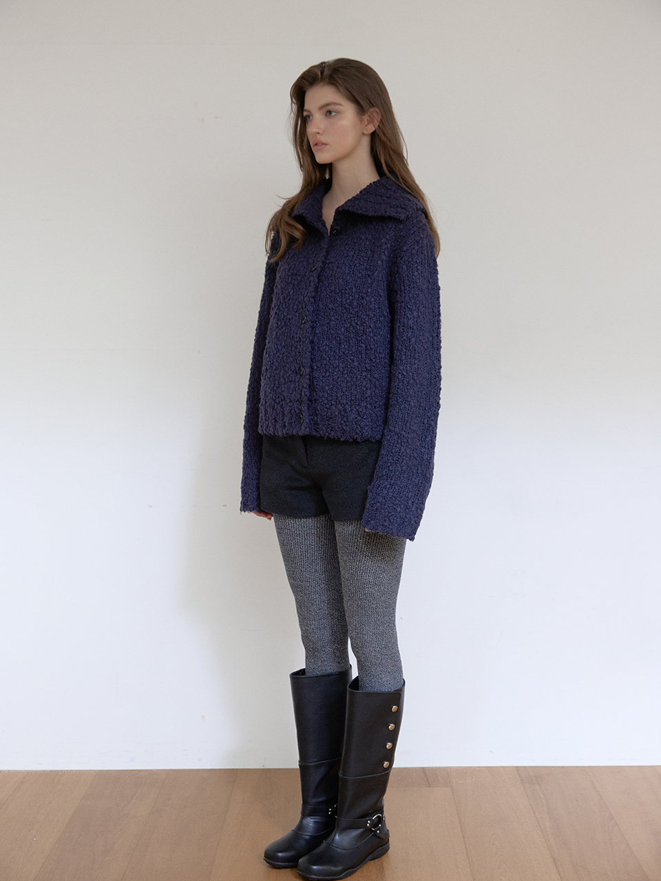 COZY HIGHNECK CARDIGAN (NAVY)