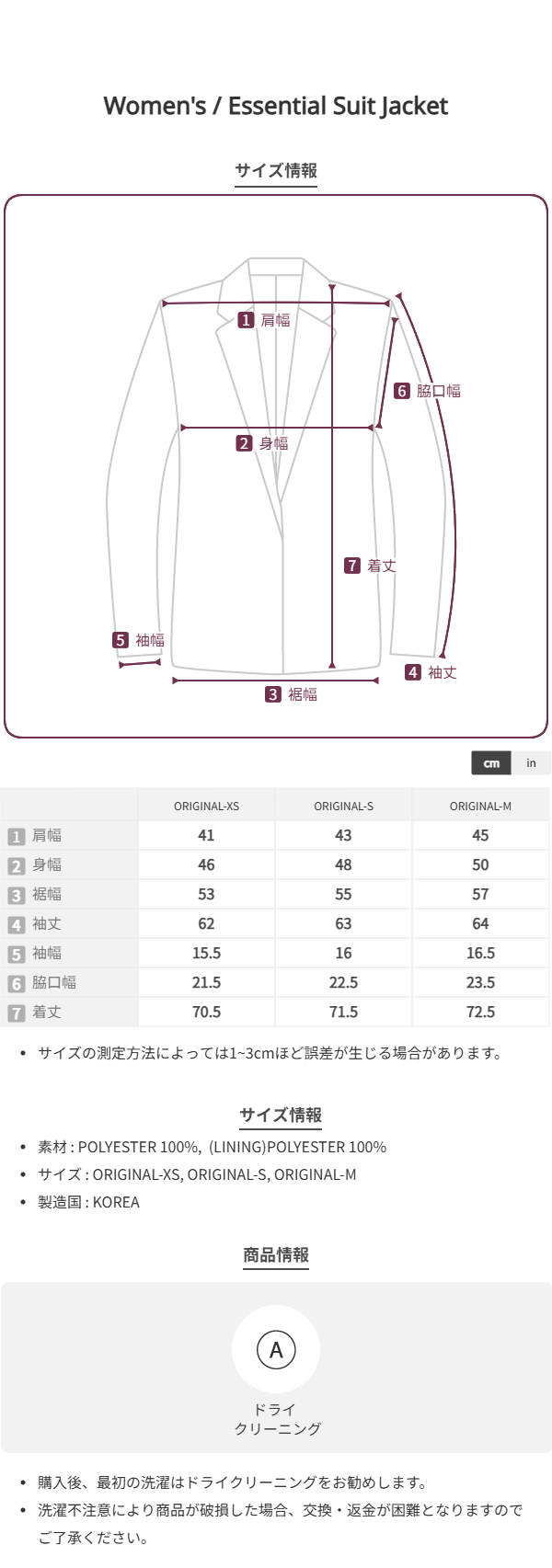 このブランドの商品はお客様の都合による交換および返品はお受けいたしかねます。 十分にご注意の上、ご注文をお願い致します。