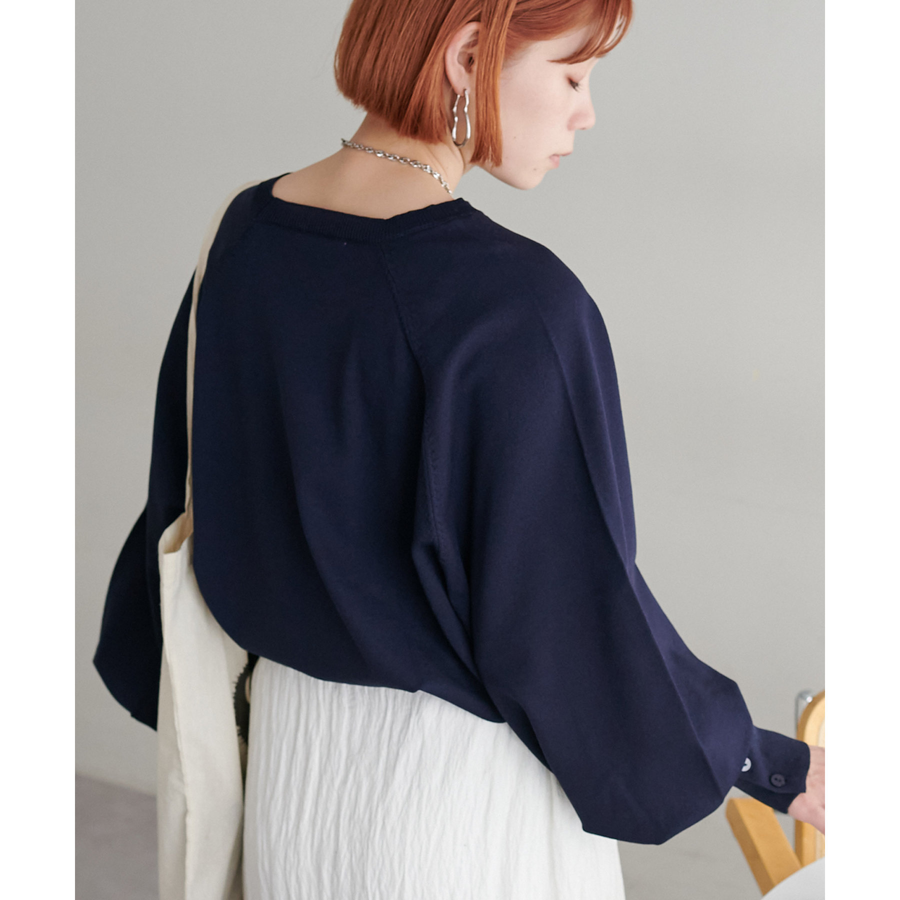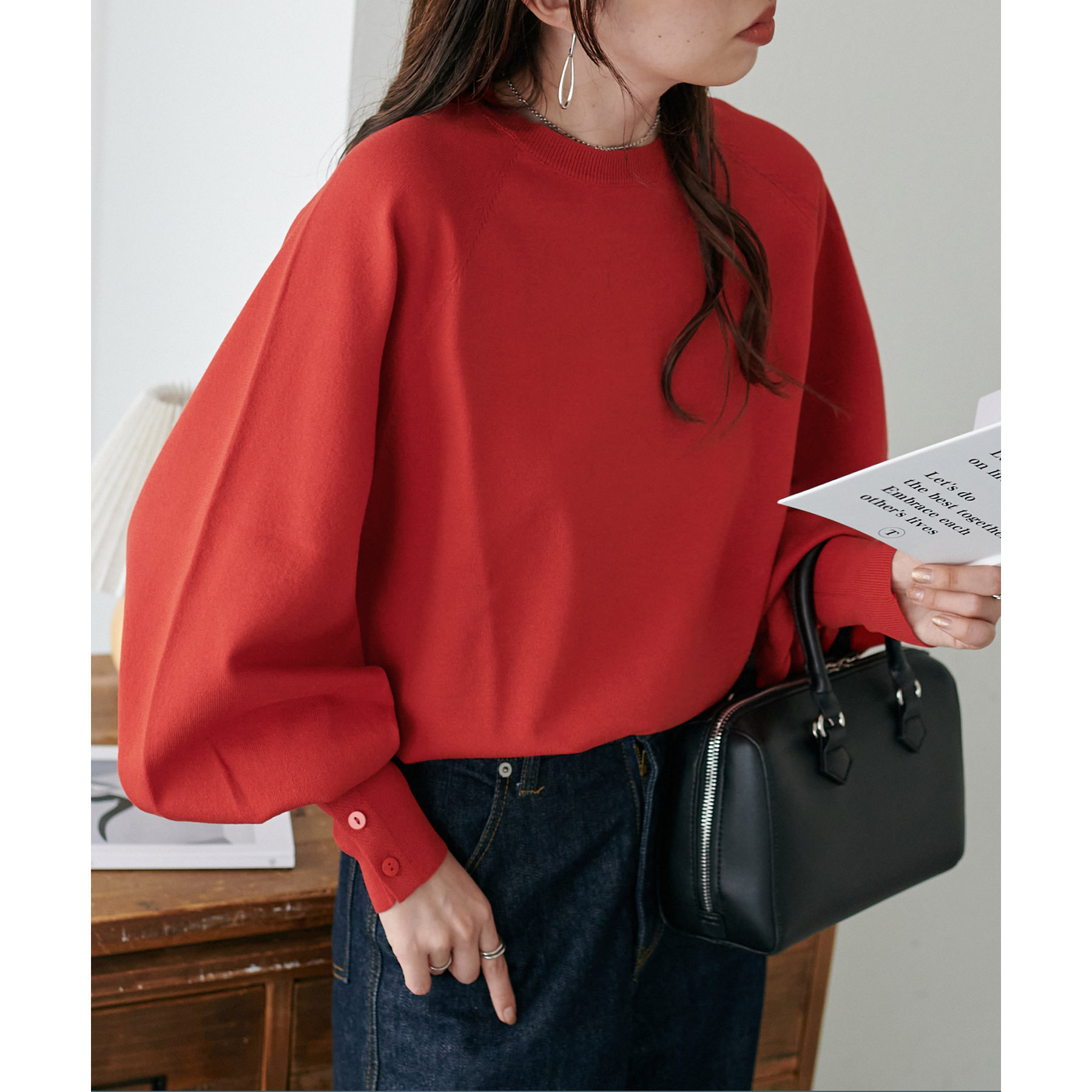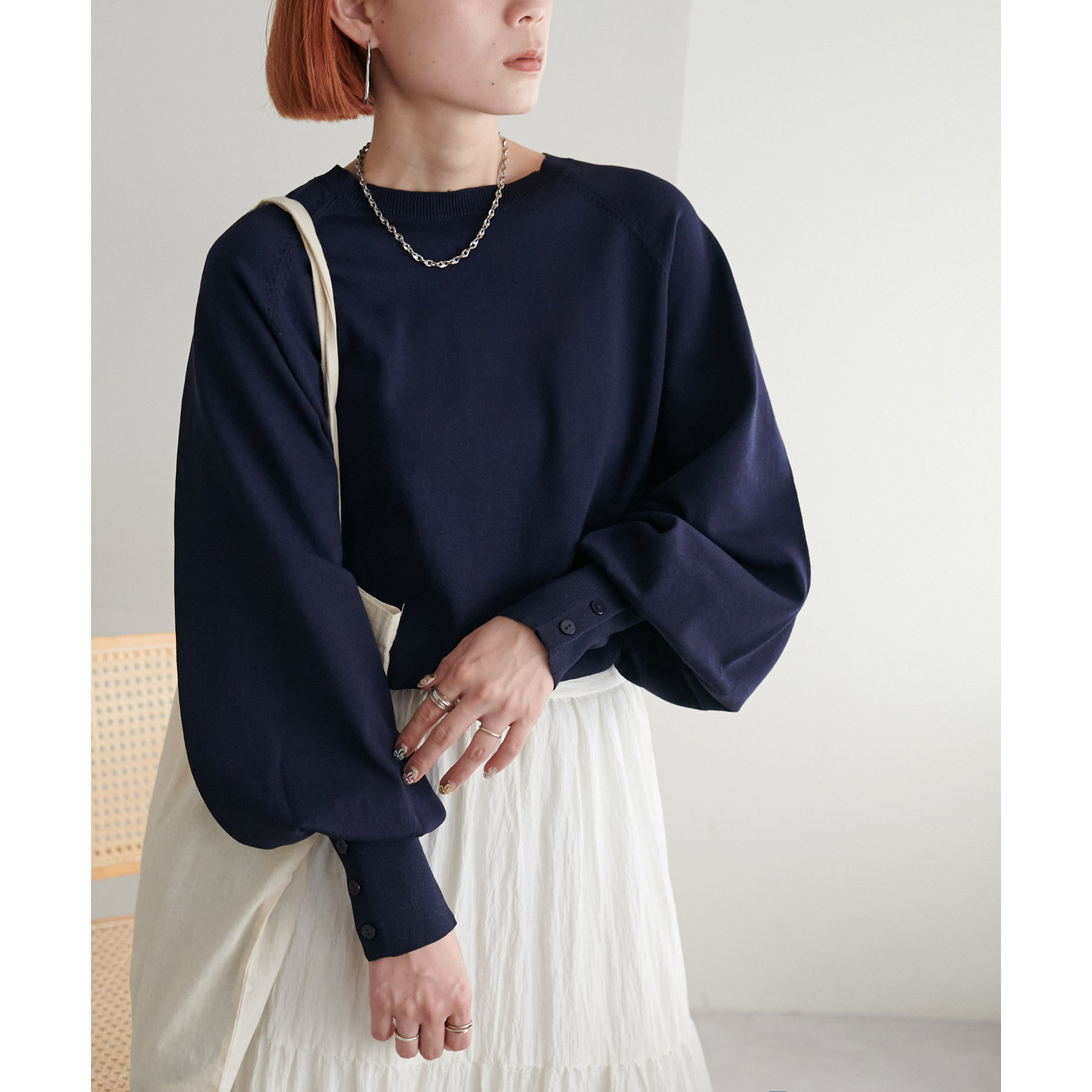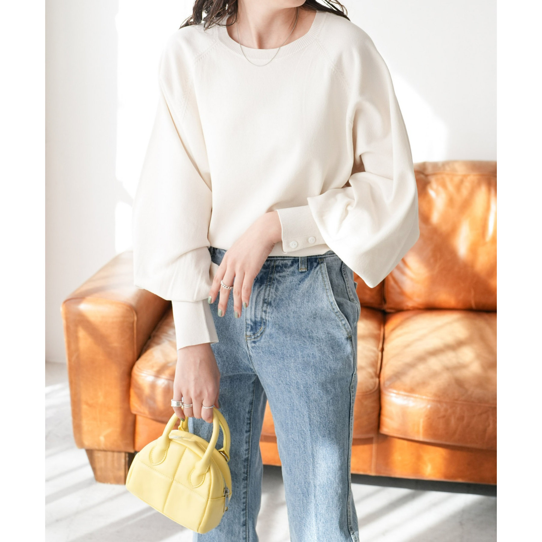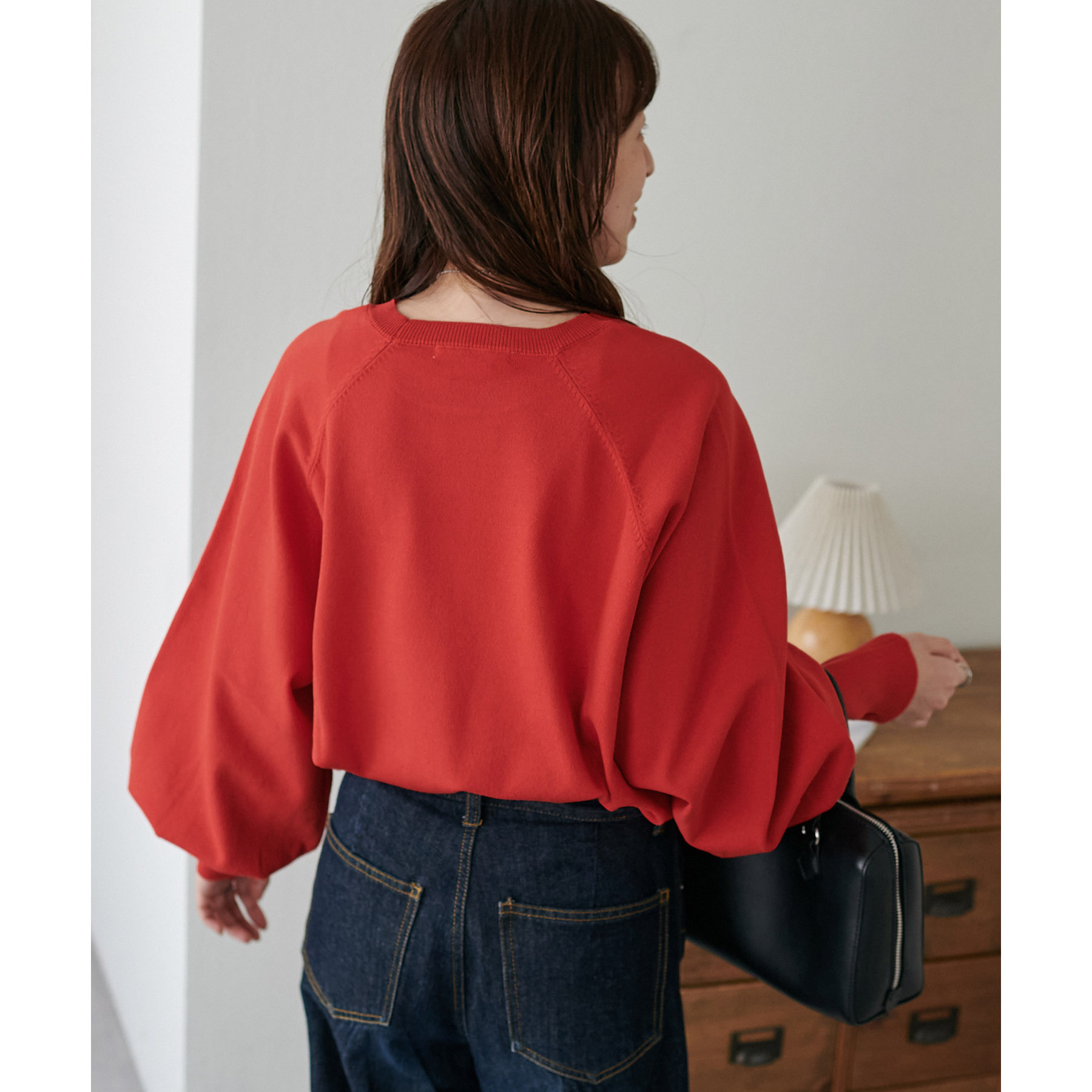 ラグラン切り替えに、丸みのあるボリュームスリーブがフェミニンな雰囲気を演出。