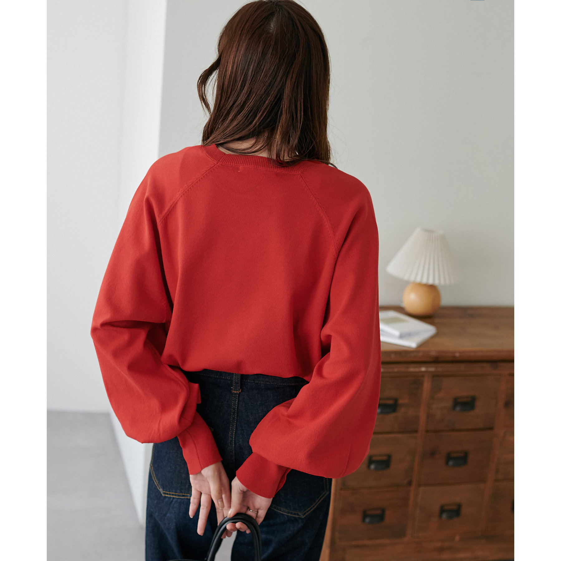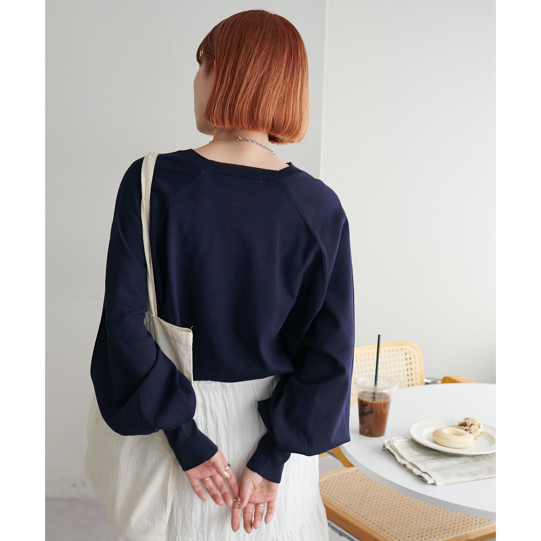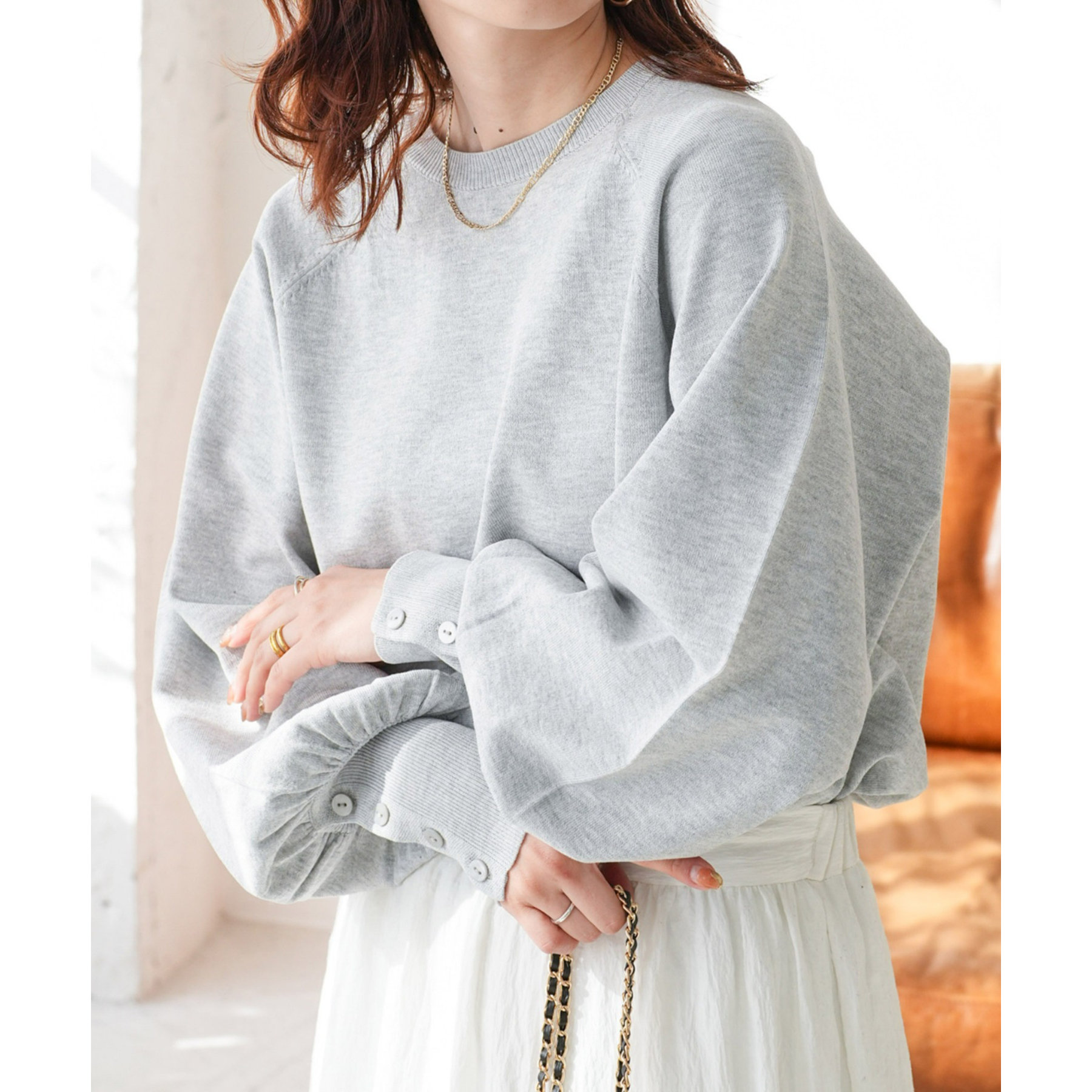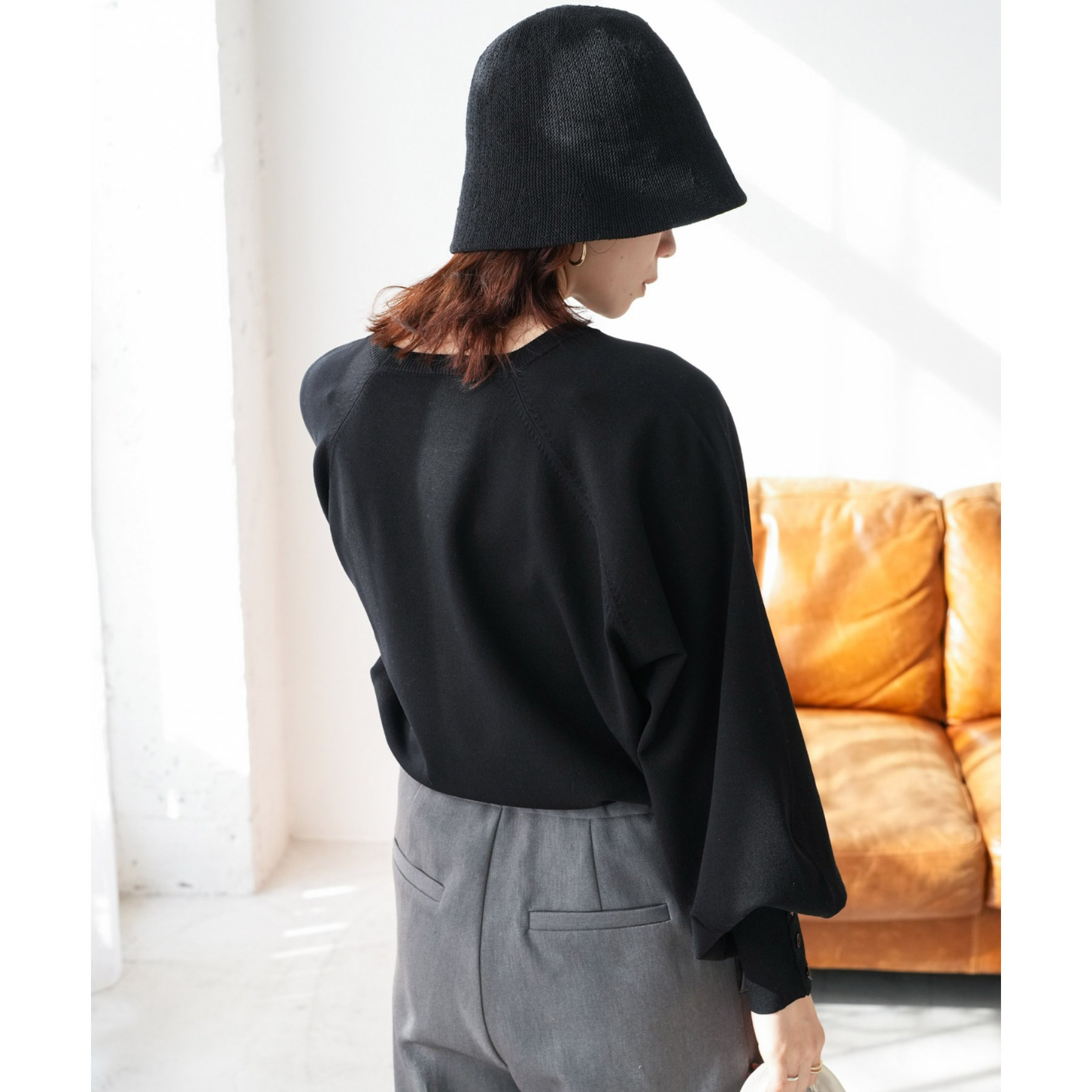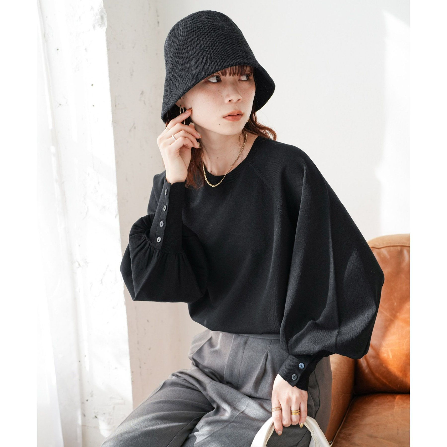 ラグラン切り替えに、丸みのあるボリュームスリーブがフェミニンな雰囲気を演出。