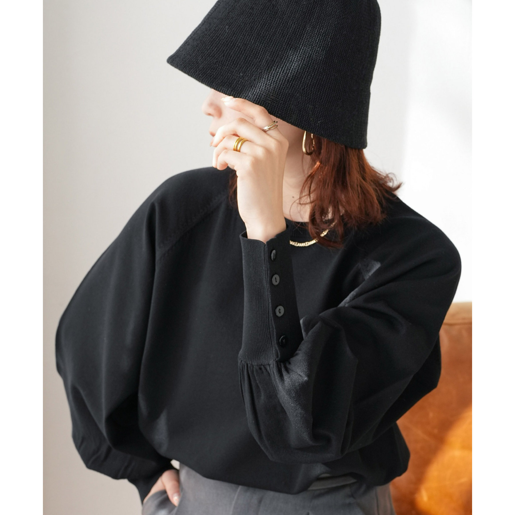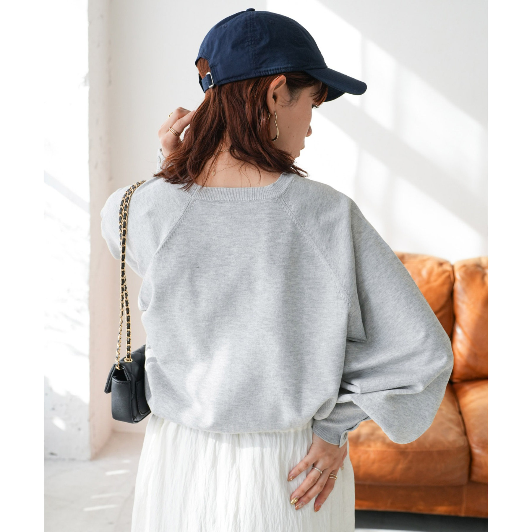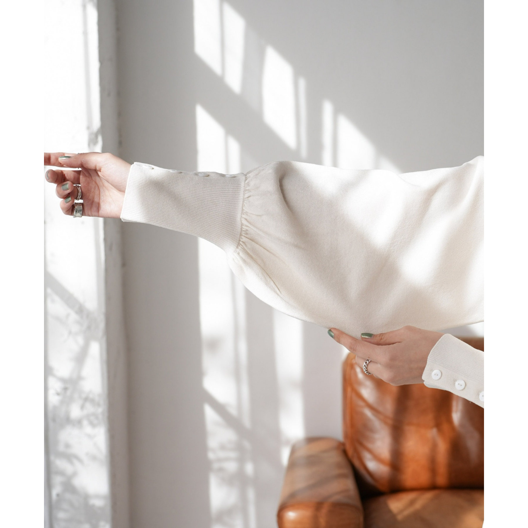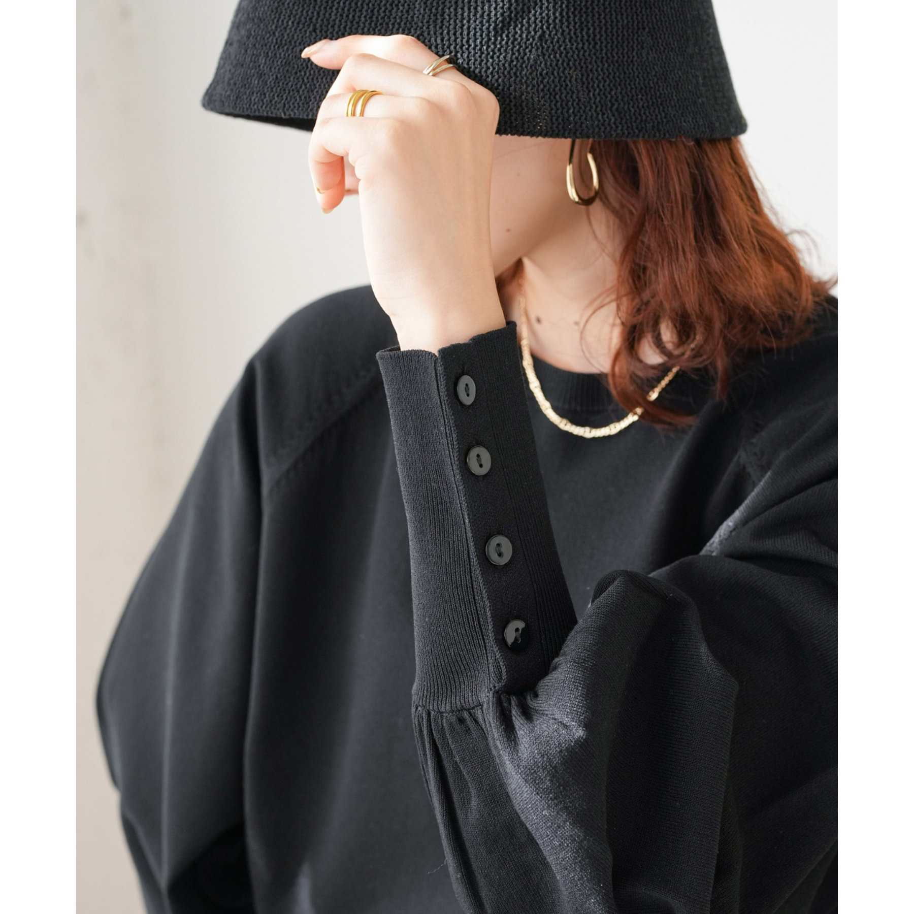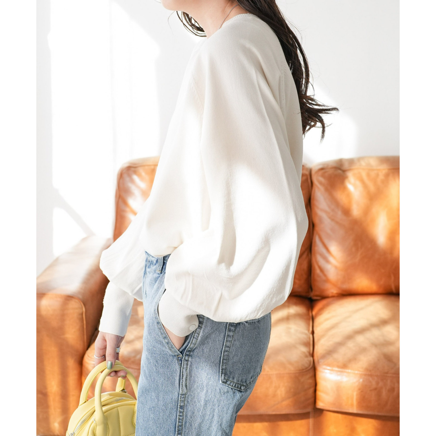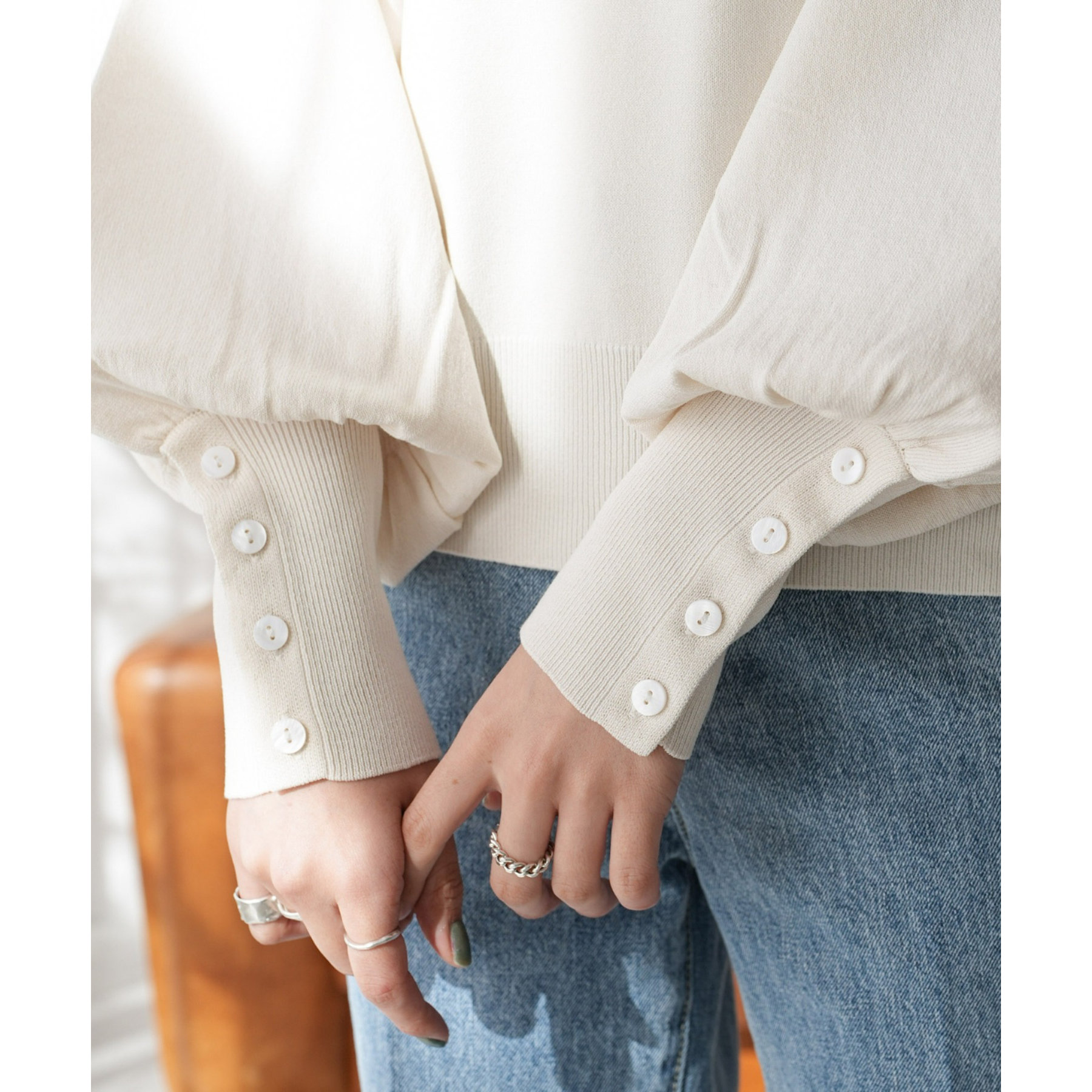 ラグラン切り替えに、丸みのあるボリュームスリーブがフェミニンな雰囲気を演出。