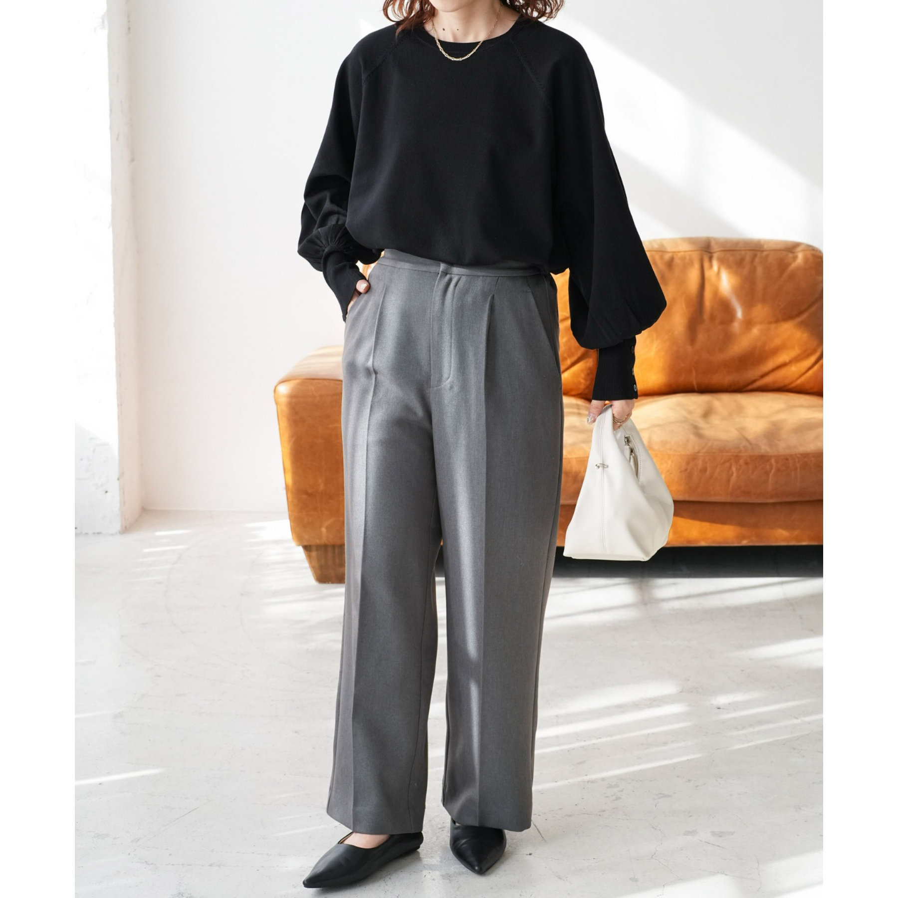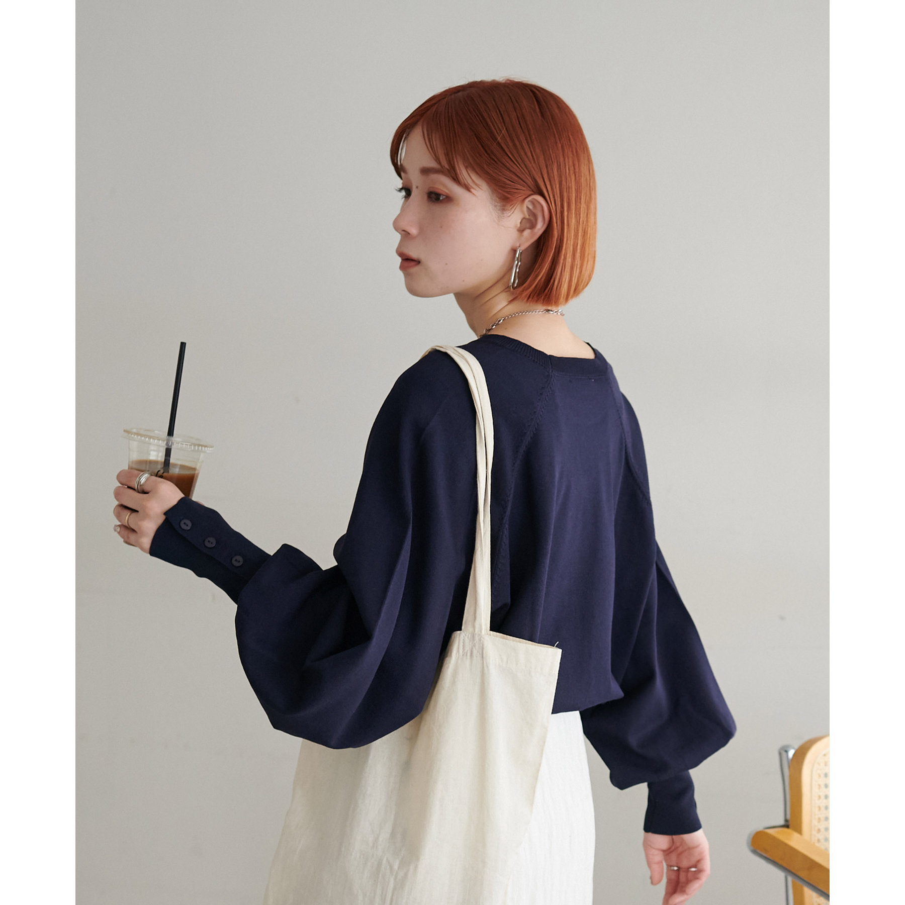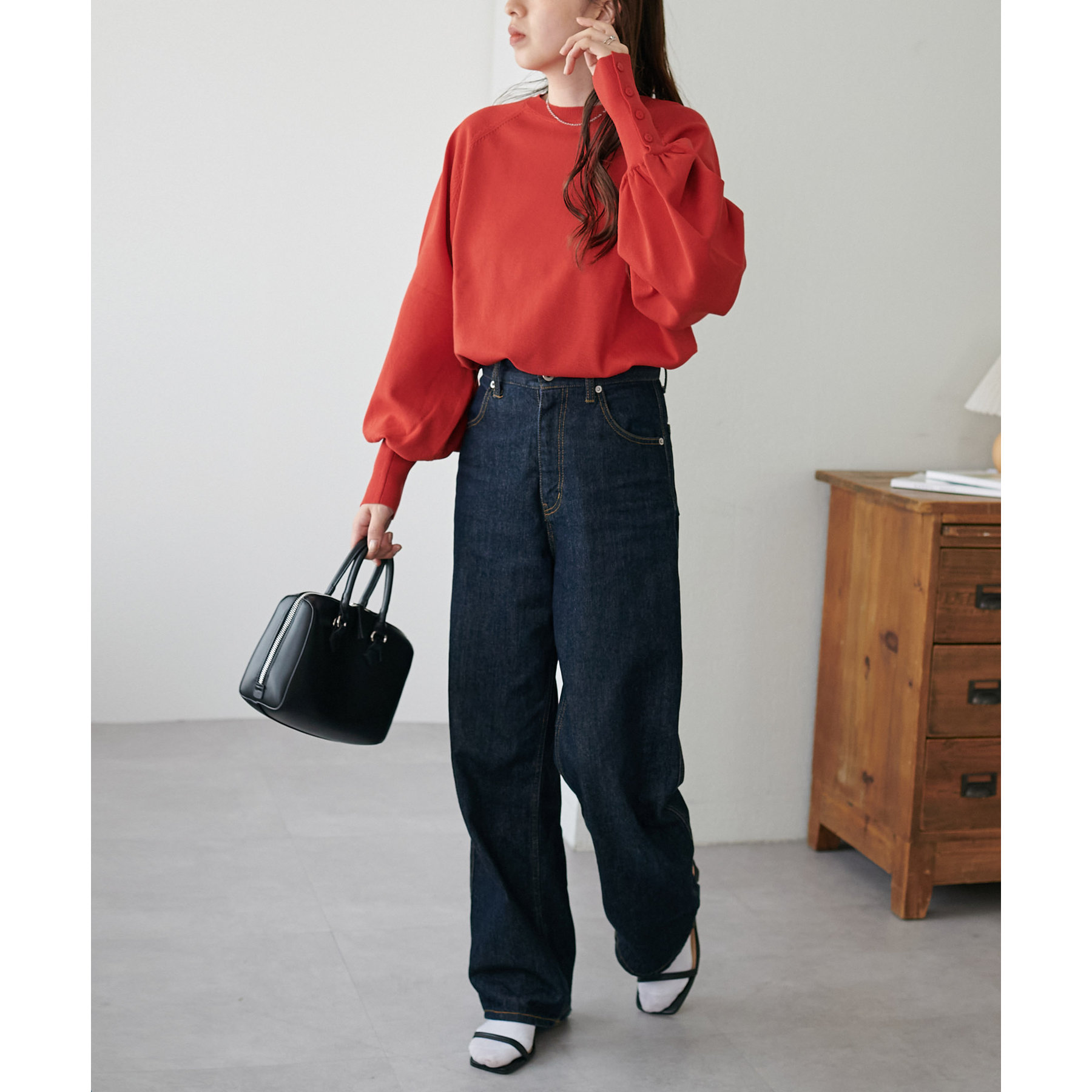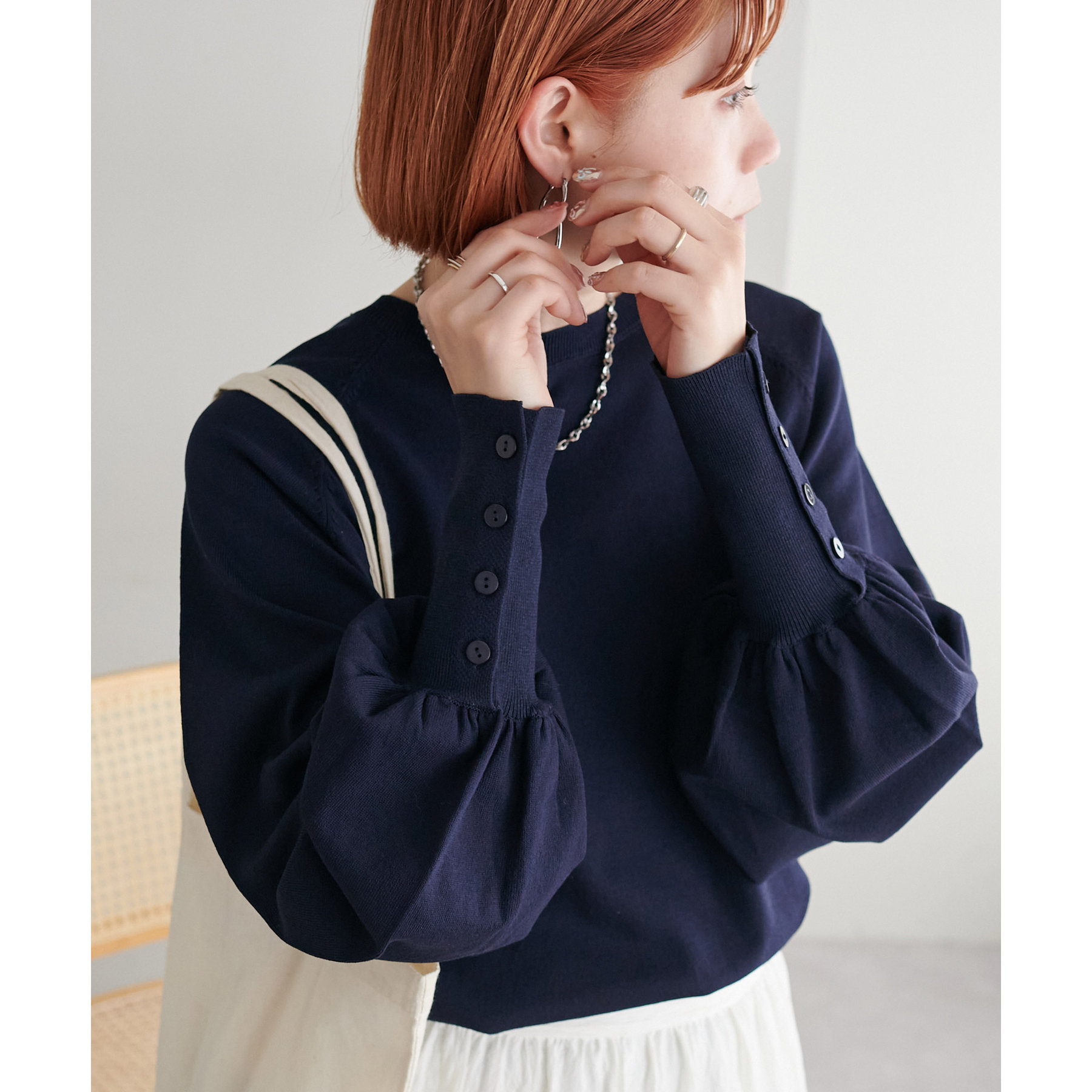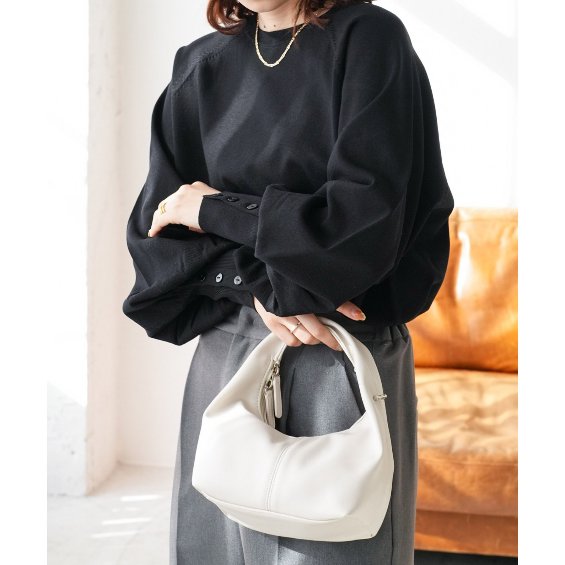 ラグラン切り替えに、丸みのあるボリュームスリーブがフェミニンな雰囲気を演出。