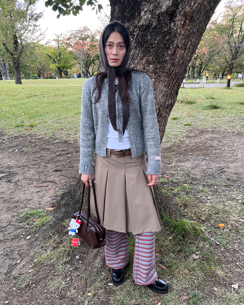 [FORELSKET X kijun] Cable Knit Balaclava Dark Brown