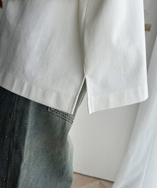 ドロップショルダーや、裾のスリットなど、一枚で着ても普通すぎない細部にまでこだわったデザインで、