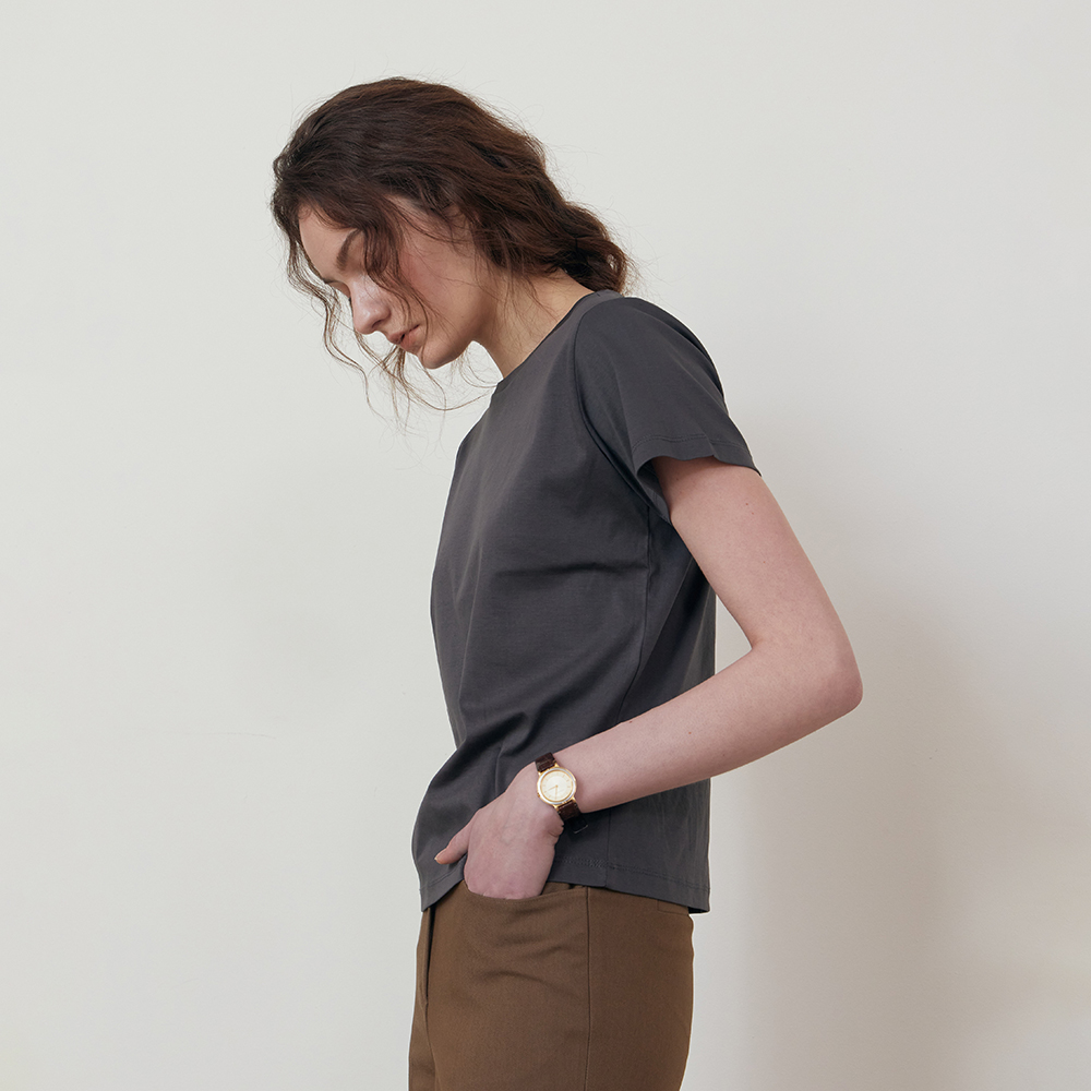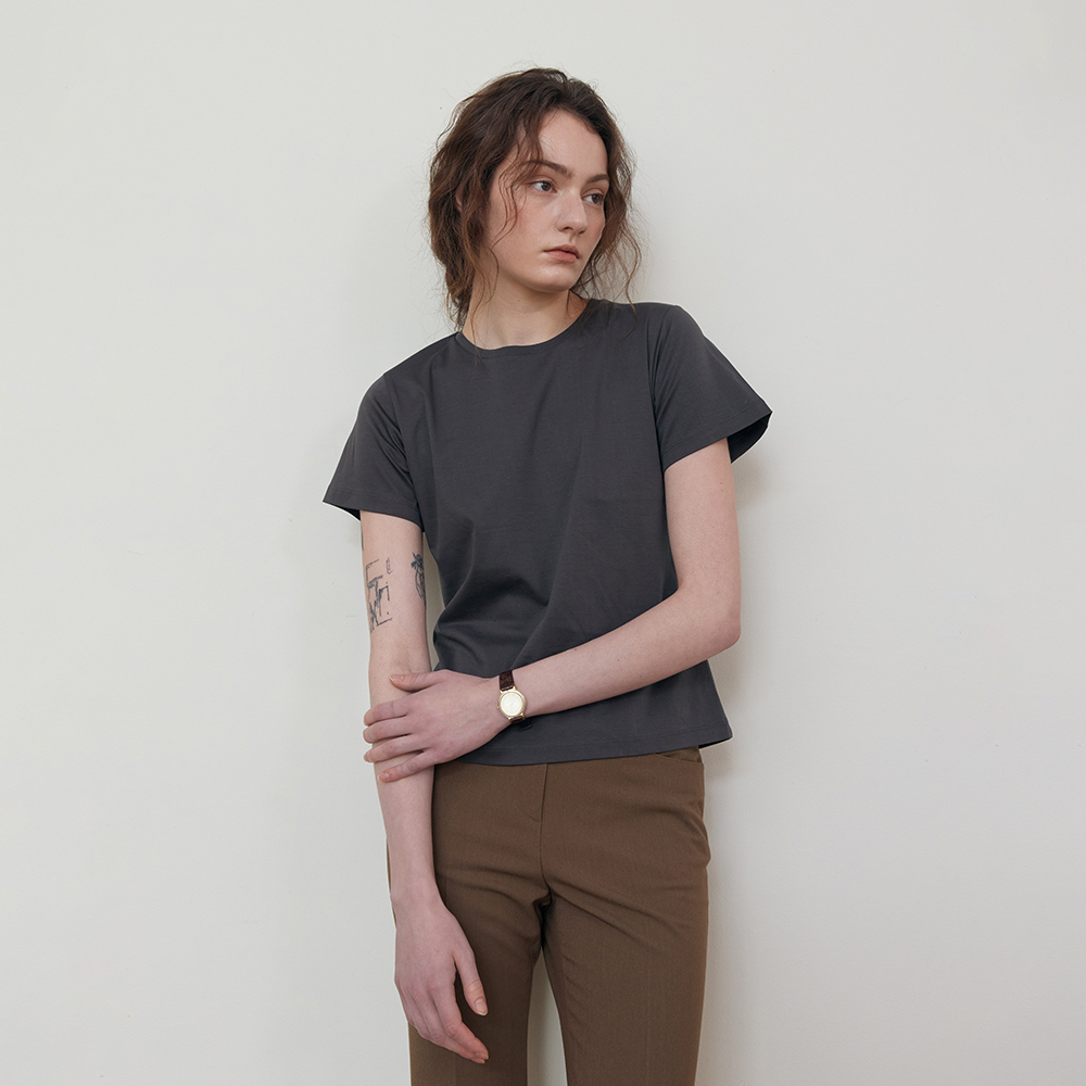 Silket cotton half t-shirt_CHARCOAL
