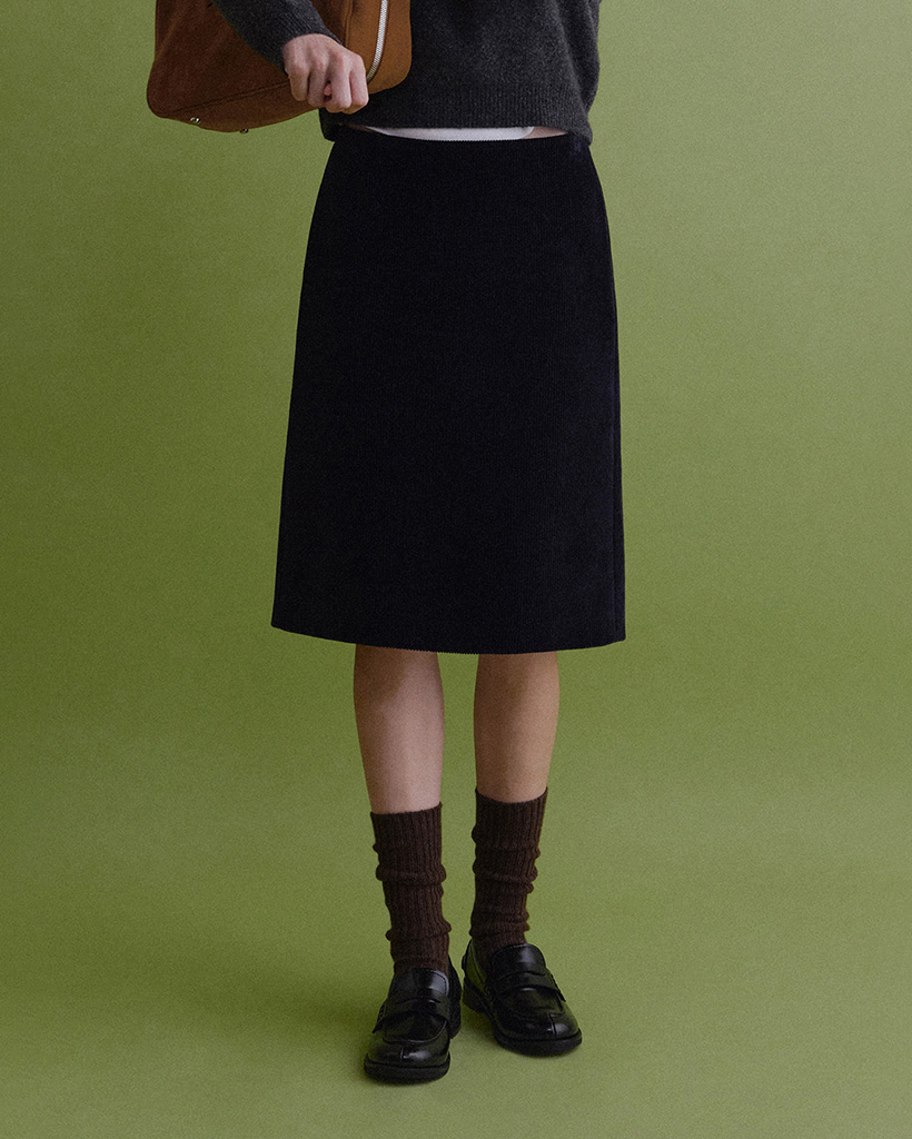 ふんわりとした高級感のある質感が魅力の Nia Corduroy Midi Skirt(ニア コーデュロイ ミディスカート) です。