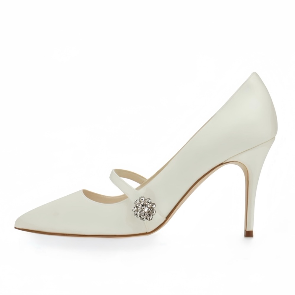 Neige サテン ジュエル ストラップ パンプスヒール ホワイト