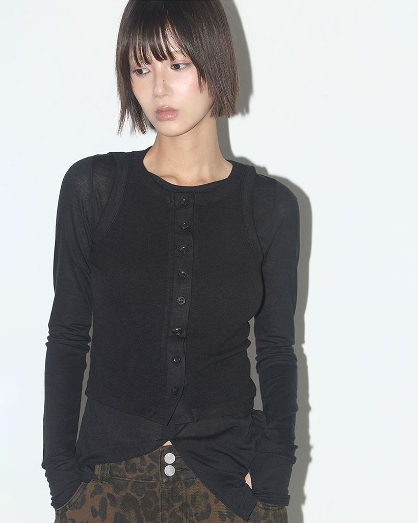 3-Way Button Layered Long Sleeve (Black) F25QB079