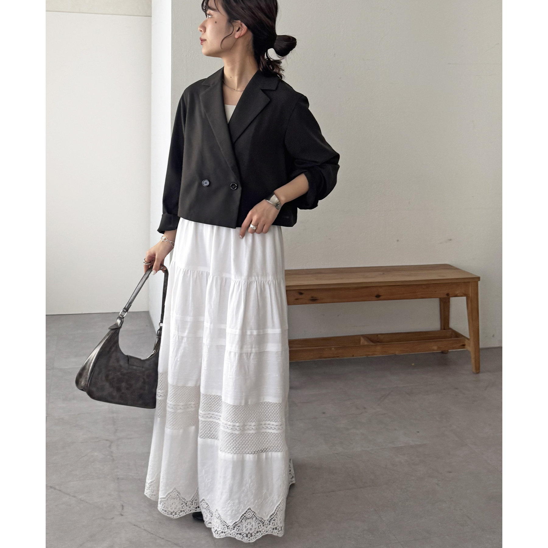 ショート丈のジャケットはボリューム感のあるフェミニンなスカートやワイドなシルエットのパンツ合わせがおすすめ!