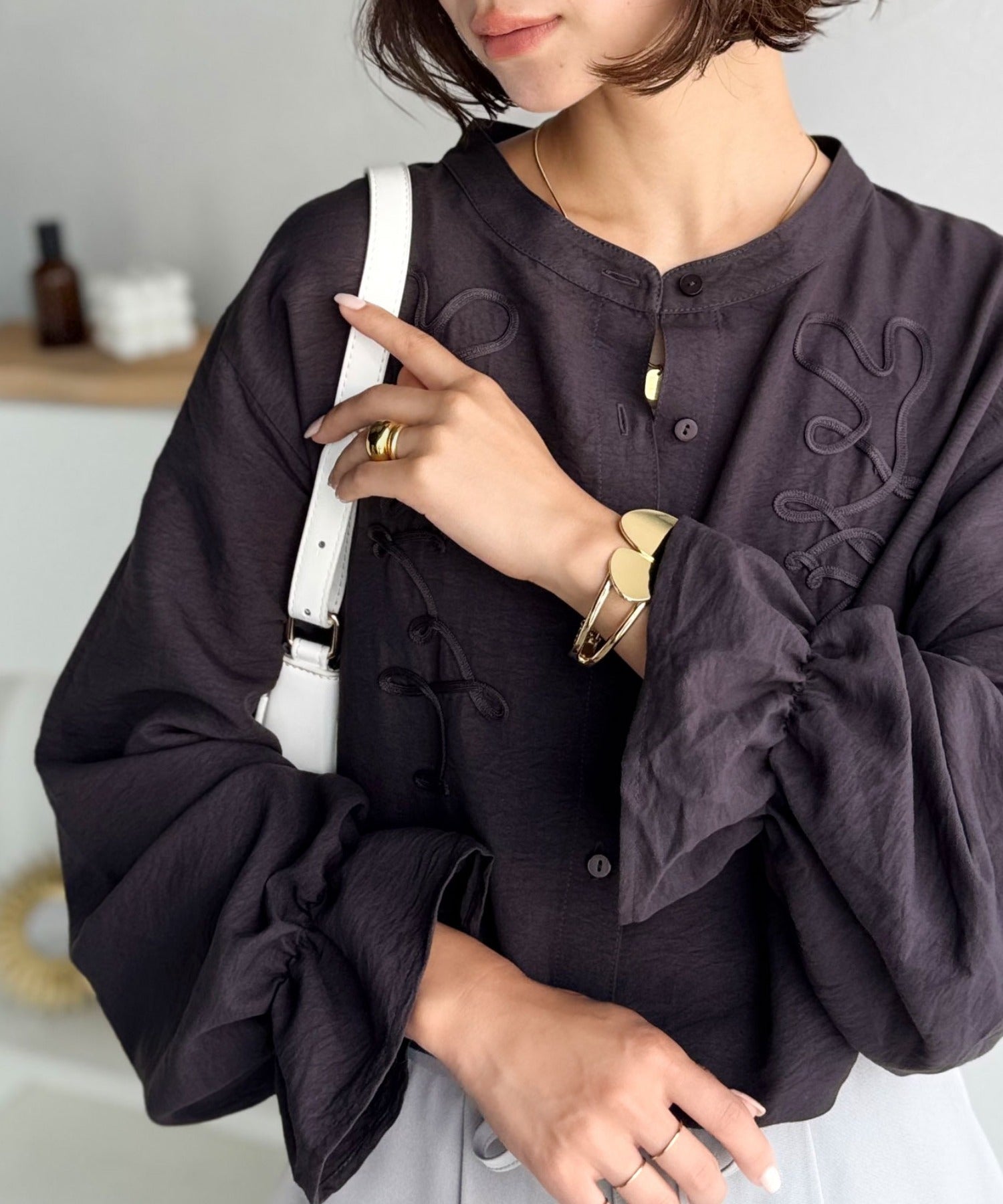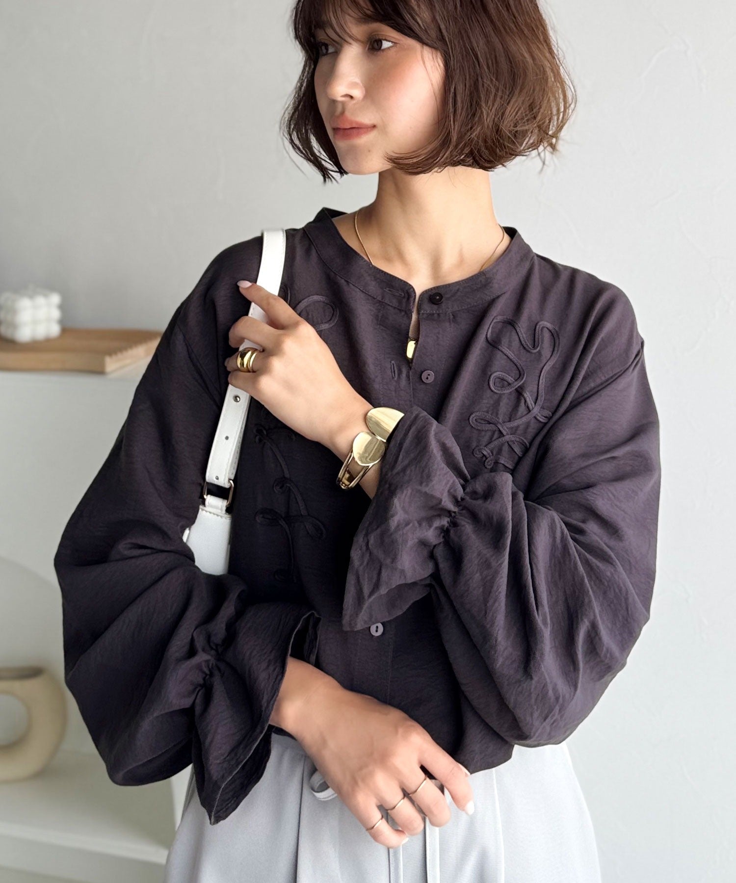 袖口にはゴム入りのキャンディースリーブを採用し、ふんわり感のあるフォルムに。