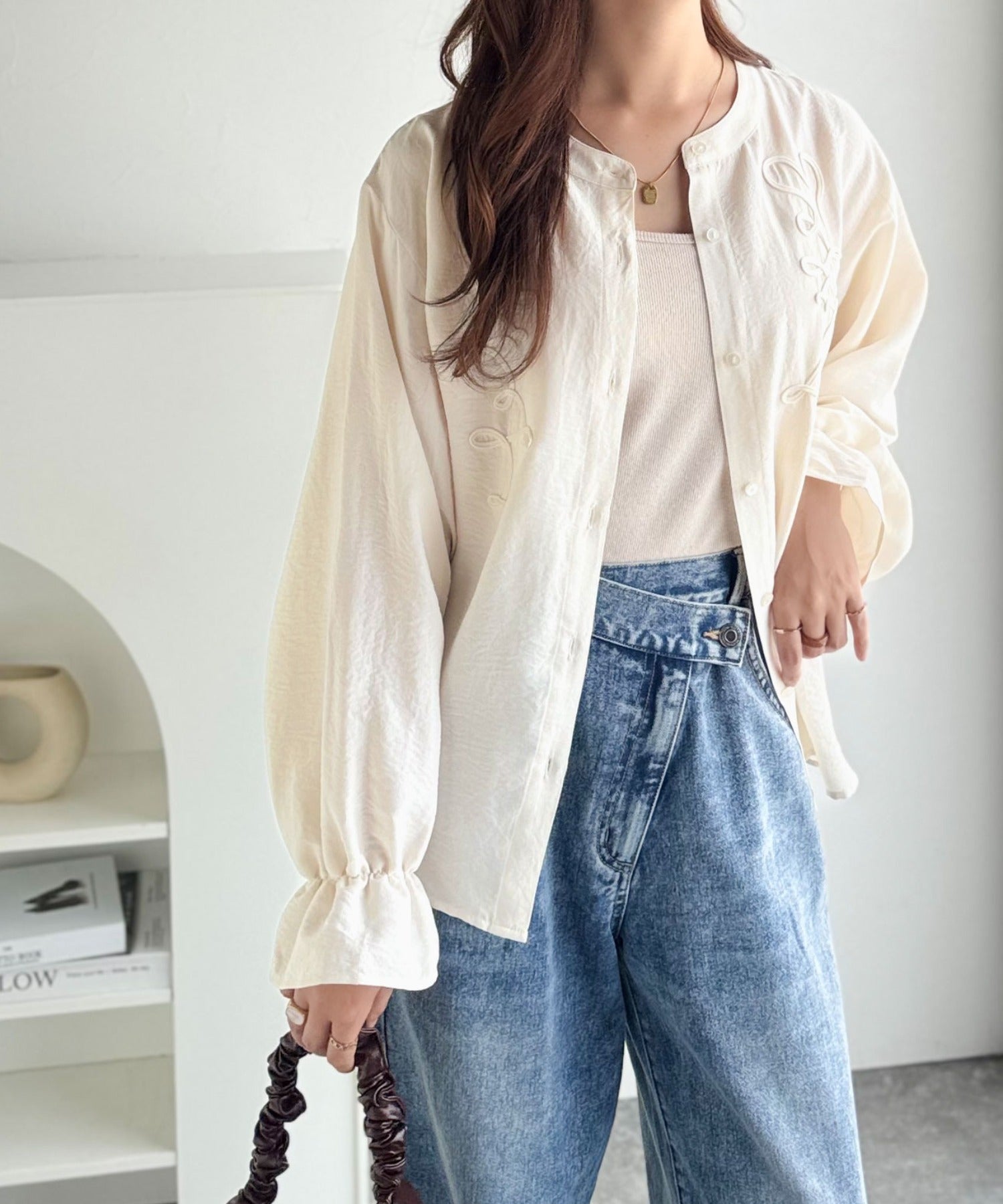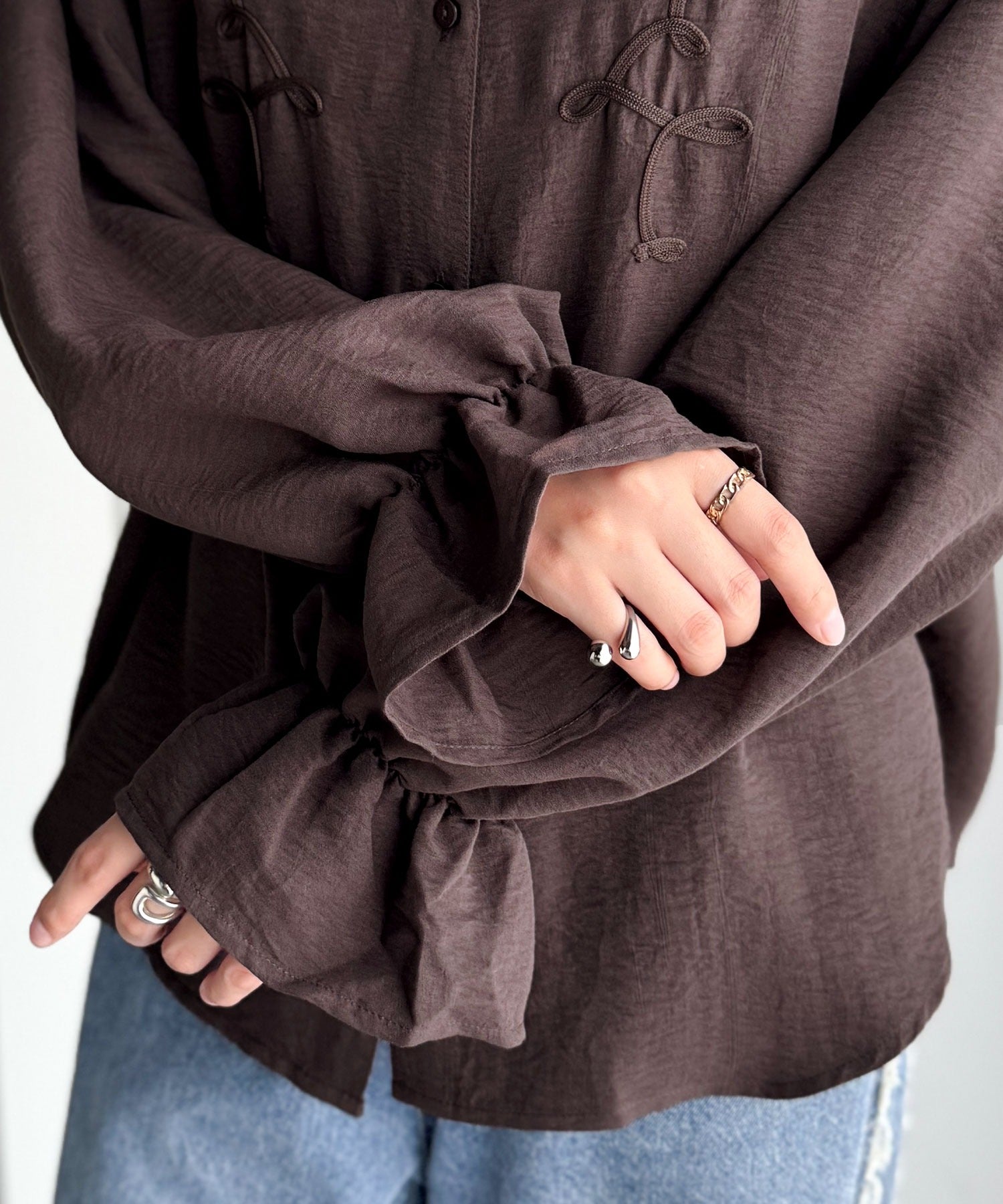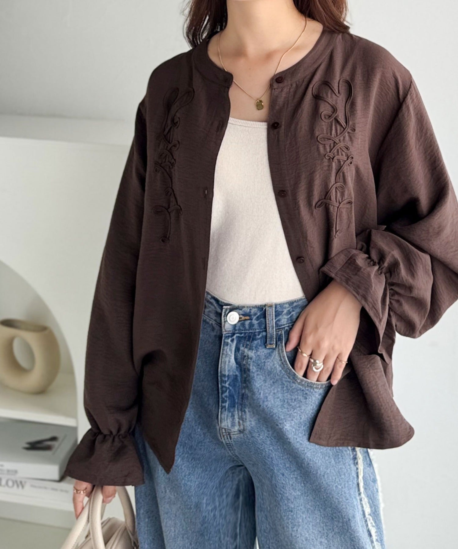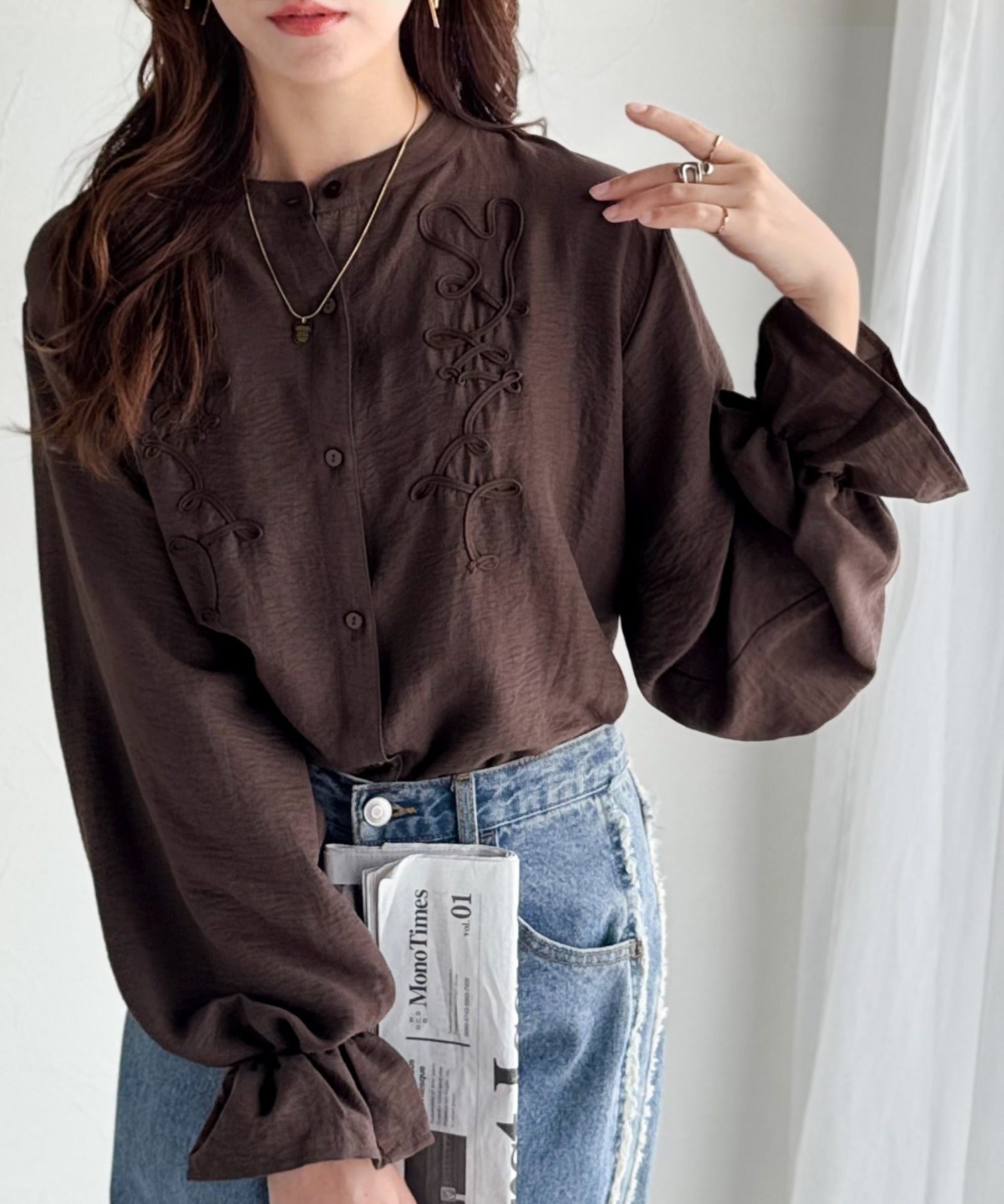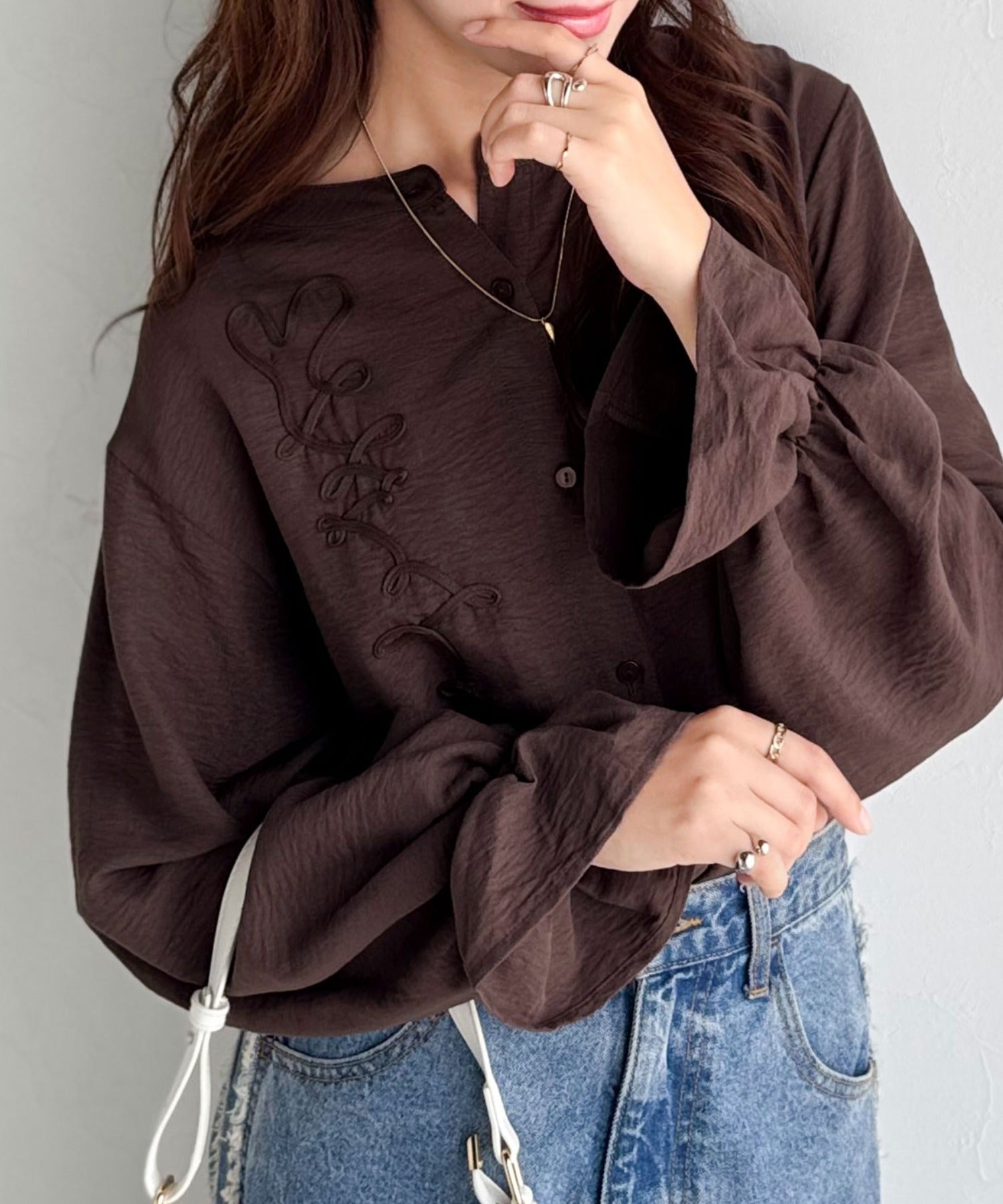 袖コンシャスが上品に映える♪コード刺繍キャンディスリーブシャツ(長袖) ce1010497