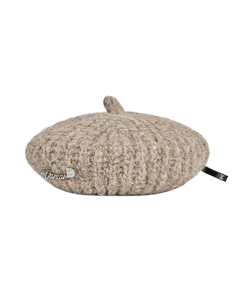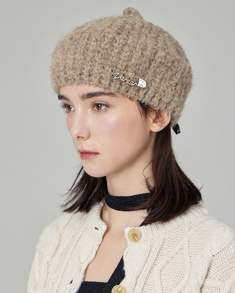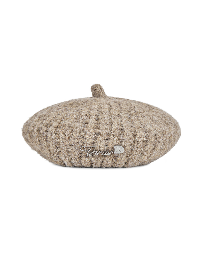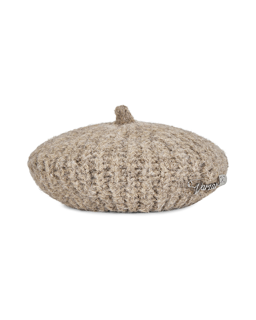 VARZAR Safety Pin Knit Beret Dark Beige
