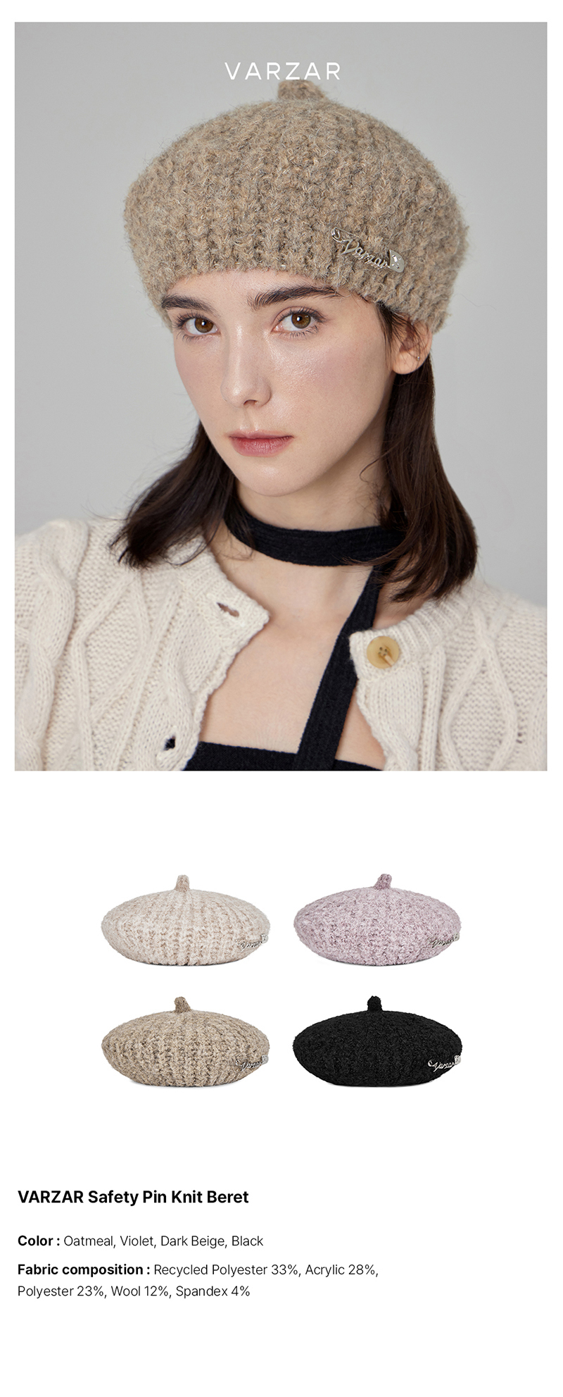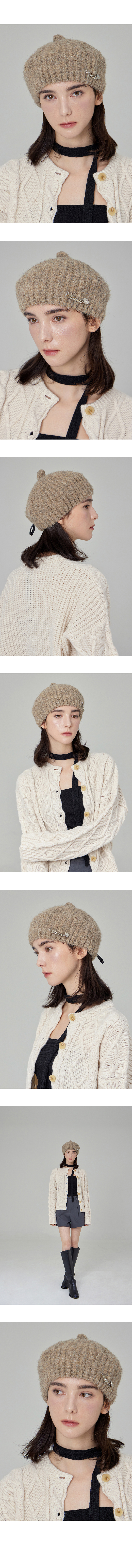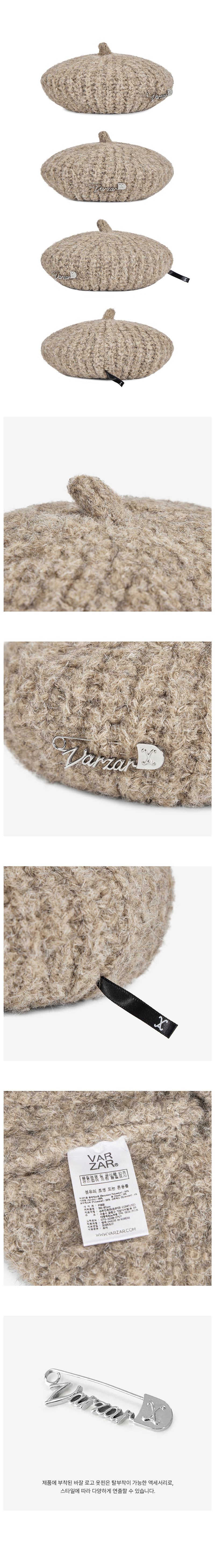 VARZAR Safety Pin Knit Beret Dark Beige