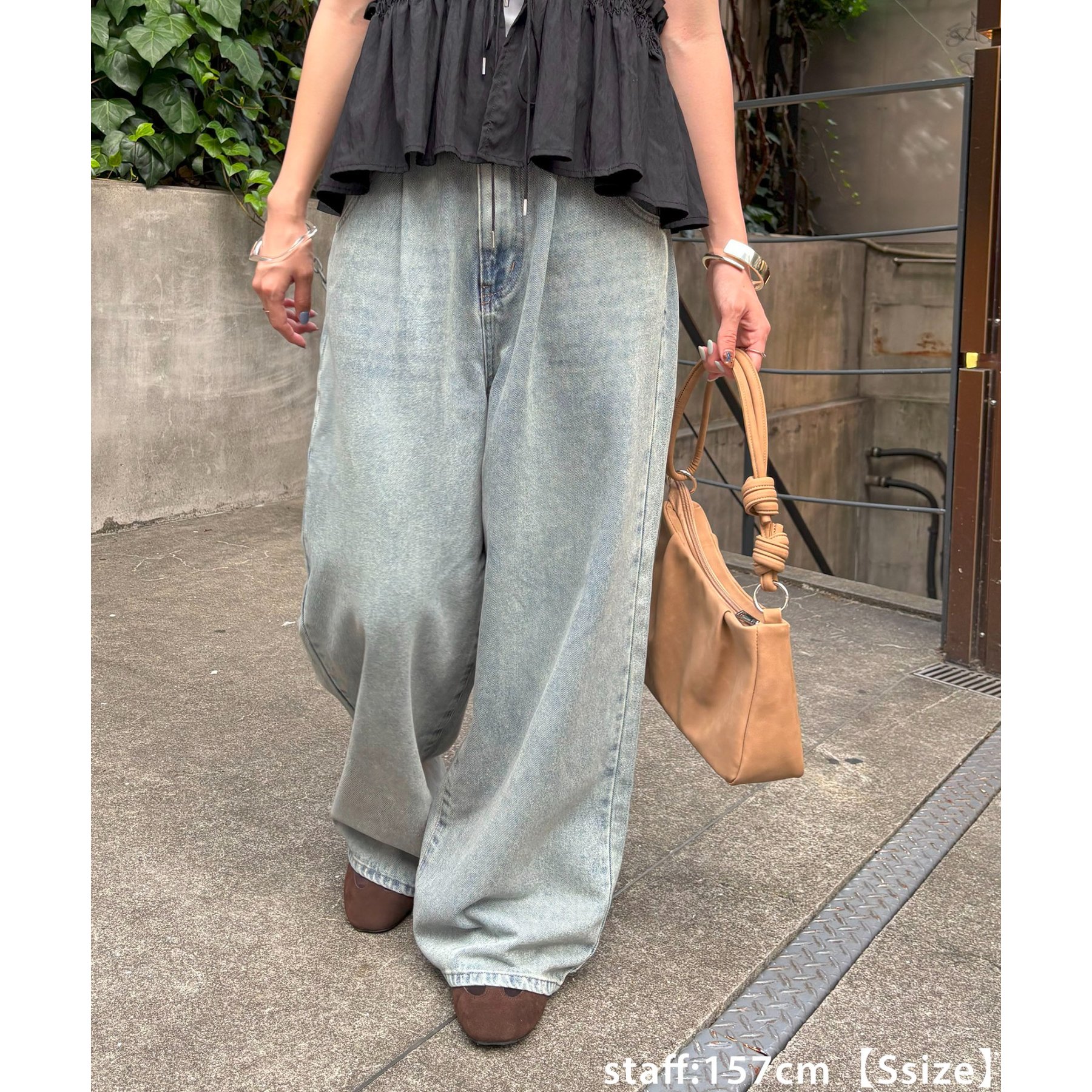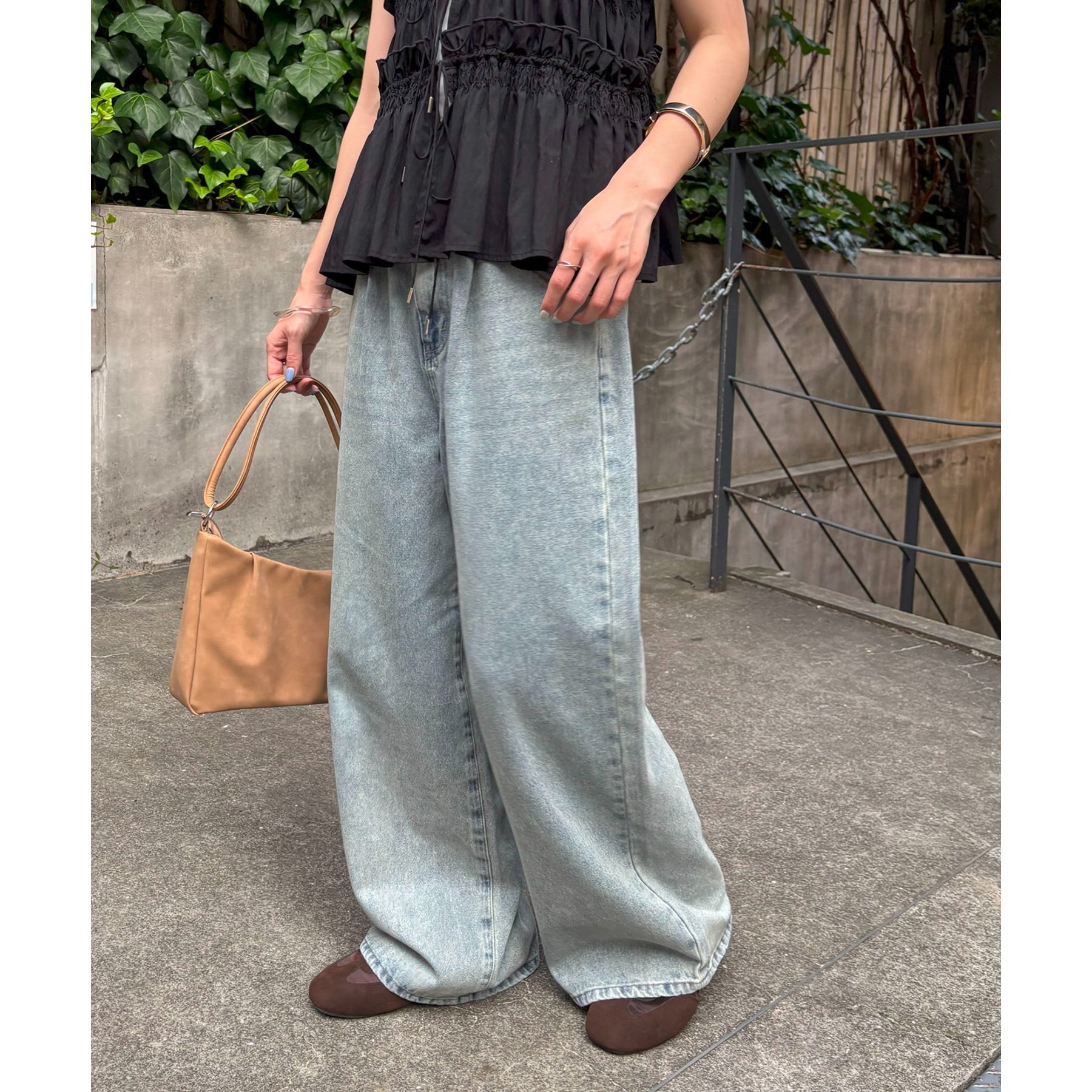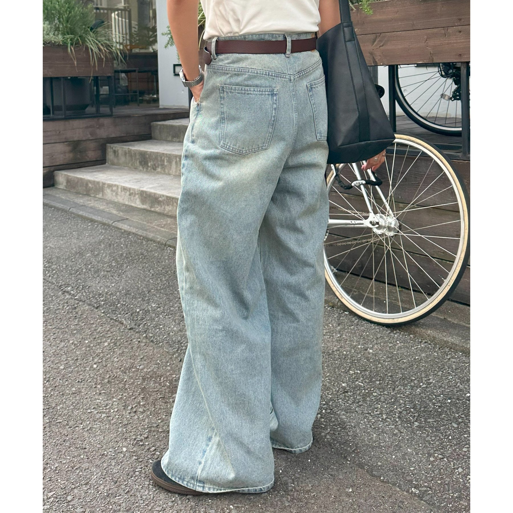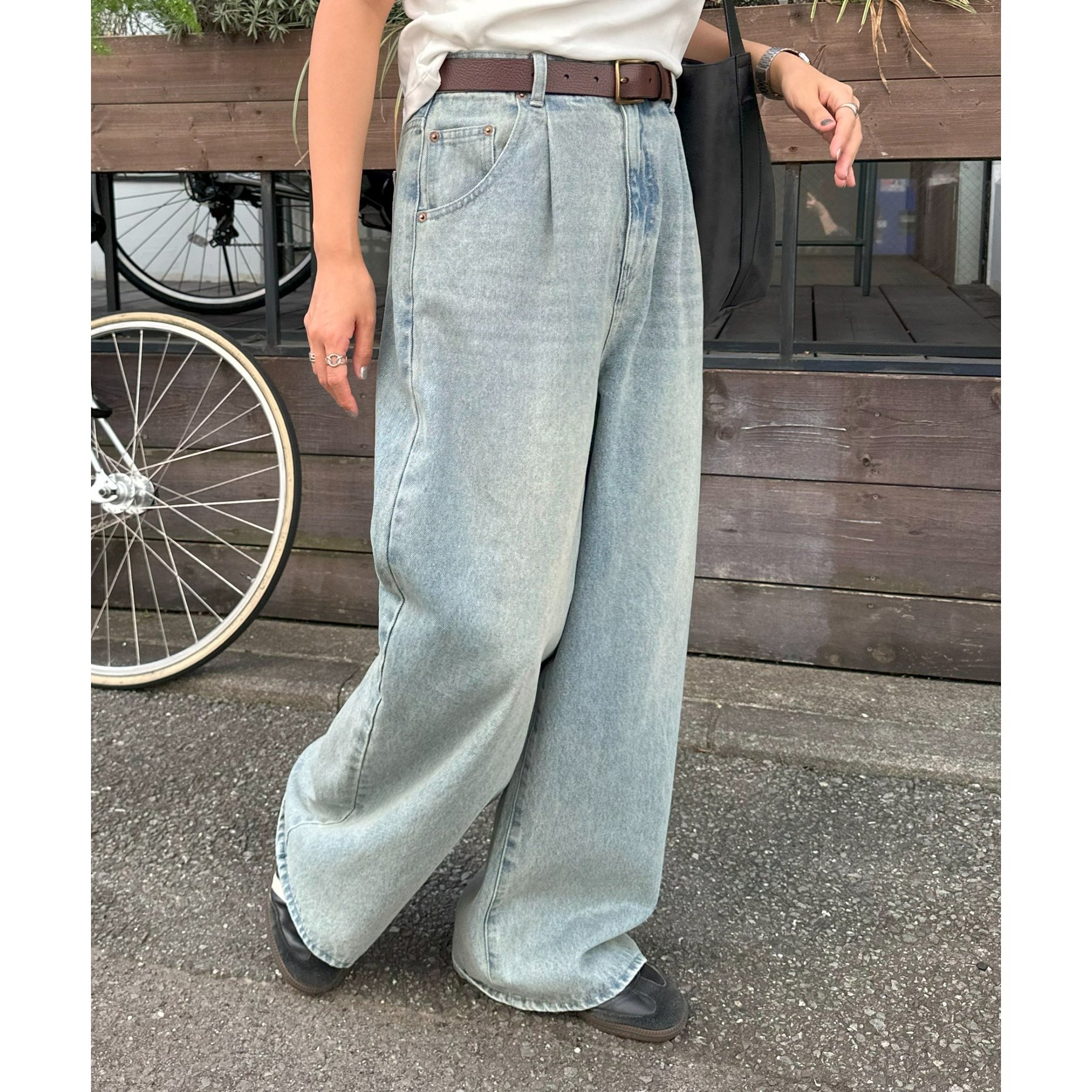 軽やかさとこなれ感を両立するデニムワイドパンツ