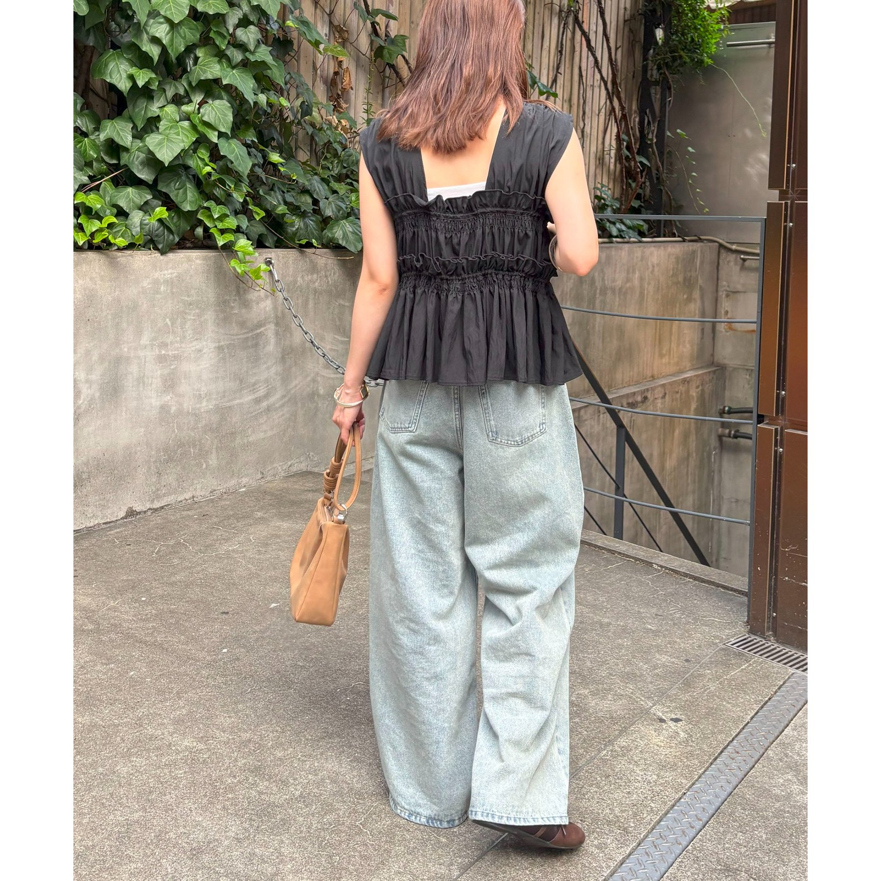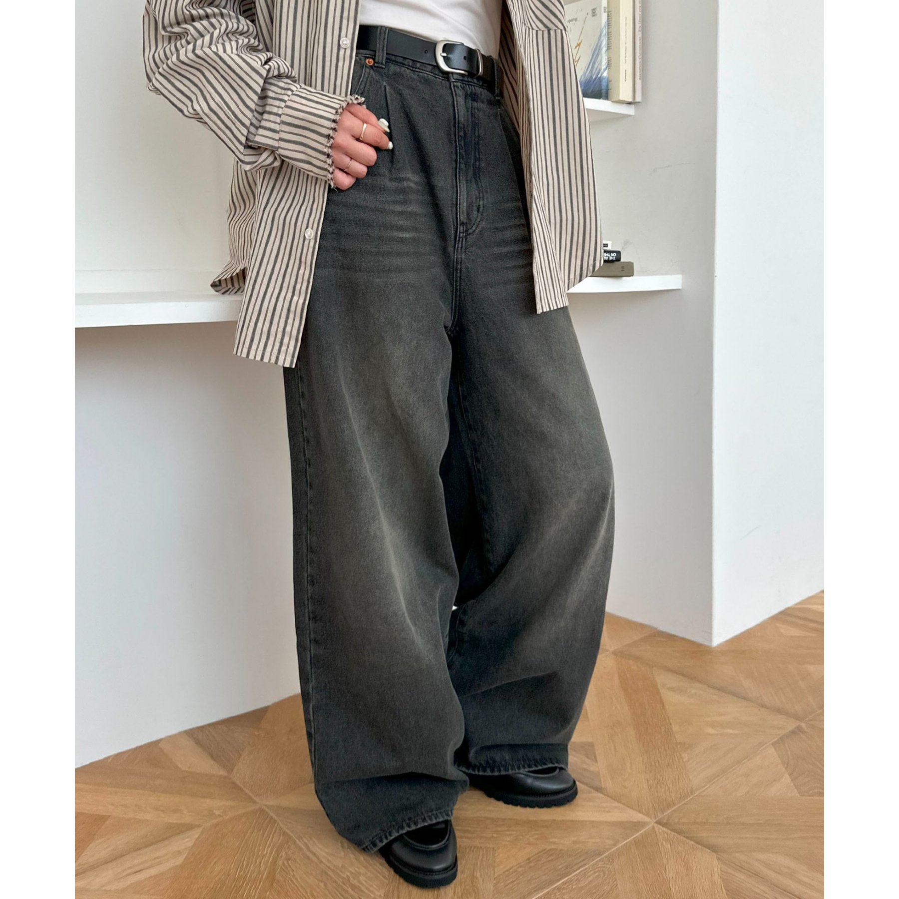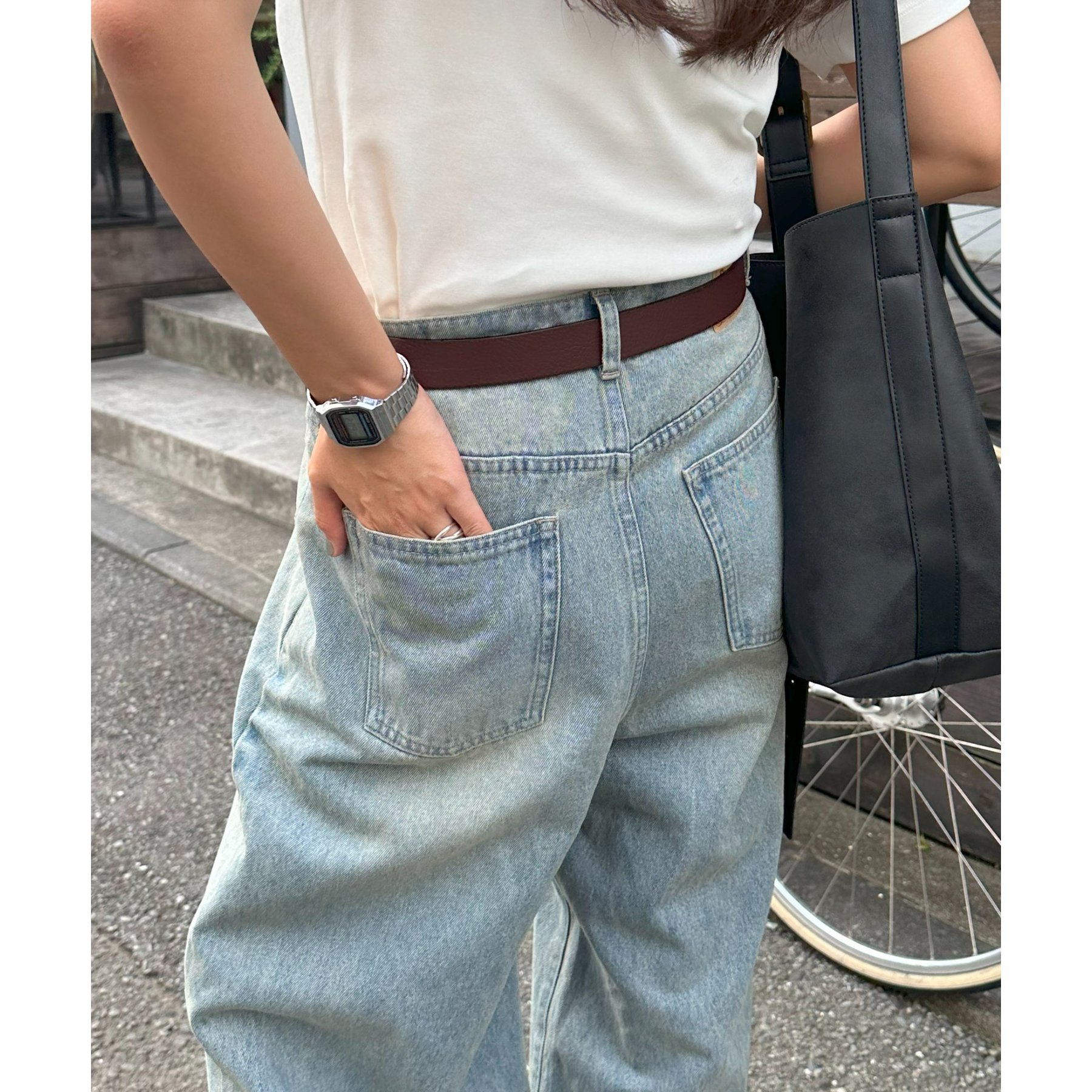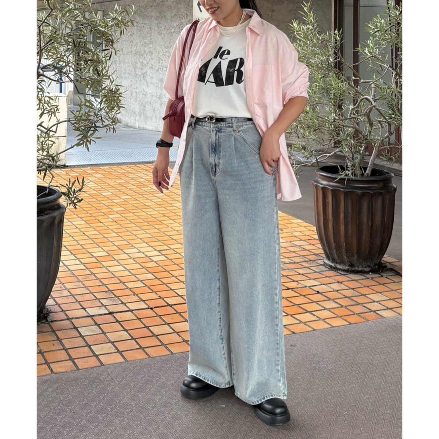 軽やかさとこなれ感を両立するデニムワイドパンツ