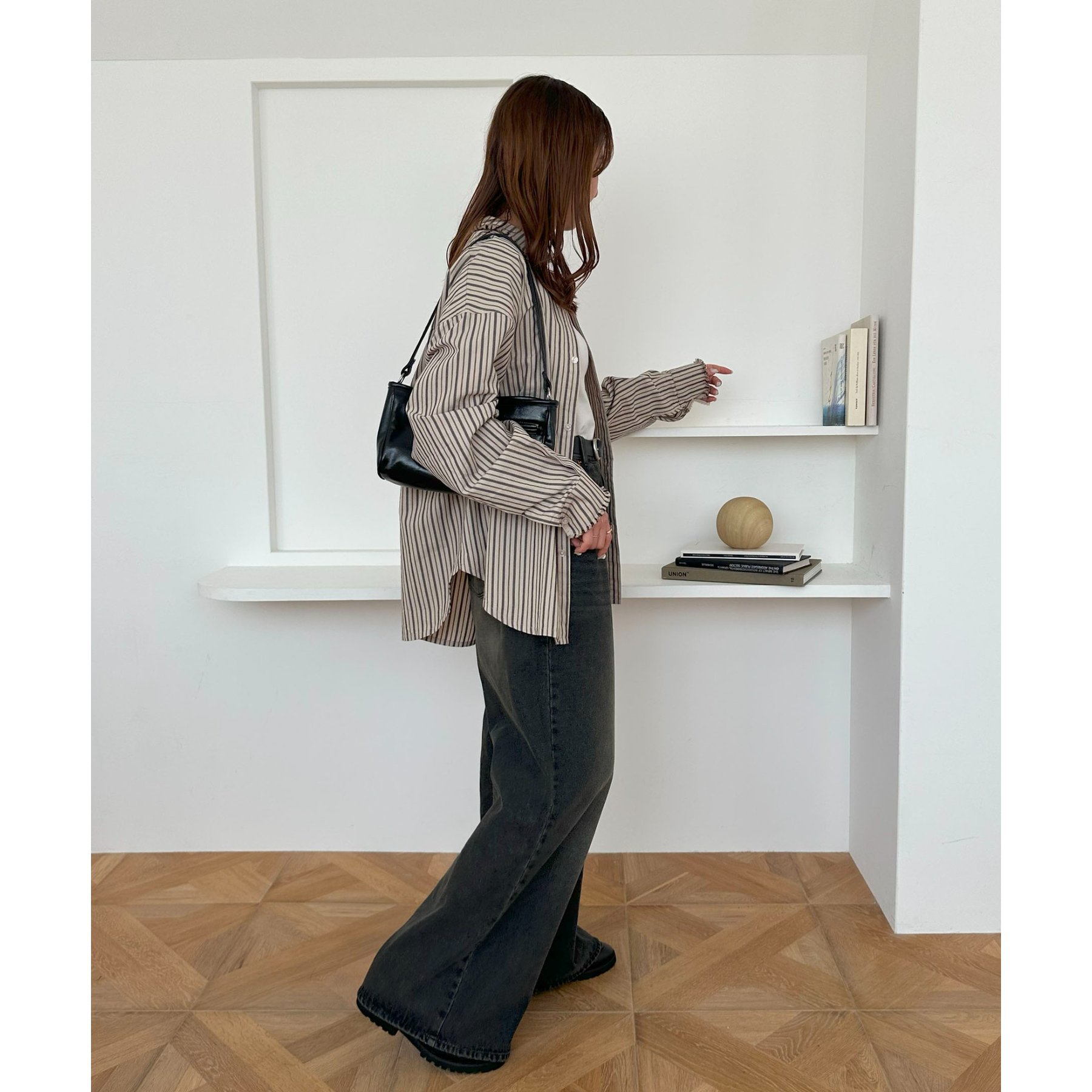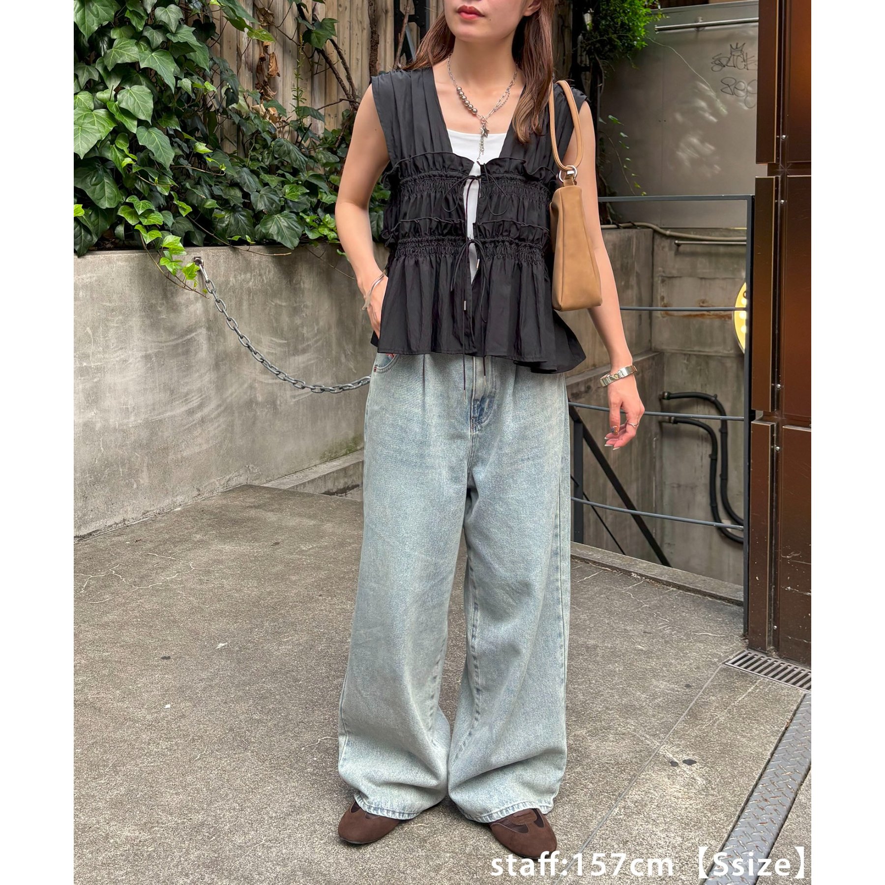 シーズンを問わず活躍できる素材感なので、春夏はTシャツやノースリーブと軽やかに、秋冬はニットやアウターと合わせて、長く着回せるアイテムです。