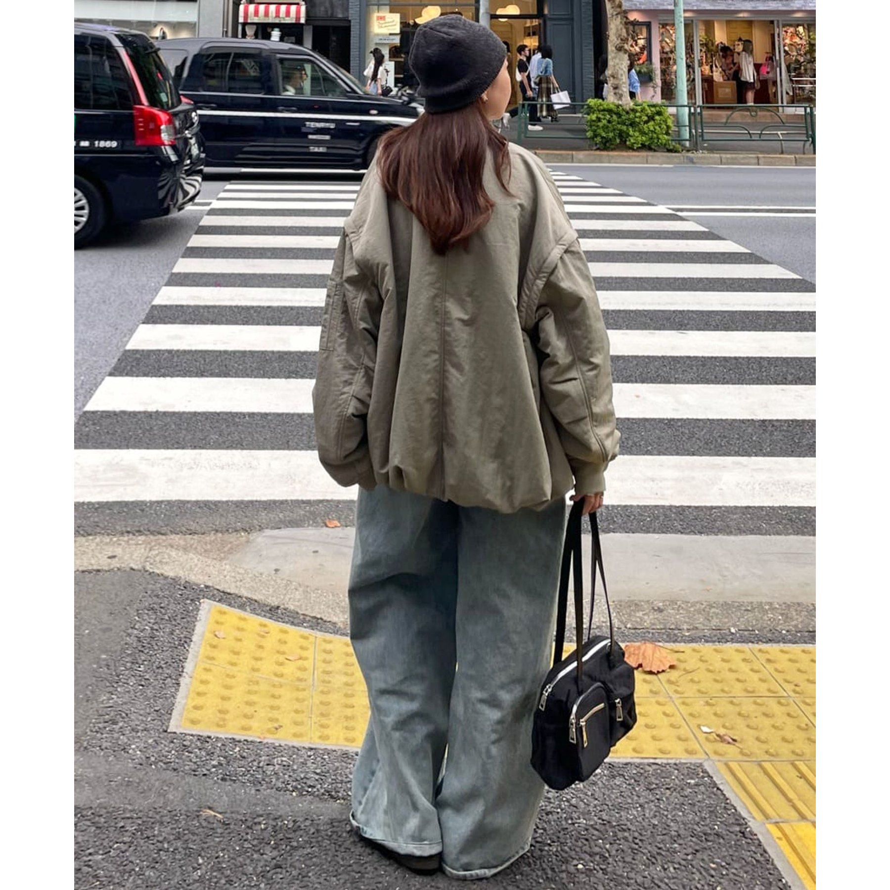 トップスをウエストインすれば、よりシルエットが引き立ちスタイルアップ効果も。
