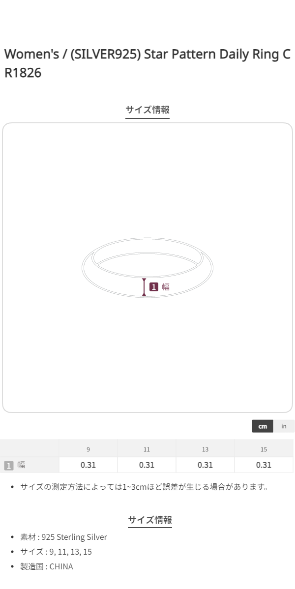 (シルバー925) スターパターン デイリー リング CR1826